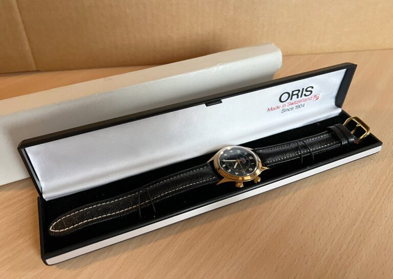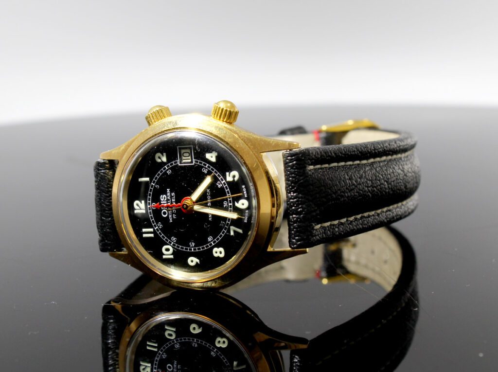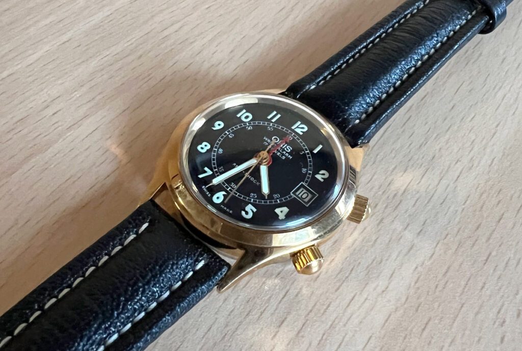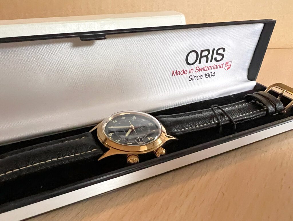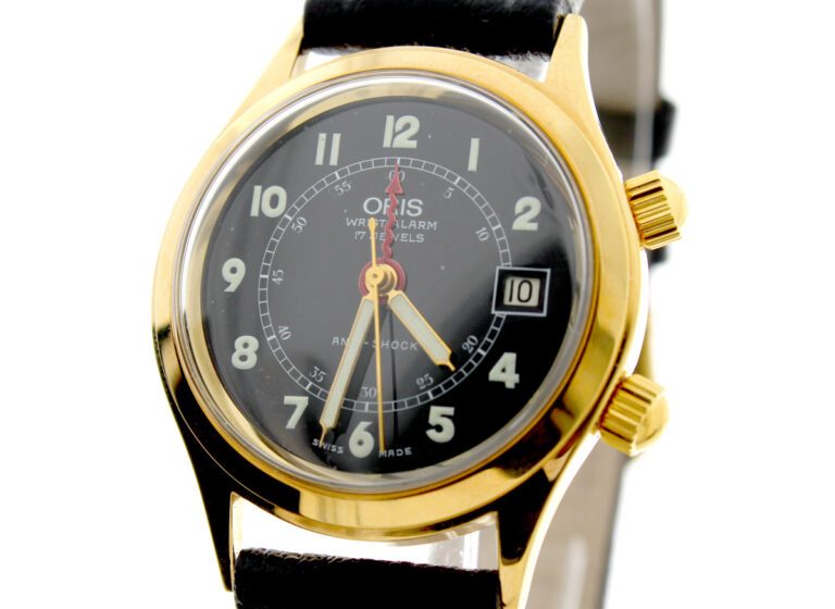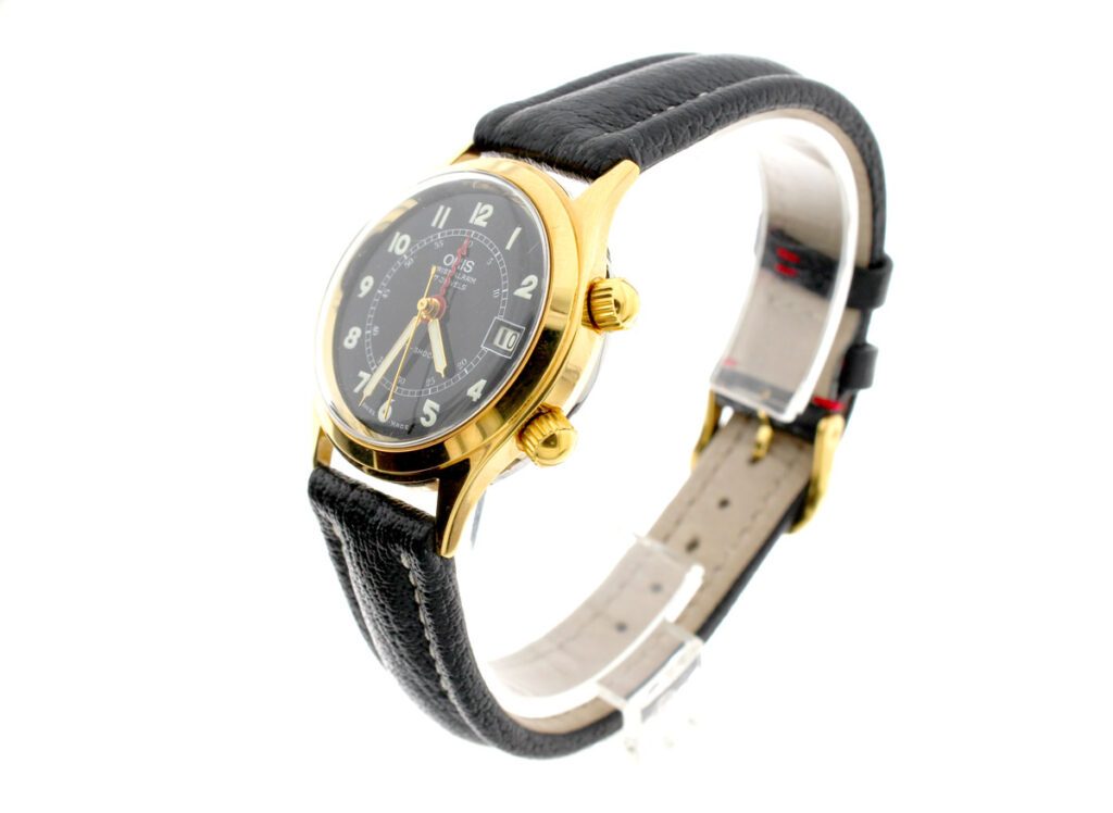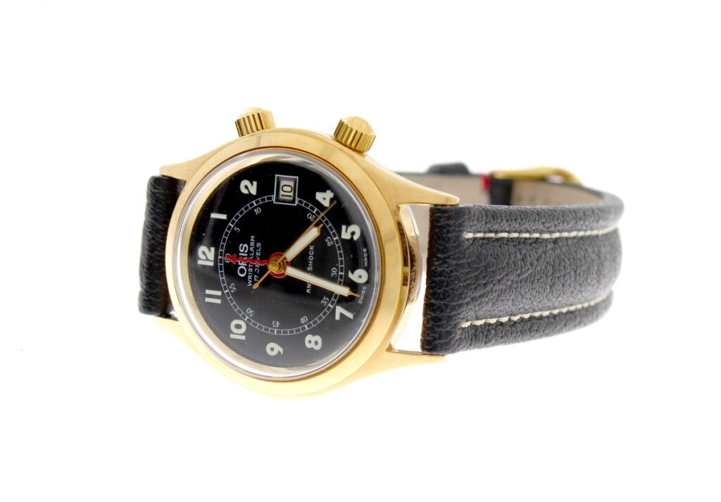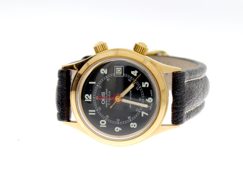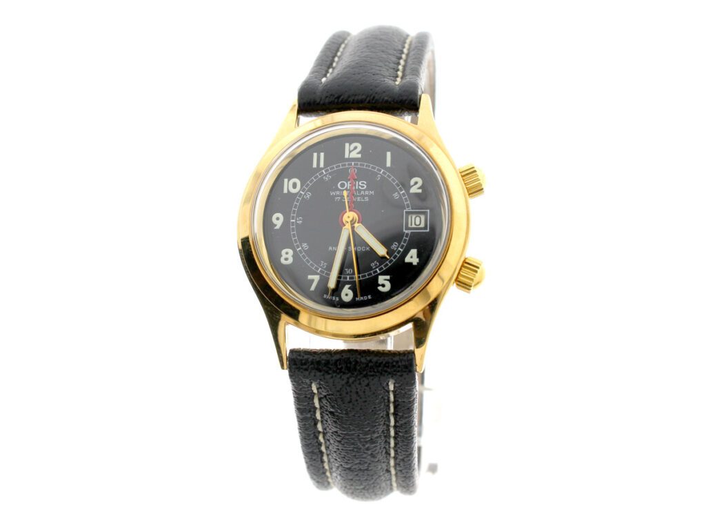 ORIS Wrist Alarm Herrenuhr in Edelstahl goldplattiert und Handaufzugswerk.