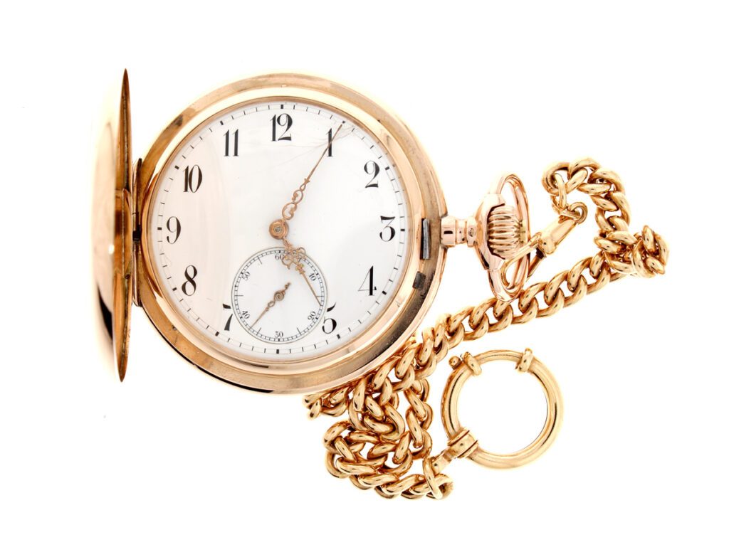 UNION Savonette, Dürrstein Taschenuhr in 14-Karat-Gelbgold (.585), Handaufzugswerk und 14-Karat-Goldkette.