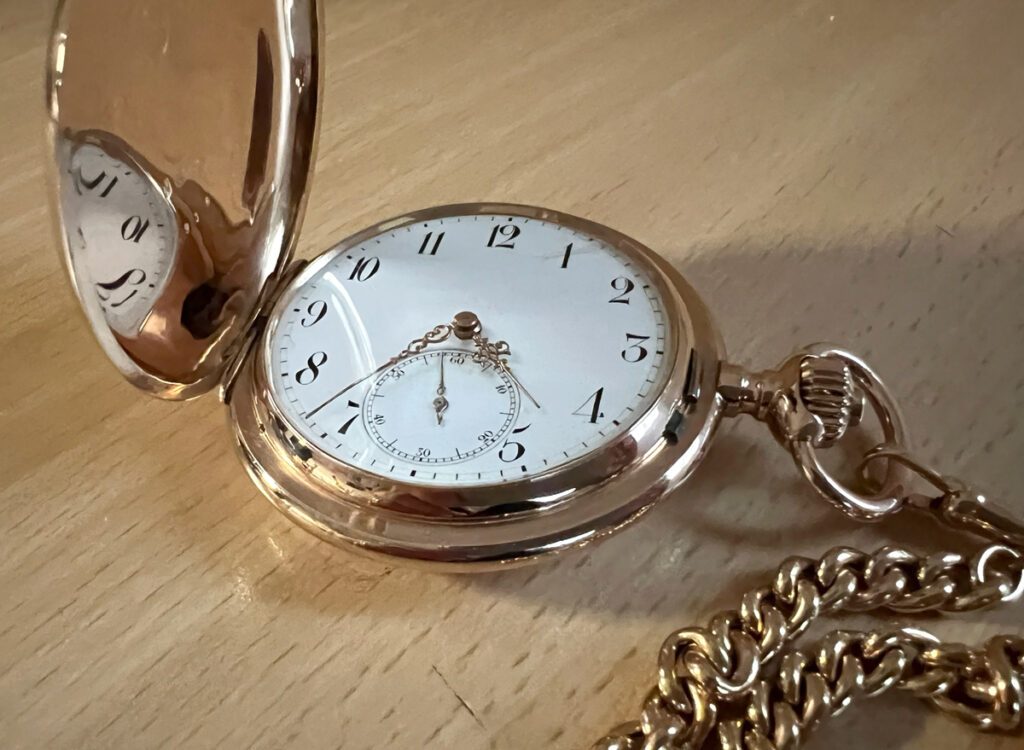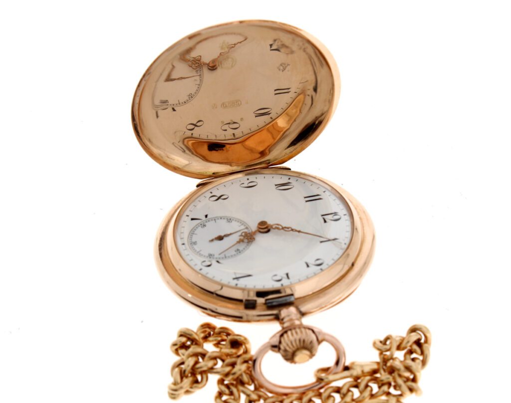 3. Deckel 14 Karat Gold, Kette 14 Karat Gold, Minutenzeiger