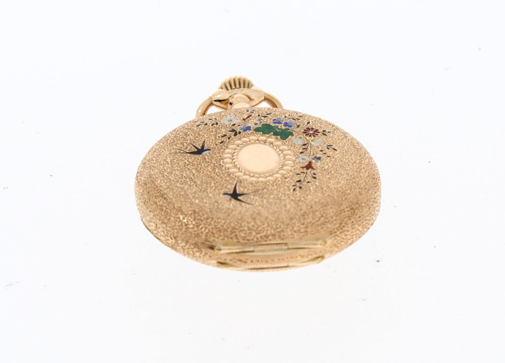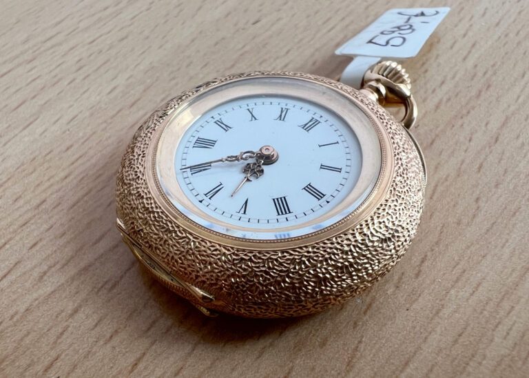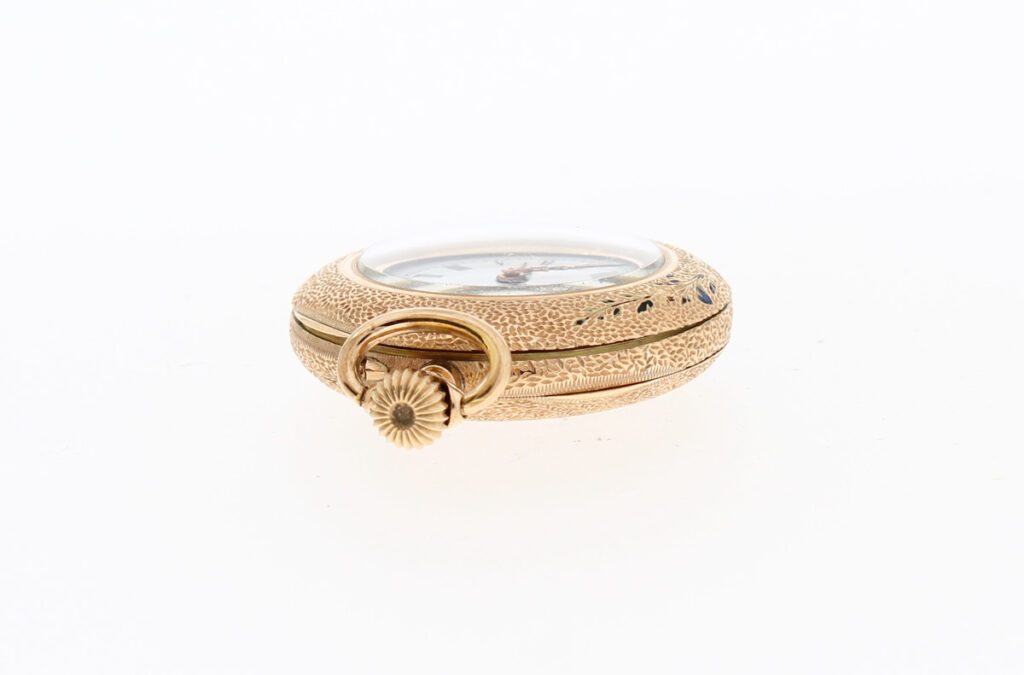 ZYLINDER Taschenuhr mit 14-Karat-Rotgoldgehäuse und Handaufzug.