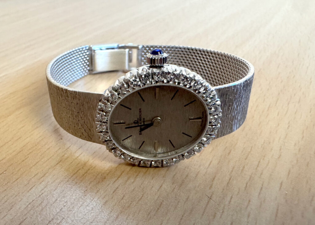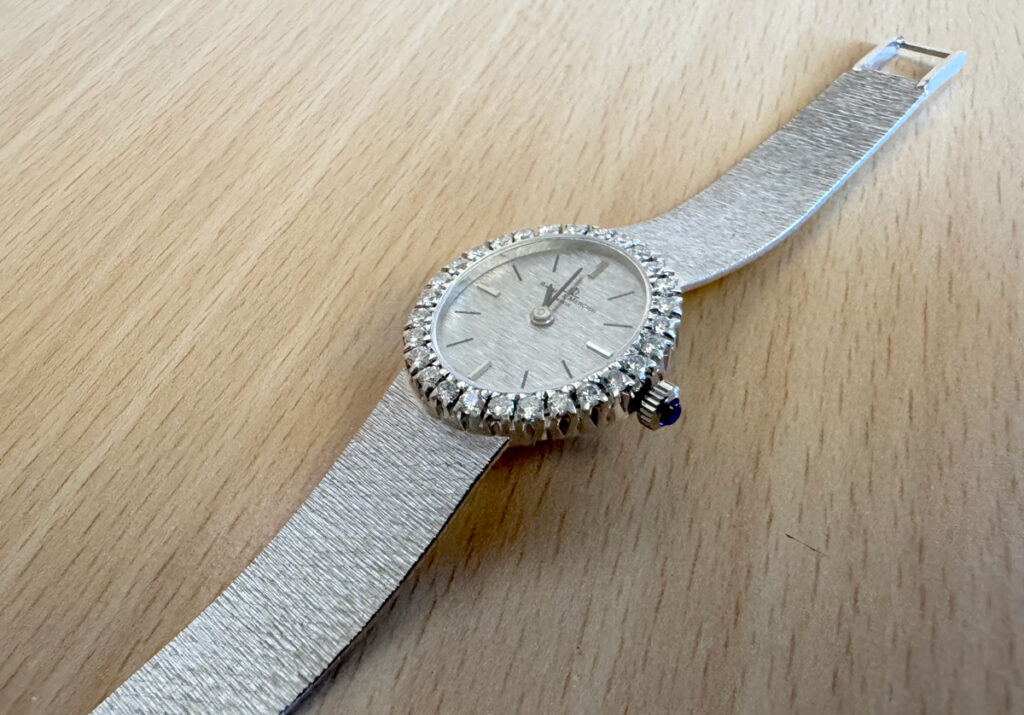weißgold, analoge Anzeige, keine Ziffern