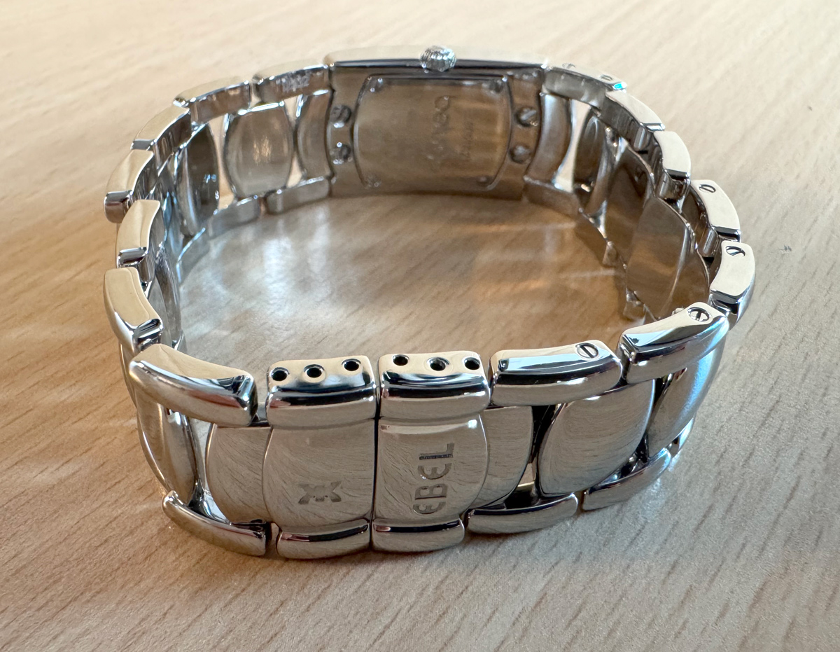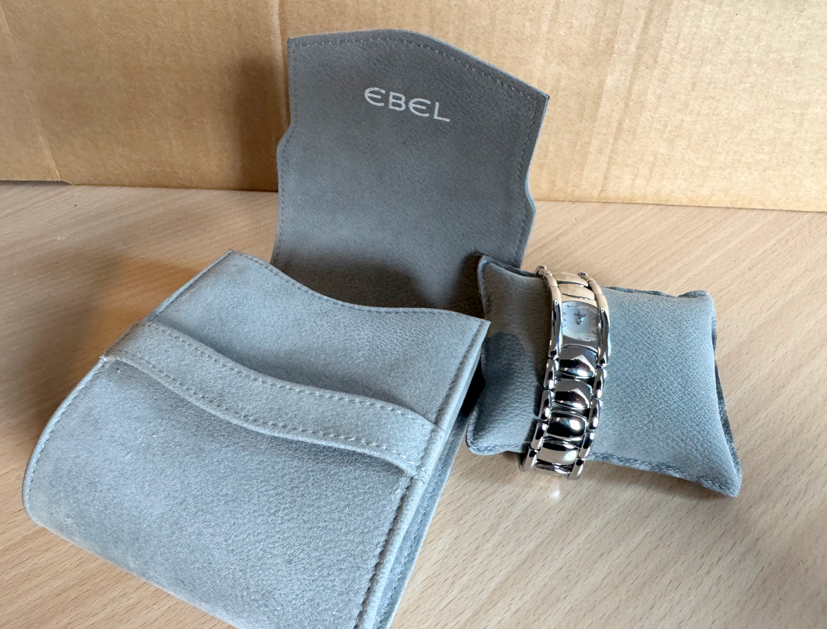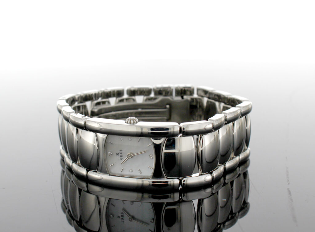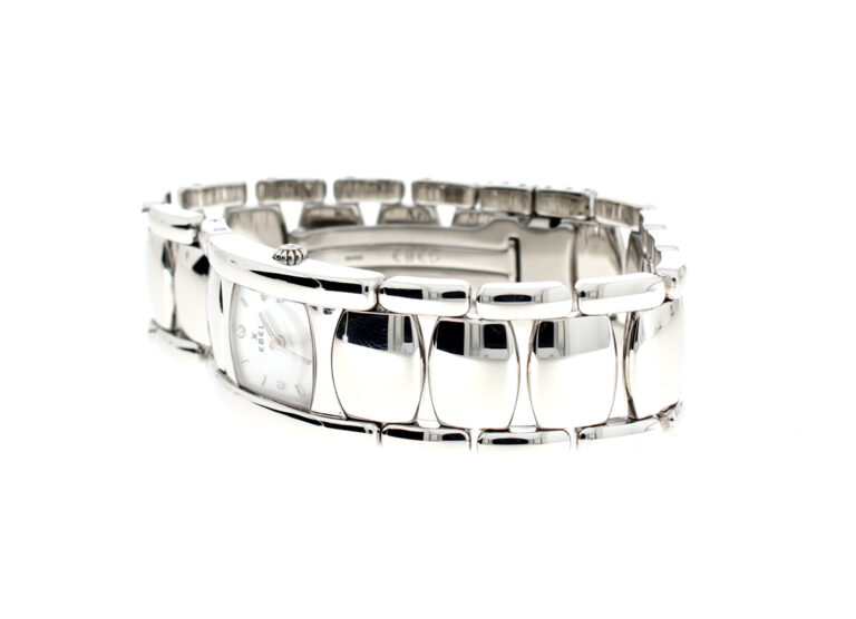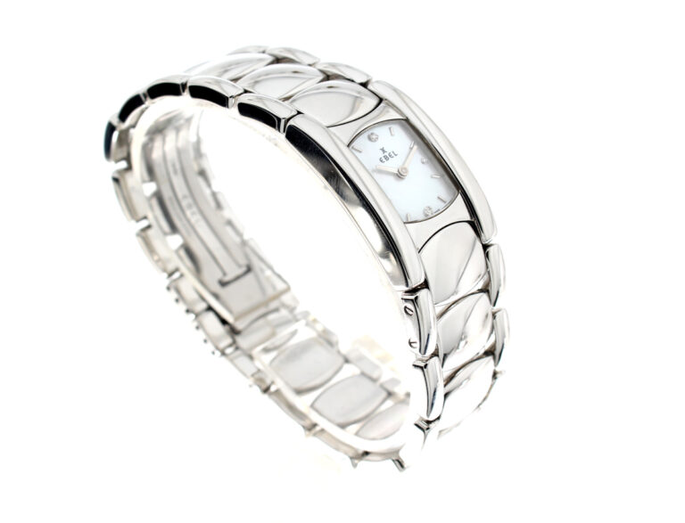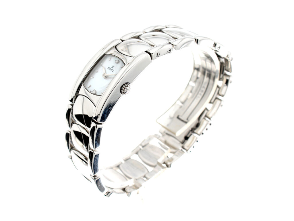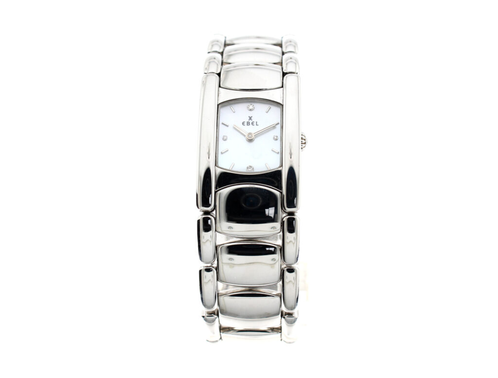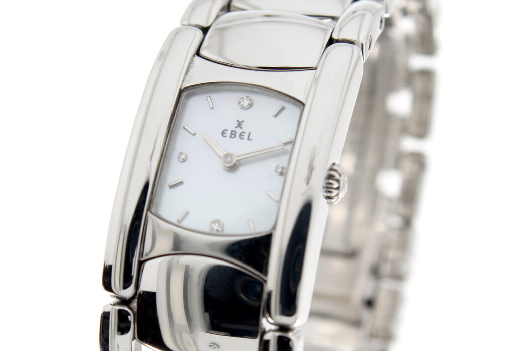 EBEL Beluga Damenuhr mit Edelstahlgehäuse, Perlmutt-Ziffernblatt, 4 Diamanten und Original-Filztasche.