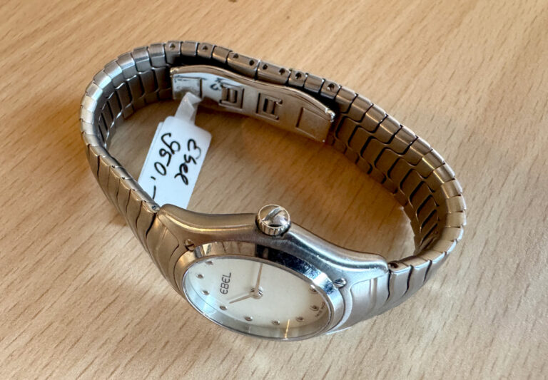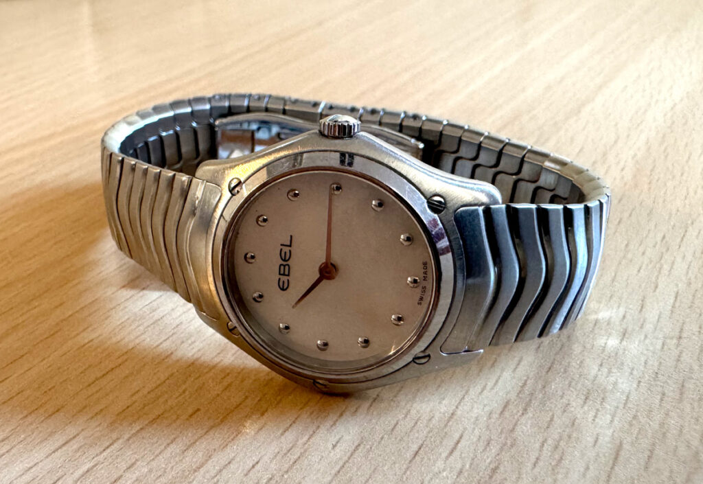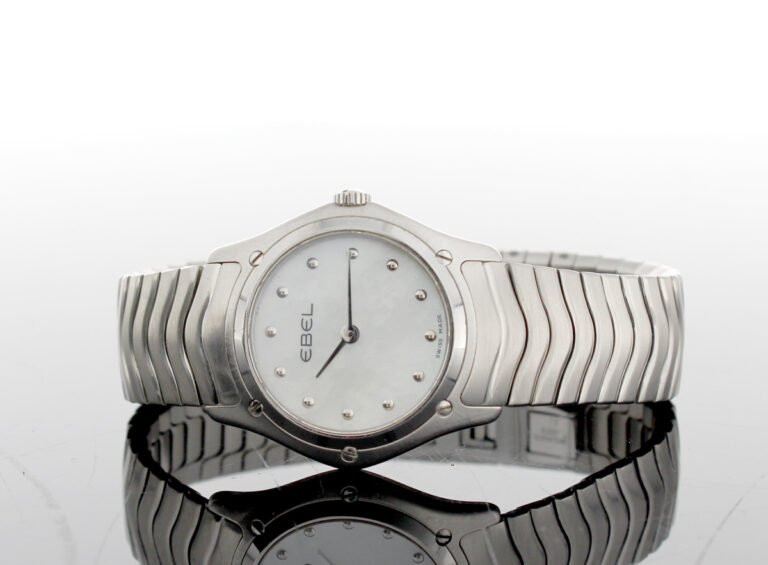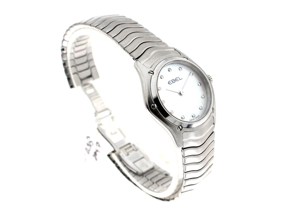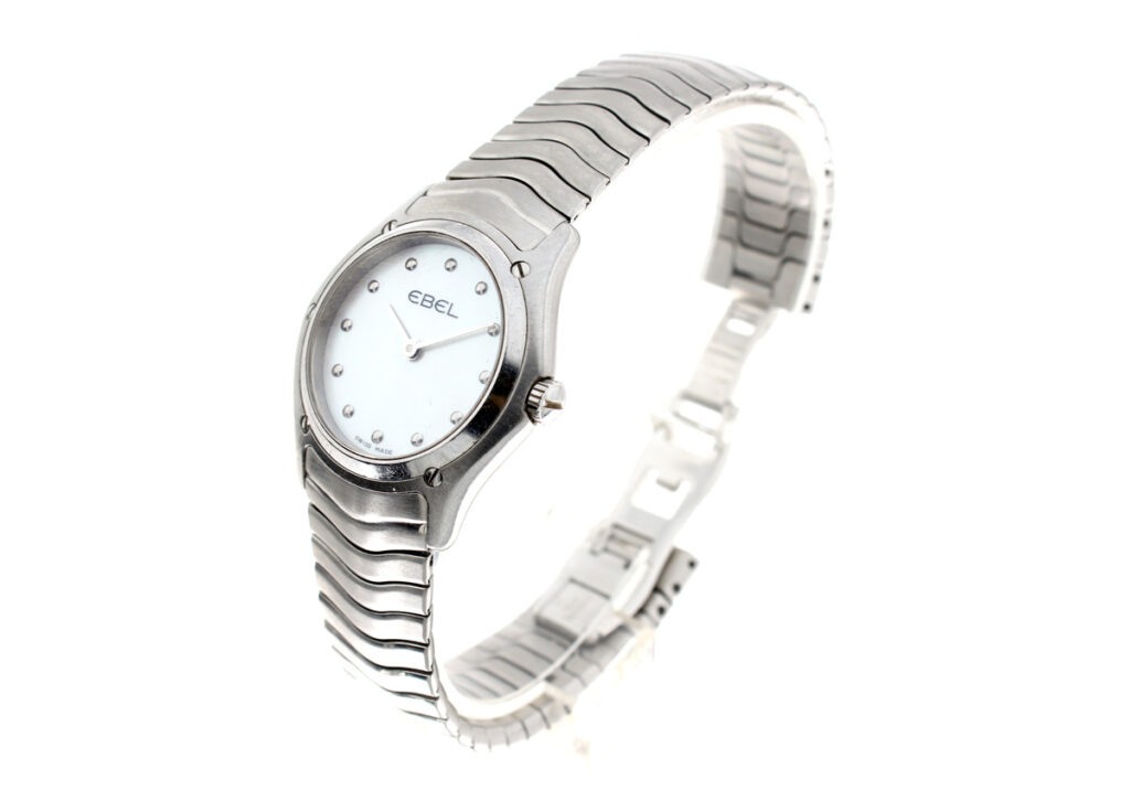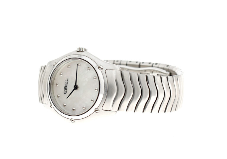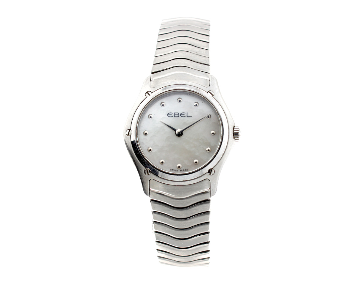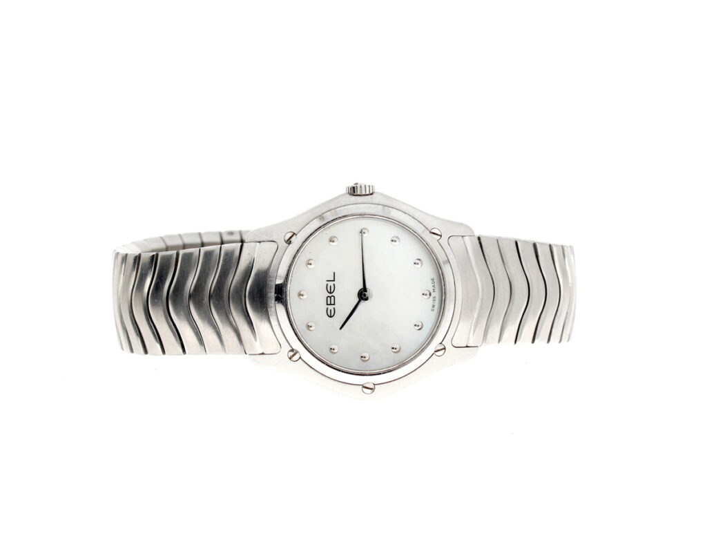 EBEL Classic Wave Damen-Armbanduhr mit Stahlgehäuse, Quartzwerk, Perlmutt-Ziffernblatt und Stahlband.