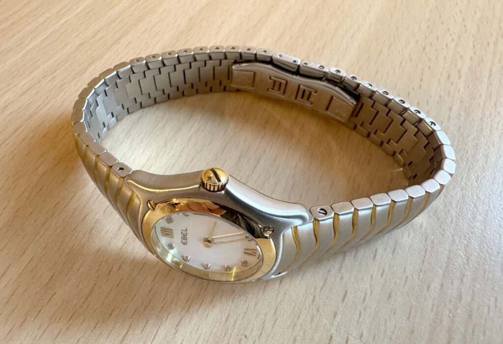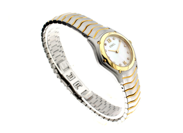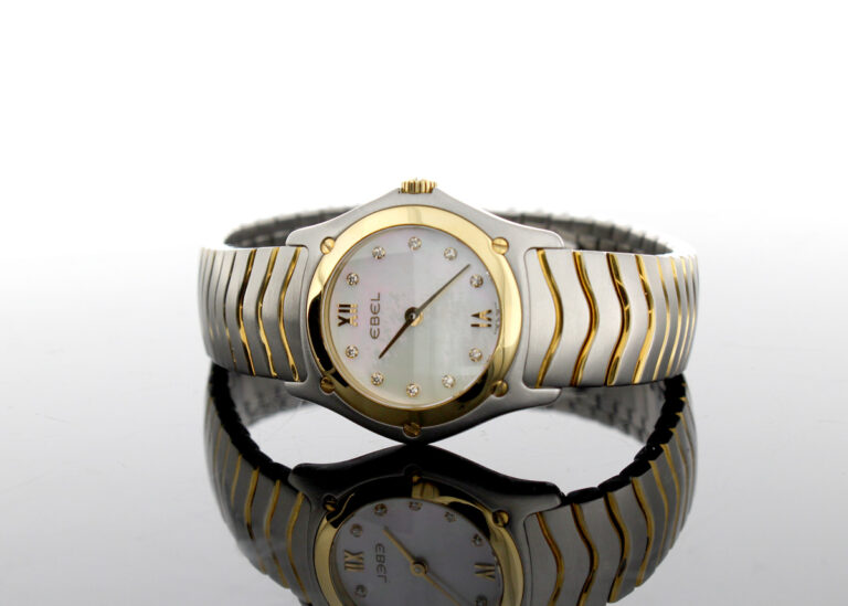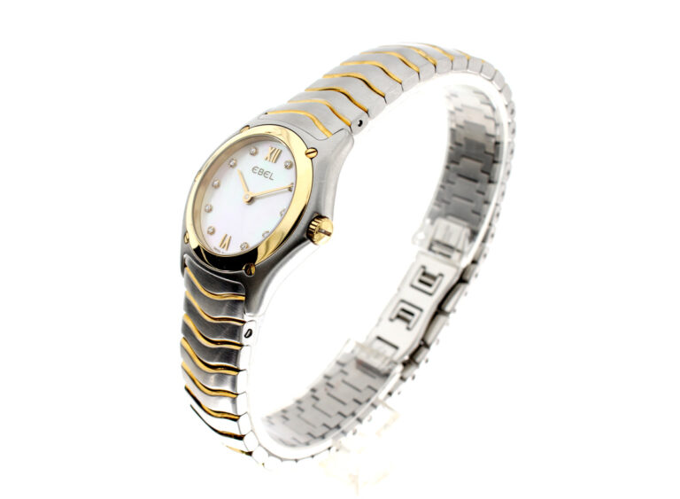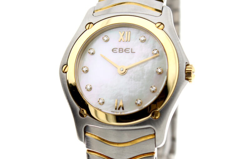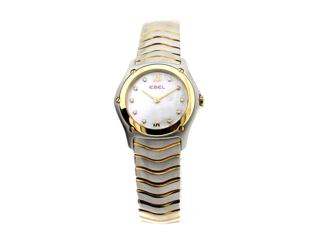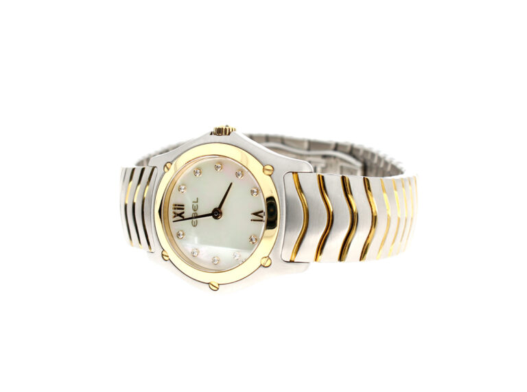 EBEL Classic Wave Damenuhr mit Stahl-/ Goldgehäuse (Bicolor), Quartzwerk, 10 Diamanten und Perlmutt-Ziffernblatt im Full-Set.