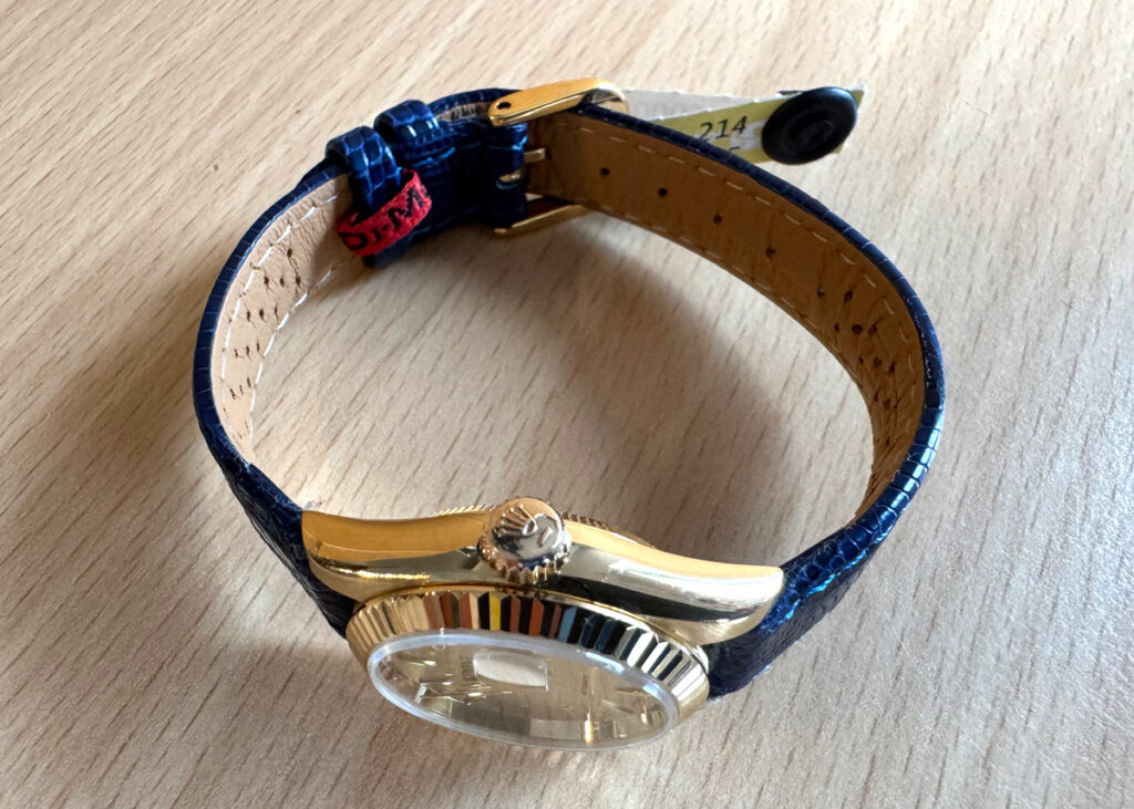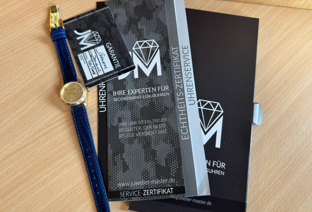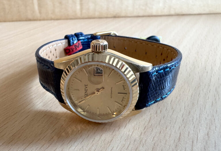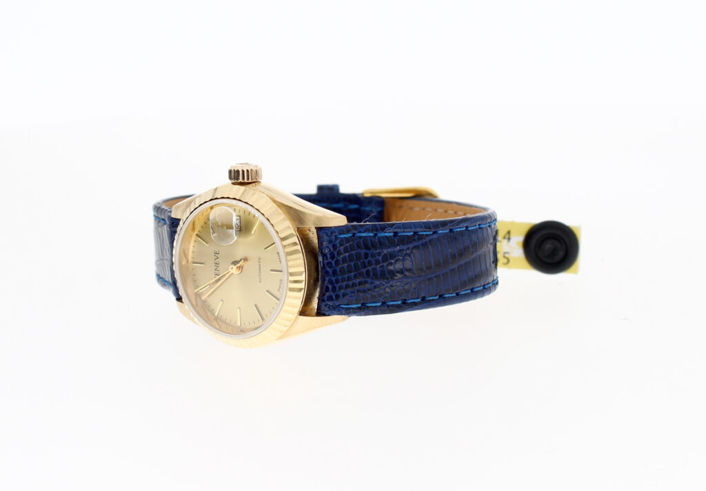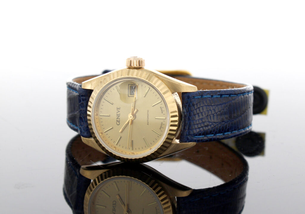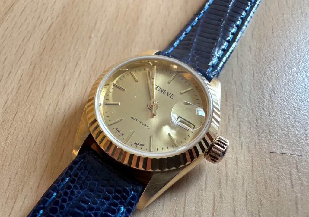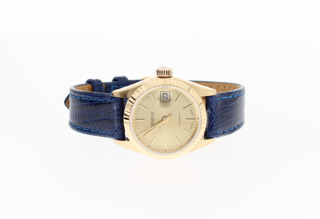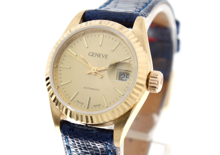 GENEVE Automatik Damenuhr mit 18-Karat-Goldgehäuse und ETA-Automatikwerk, Saphirglas und Schraubkrone.