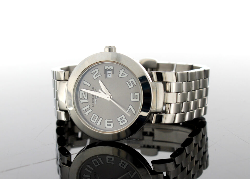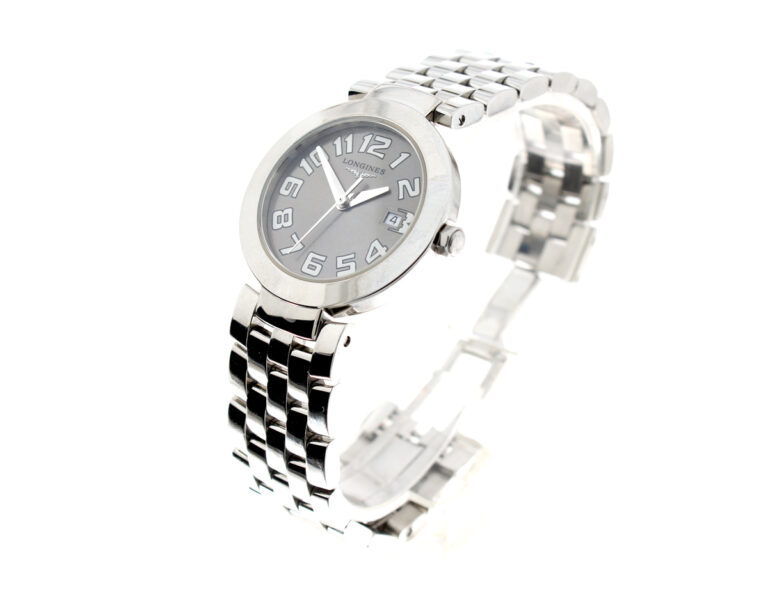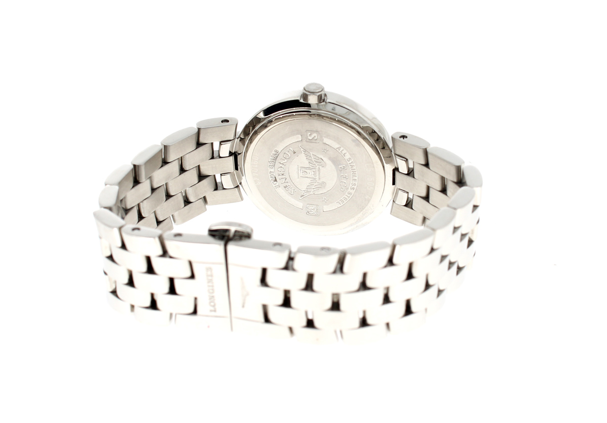 LONGINES Damenuhr mit Edelstahlgehäuse, ETA-Quartzwerk, Doppelfaltschließe mit Drücker.