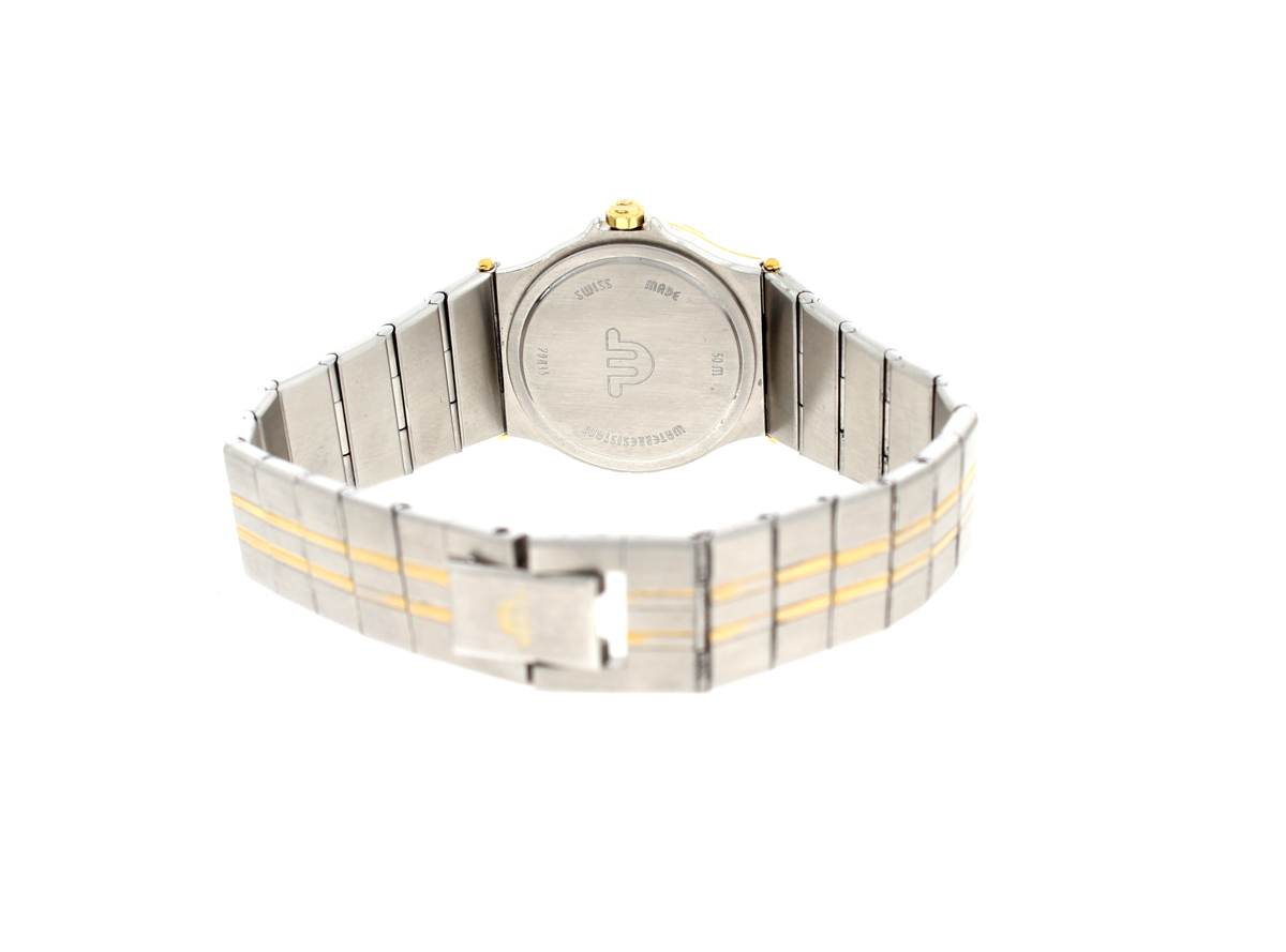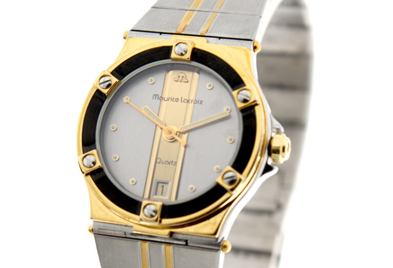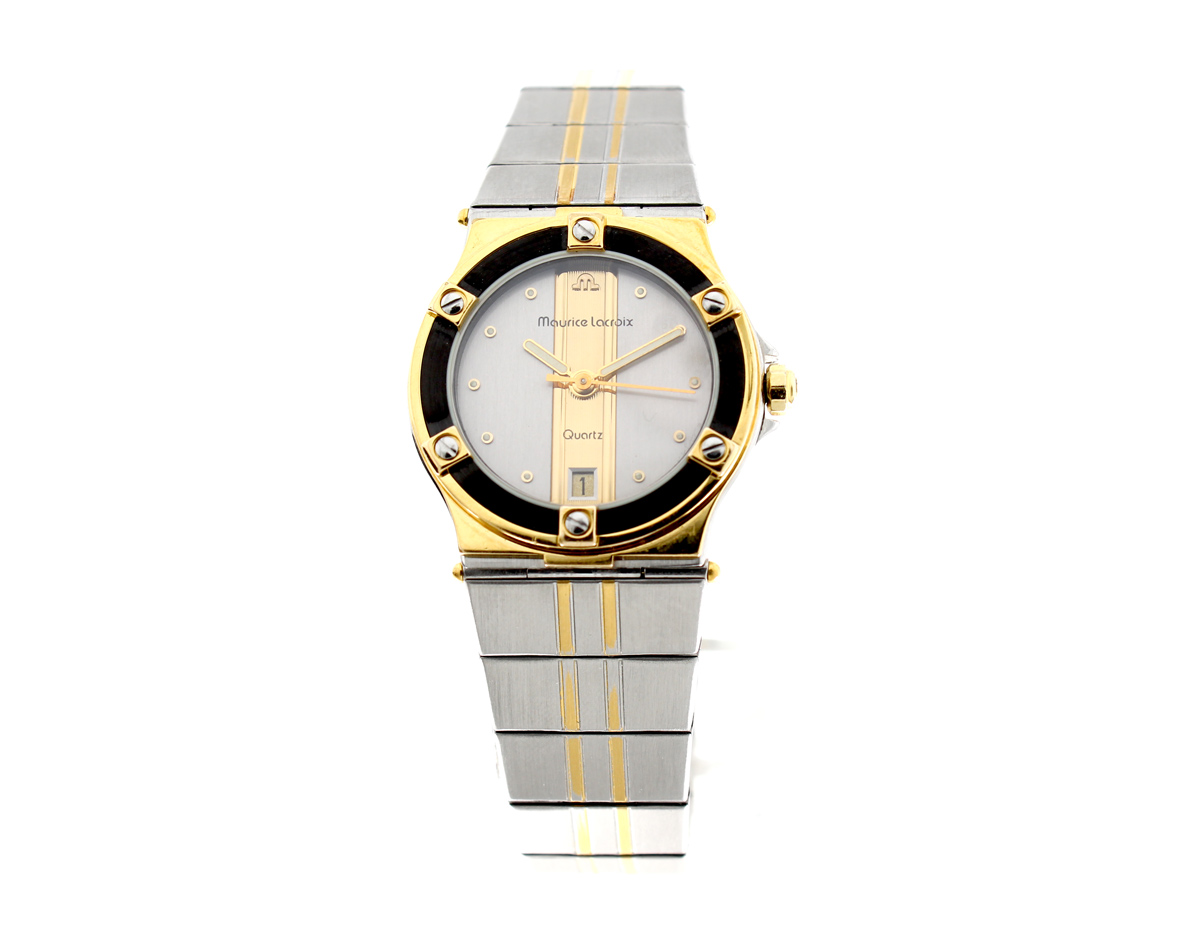 MAURICE LACROIX Damenuhr mit Stahl-/Plaquegehäuse (Bicolor), ETA-Quartzwerk, Stahl-/Plaqueband mit Faltschließe.