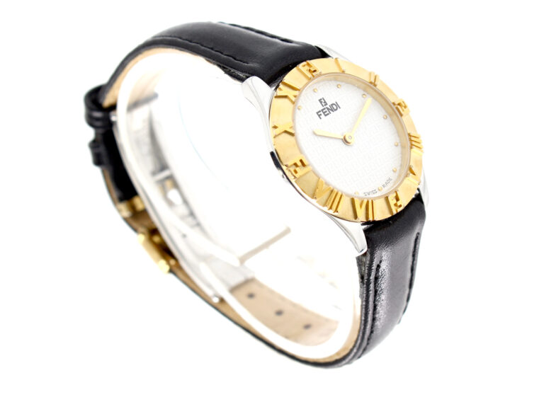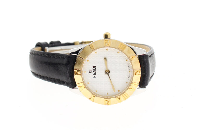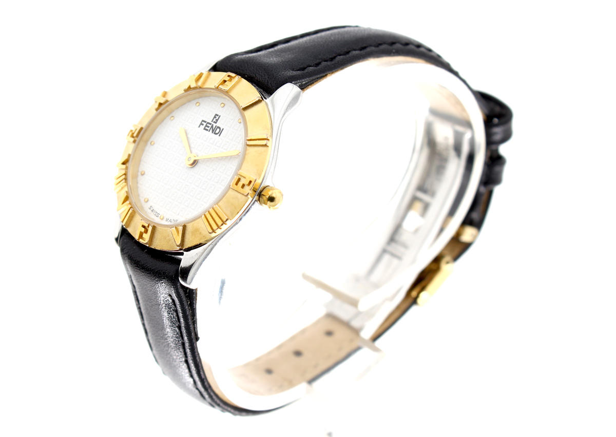 FENDI Damenuhr mit Plaquegehäuse teilvergoldet, Quarzwerk, Lederband mit Faltschließe.