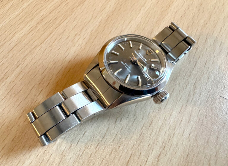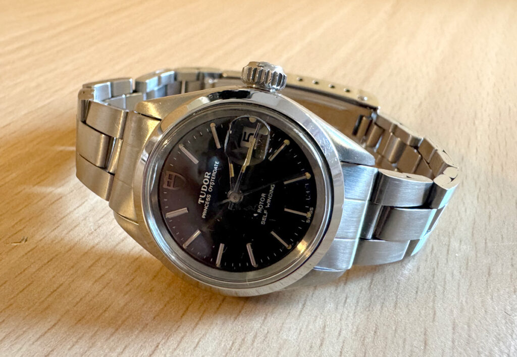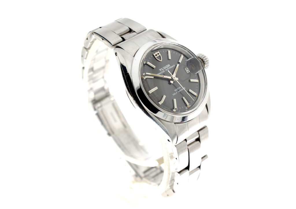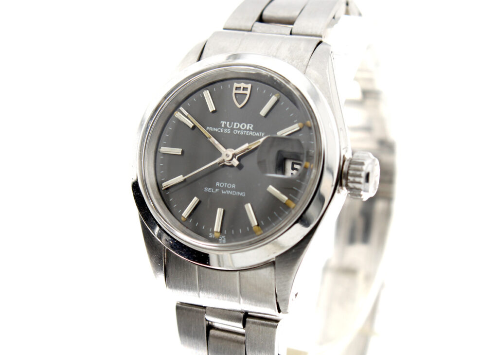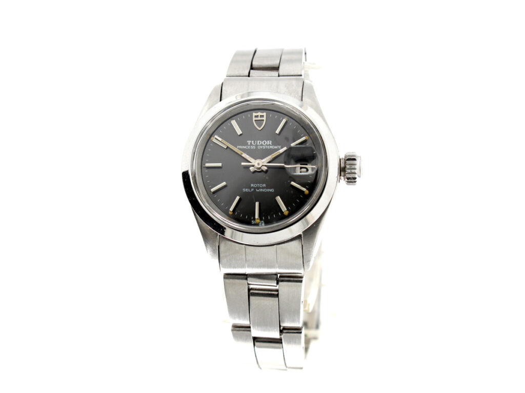 TUDOR Princess-Oysterdate Damenuhr mit Stahlgehäuse, ETA-Automatikwerk und Datumslupe.