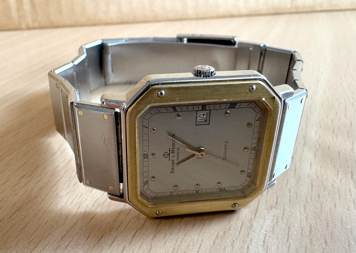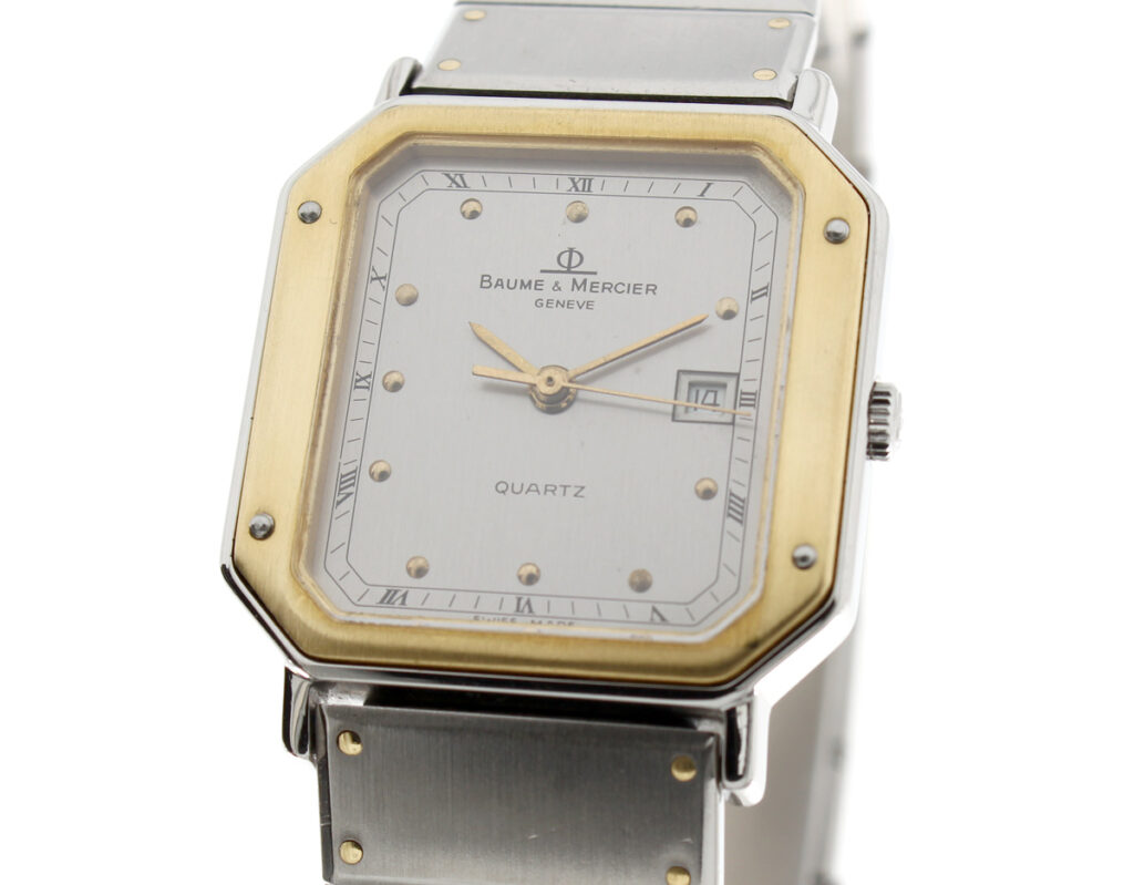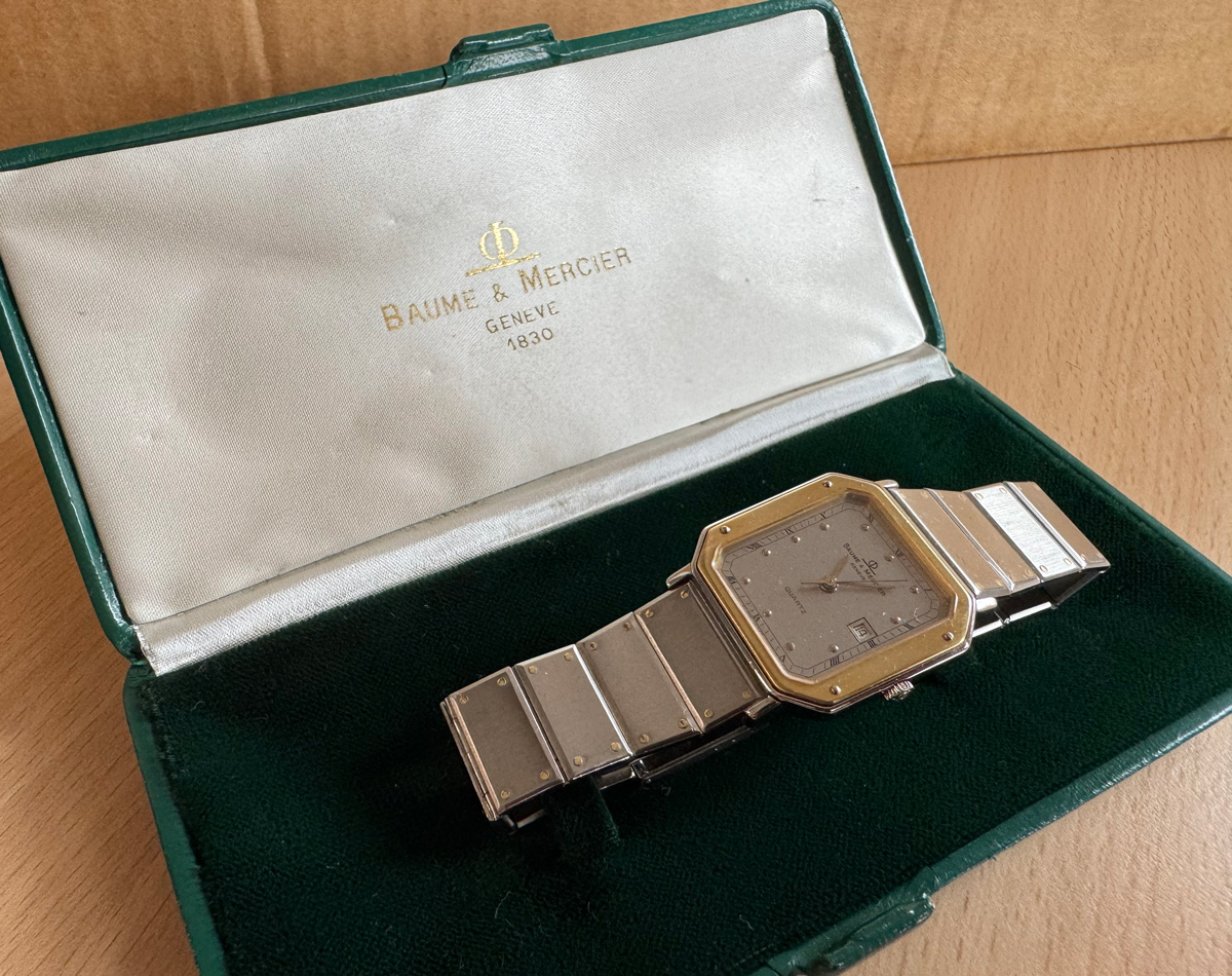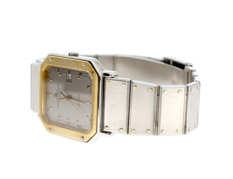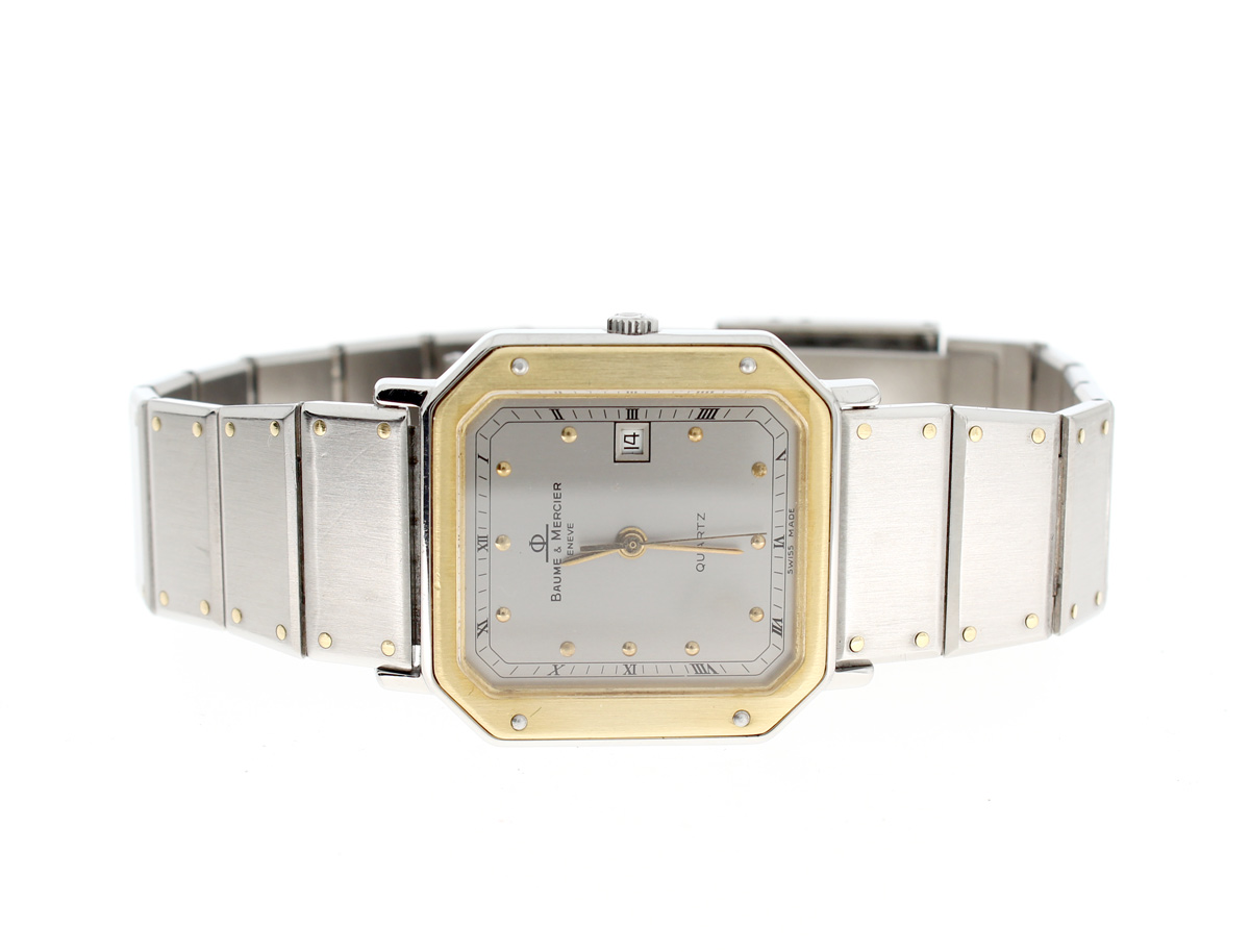 BAUME MERCIER Herrenuhr mit Stahl-/ Goldgehäuse (Bicolor),ETA-Quartzwerk, Zentralsekunde und Originalbox.