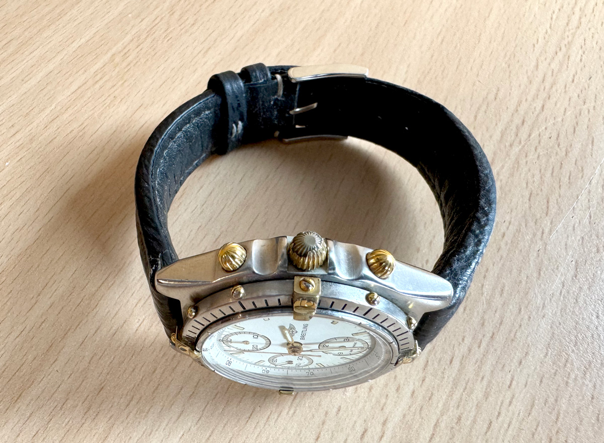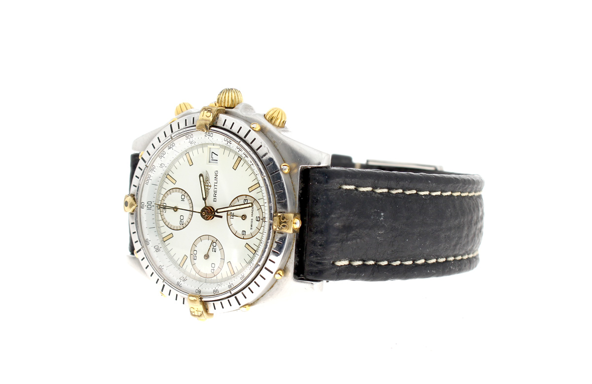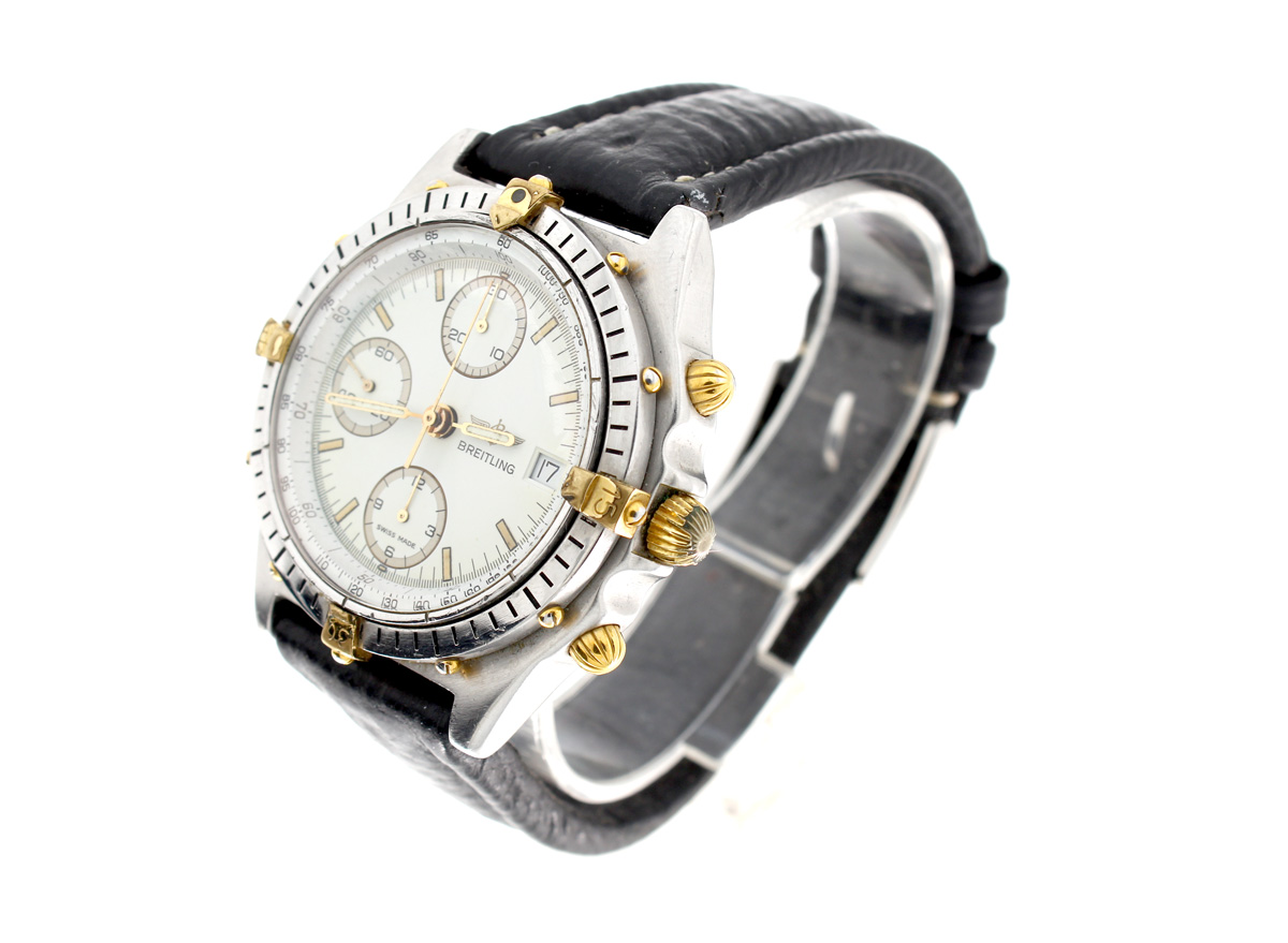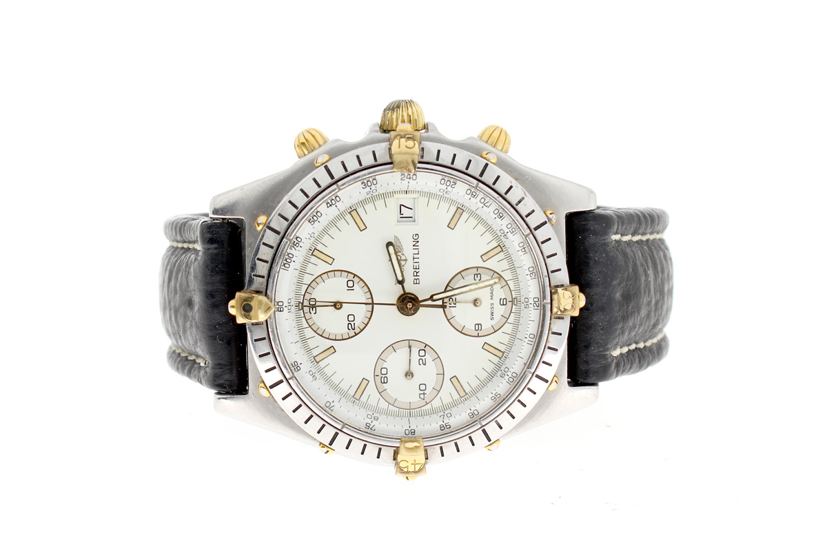 BREITLING Chronomat Herren-Armbanduhr mit Stahl-/ Goldgehäuse, Automatikwerk, Lederband mit Original-Dornschließe.