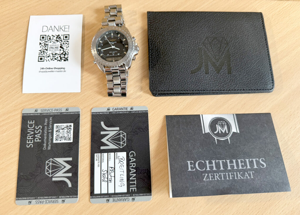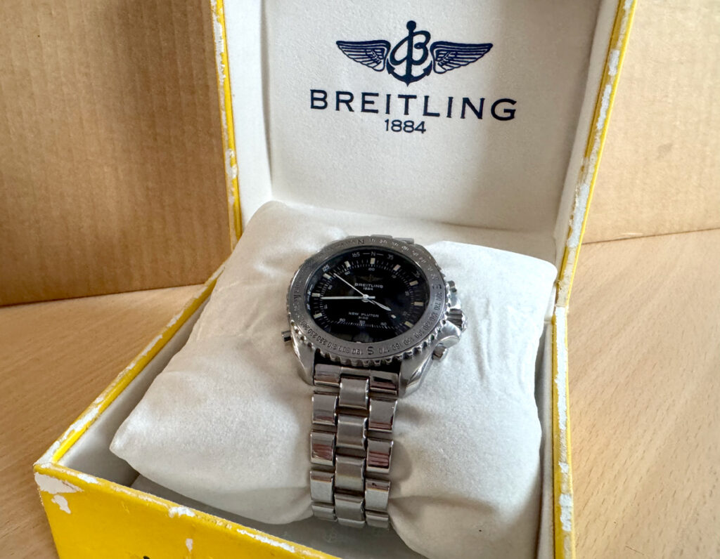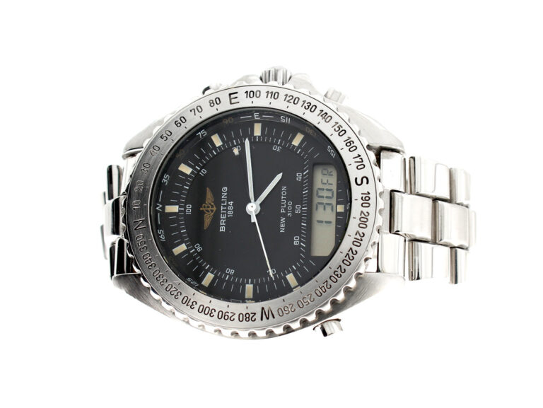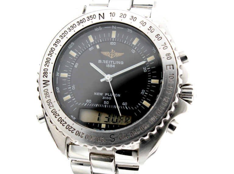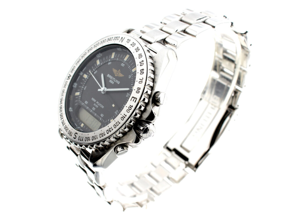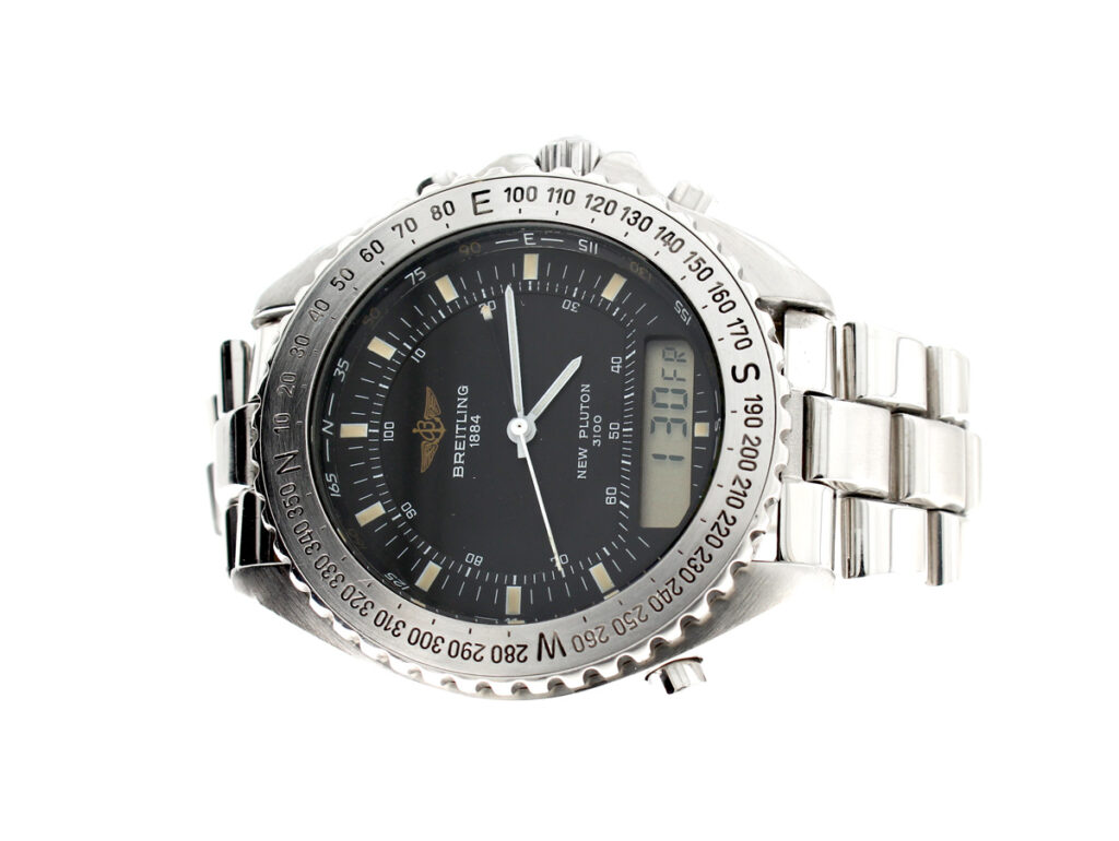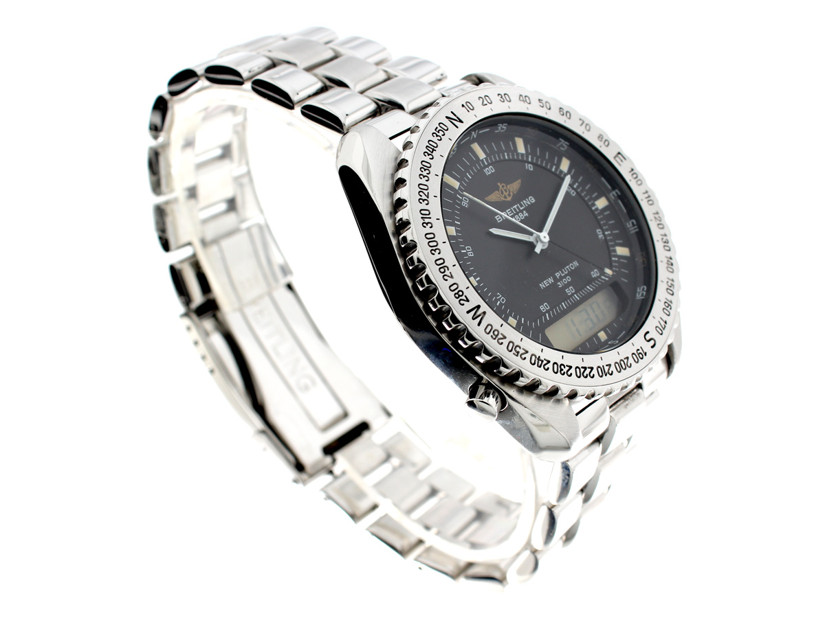 BREITLING Pluton 3000 Herrenuhr mit Edelstahlgehäuse, digitalem und analogen Quartzwerk im Full-Set.