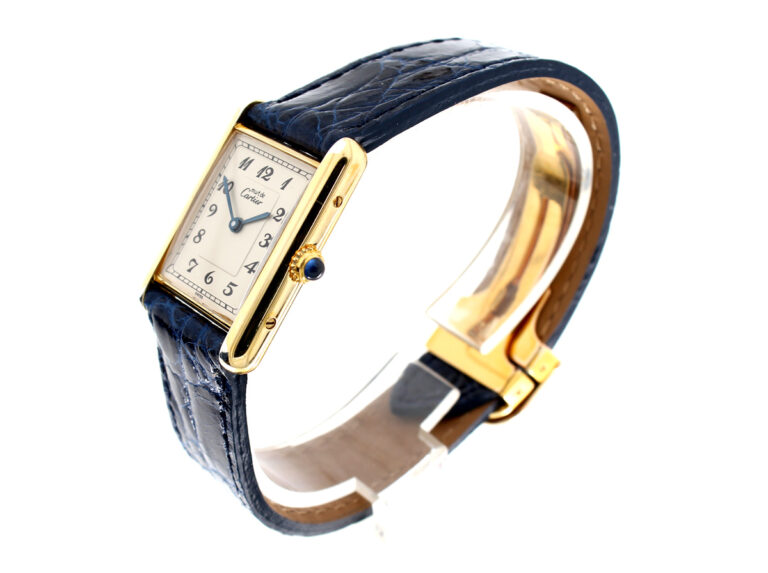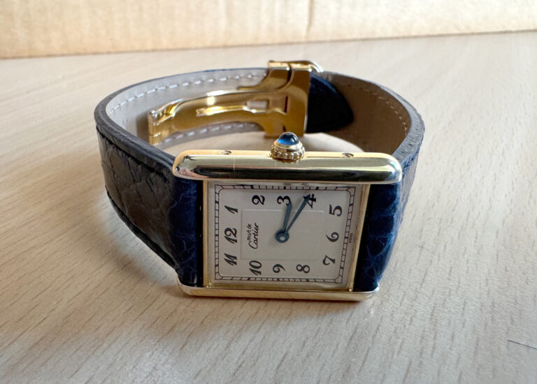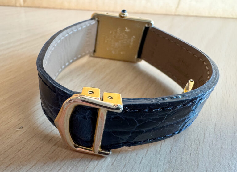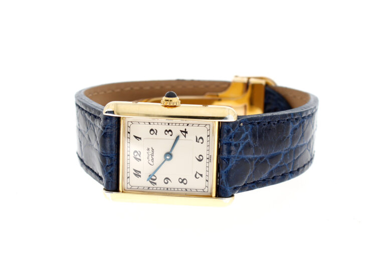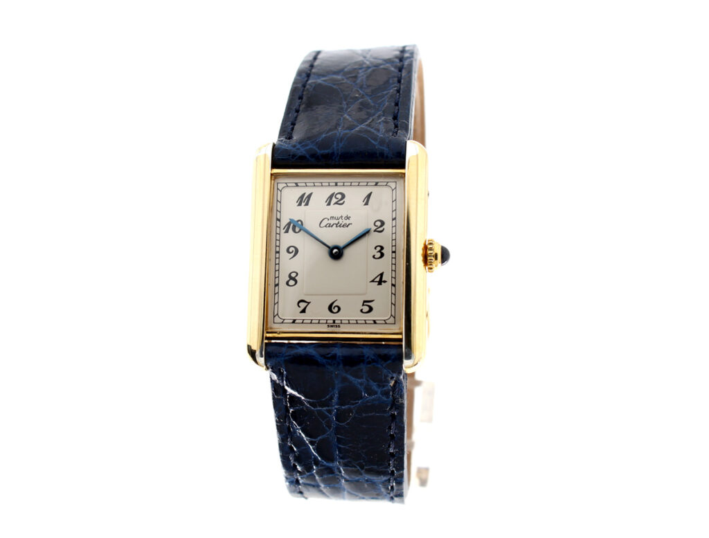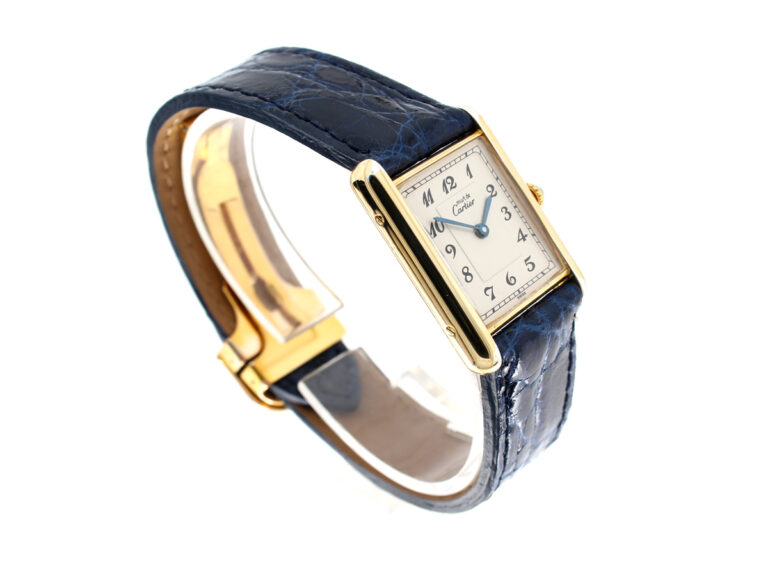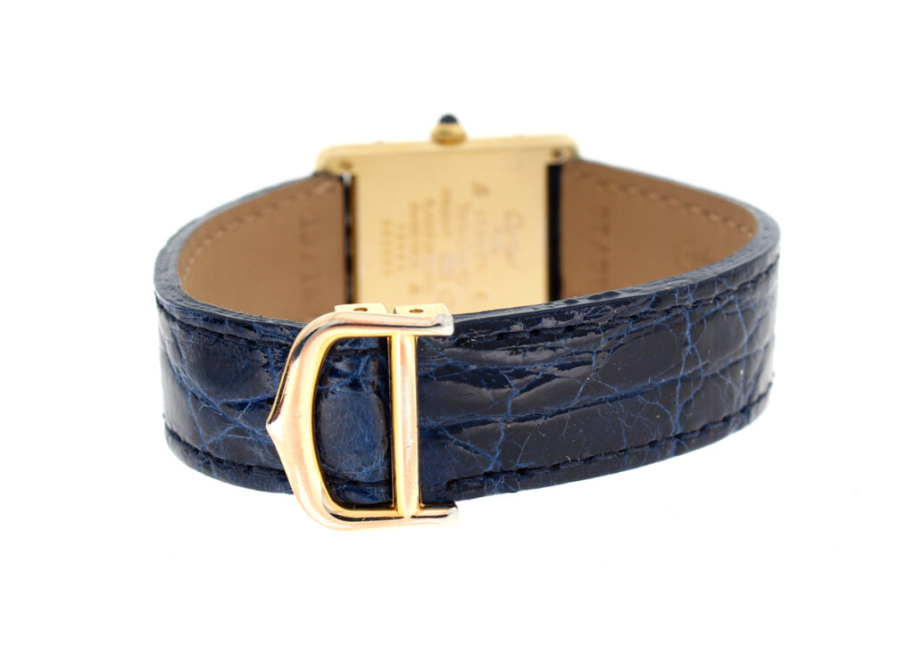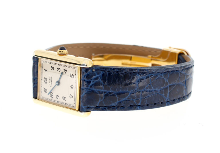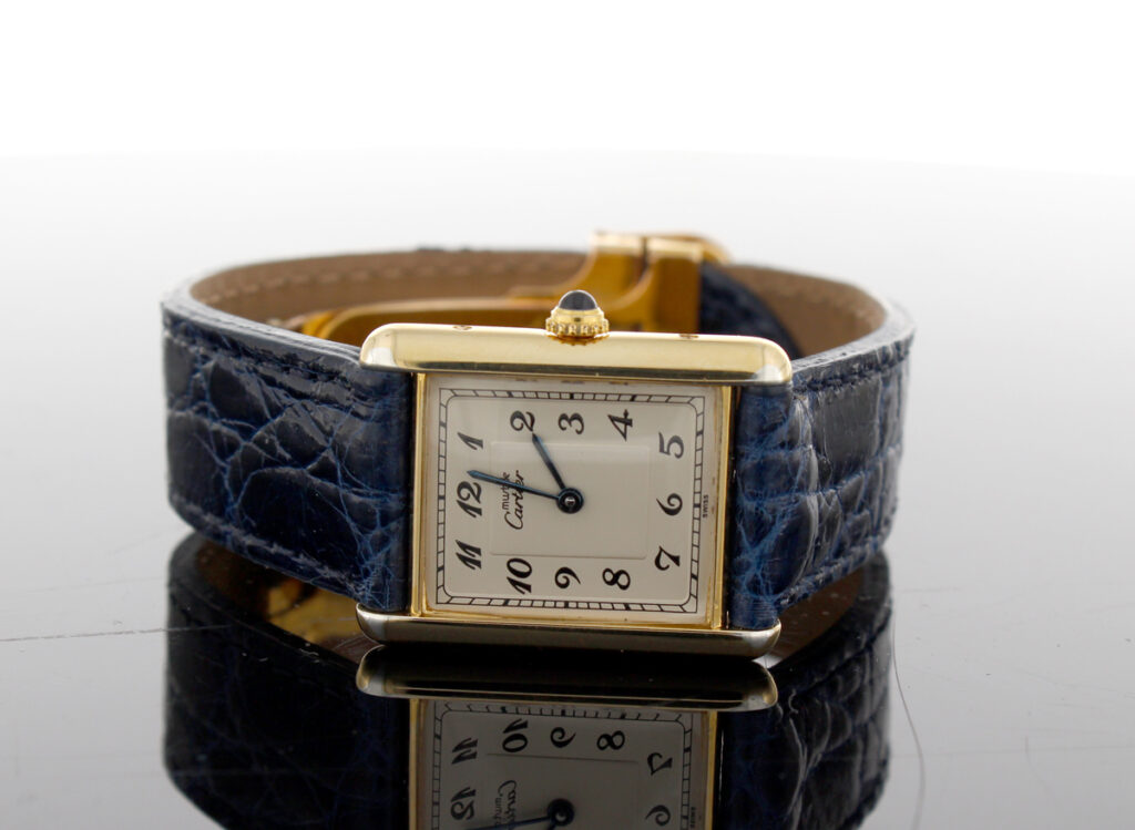 CARTIER Tank Armbanduhr mit 925 Vermailgehäuse, Quartzwerk, Kroko-Lederband und Filztasche.