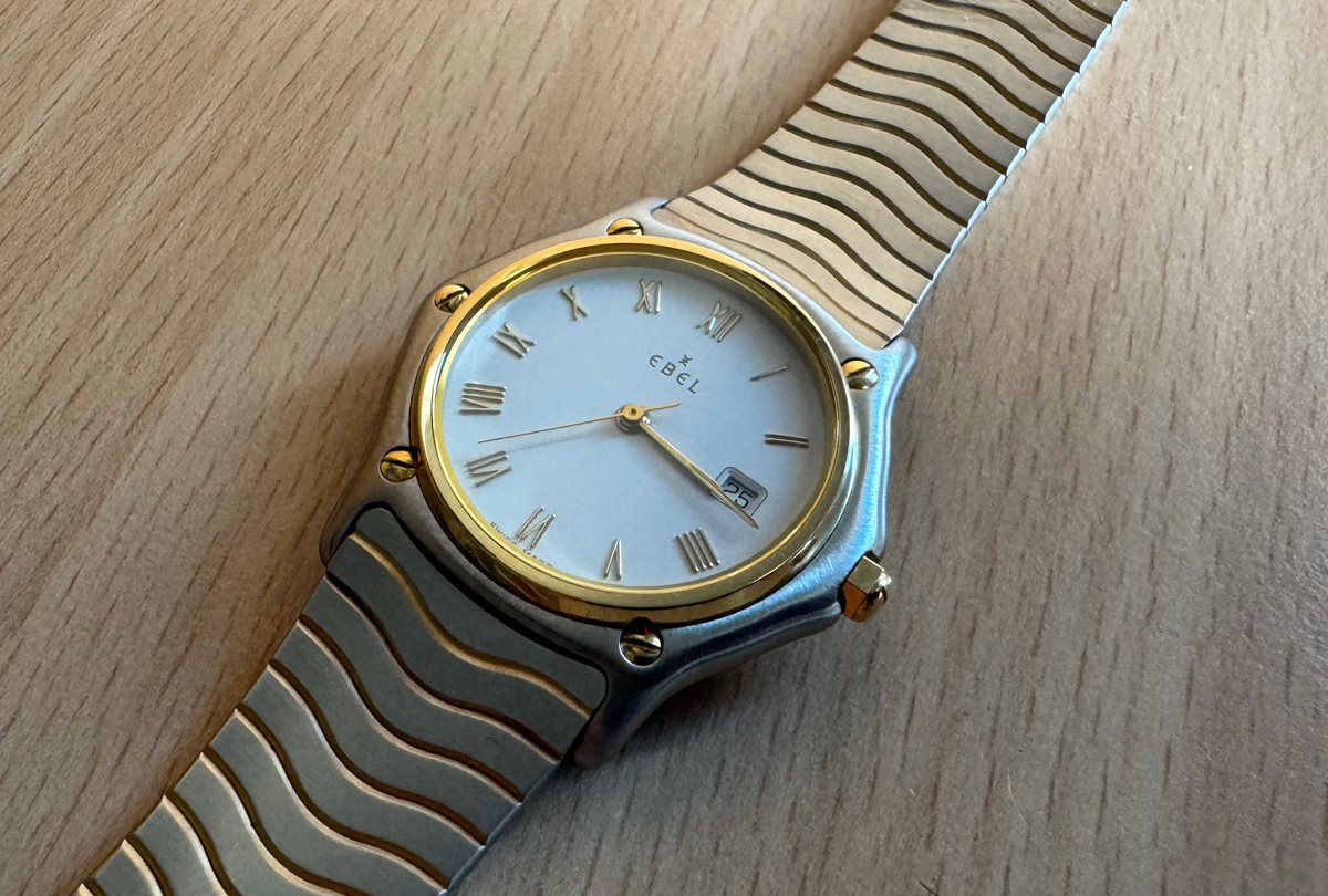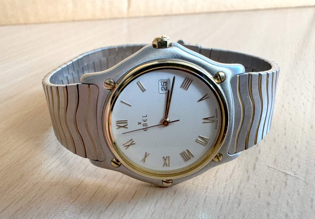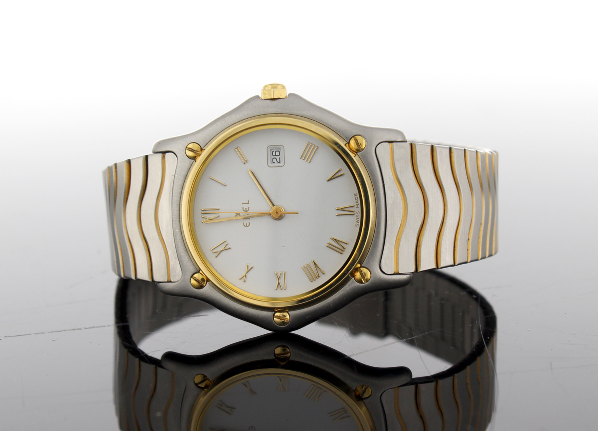 EBEL Classic Wave Armbanduhr mit Stahl-/ Goldgehäuse, Quartzwerk, Sekunde und Datum.