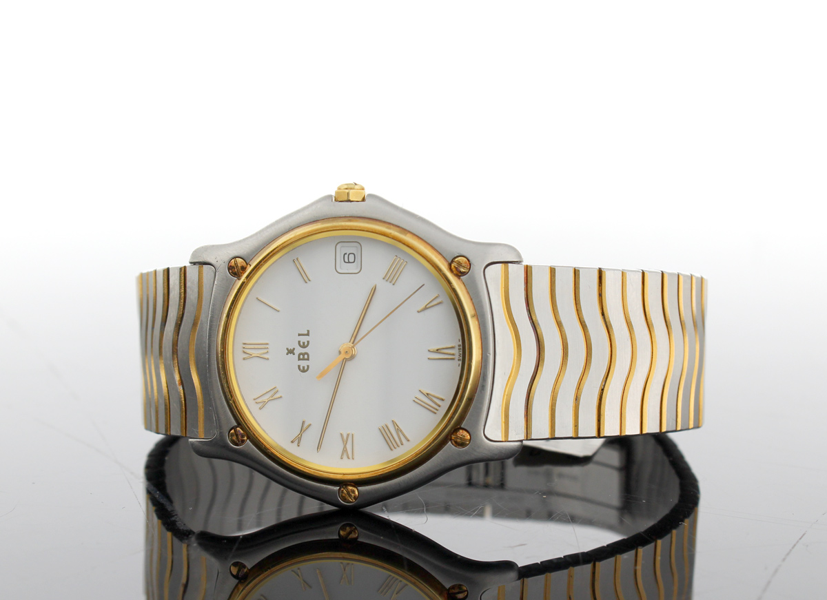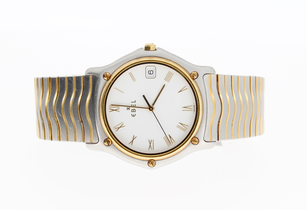 EBEL Classic Wave Herrenuhr mit Stahl-/ Goldgehäuse, Quartzwerk, Datum und Original-Papiere.