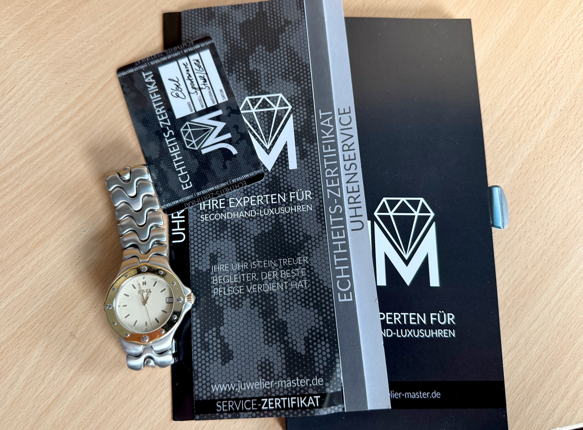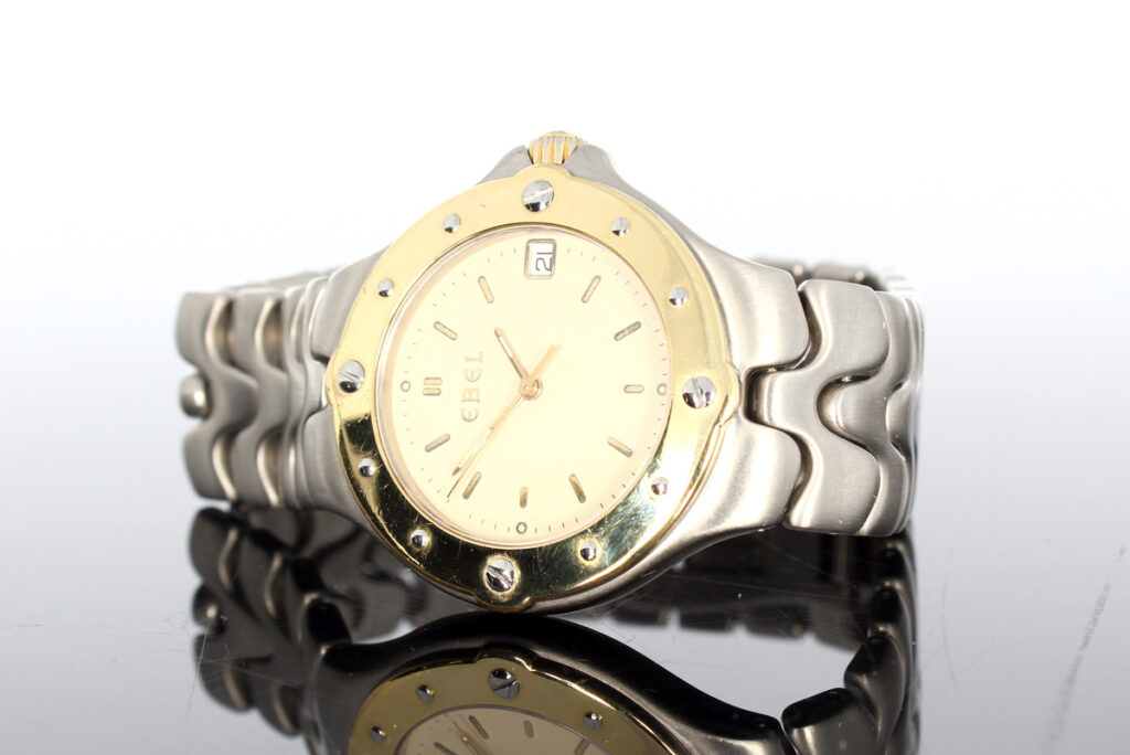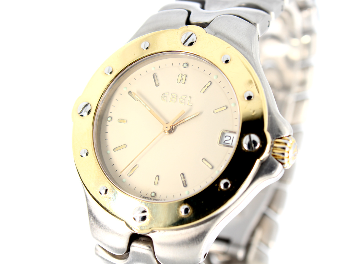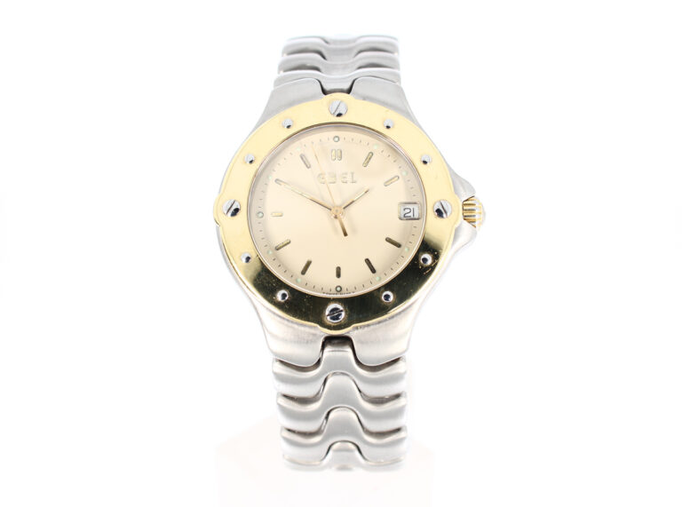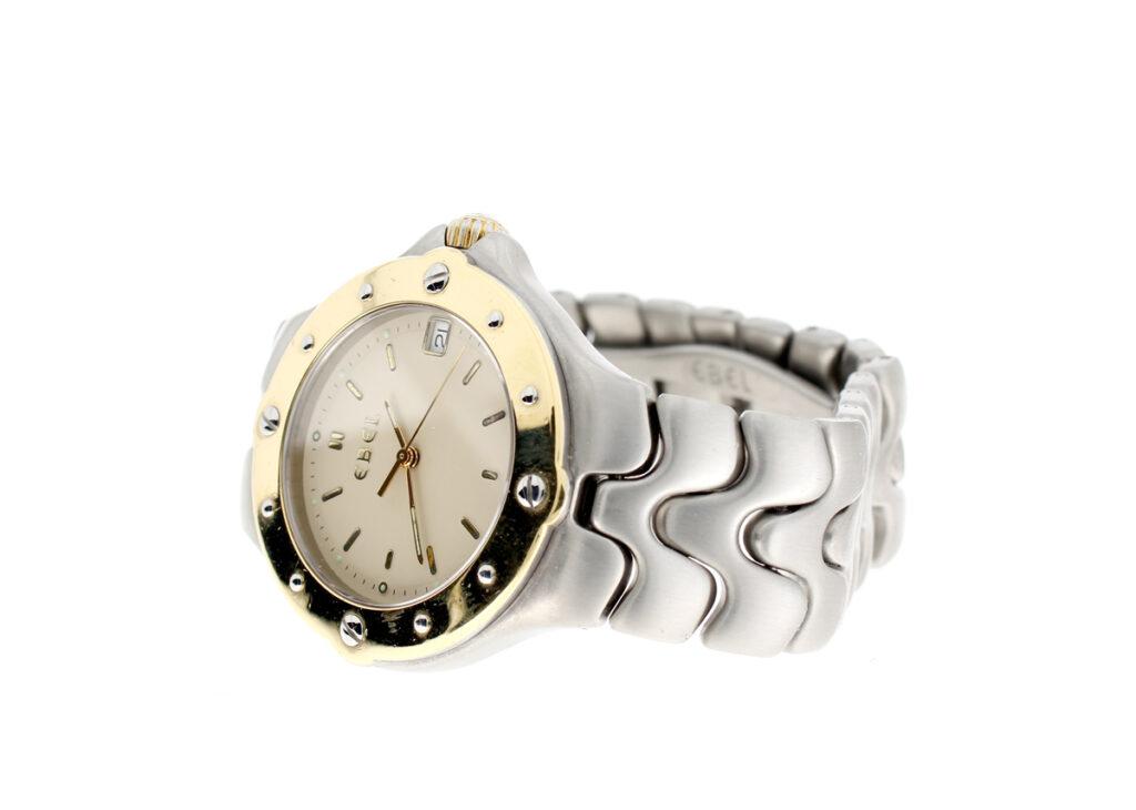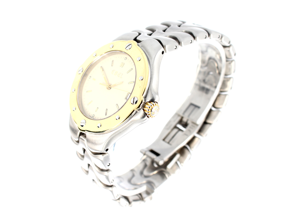 EBEL Sportwave Herrenuhr mit Stahl-/Goldgehäuse (Bicolor), Quartzwerk, Stahlband mit Doppelfaltschließe.