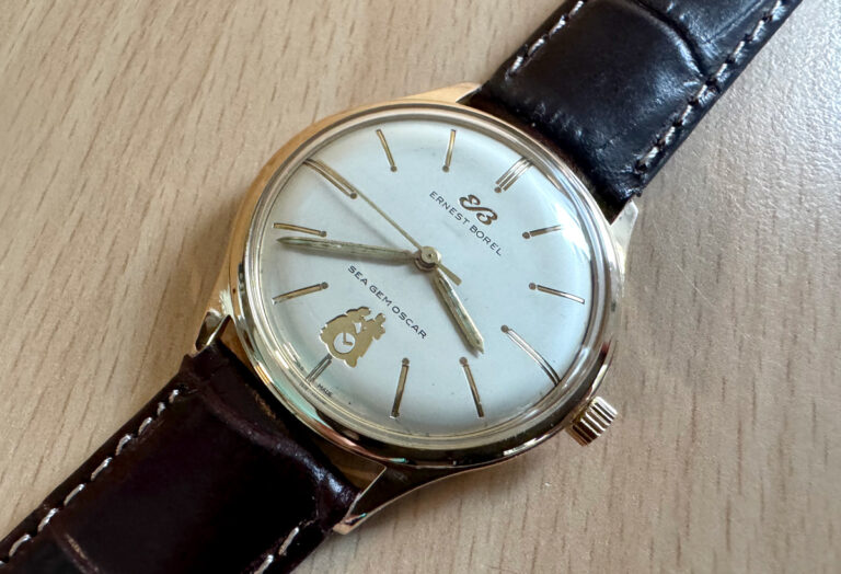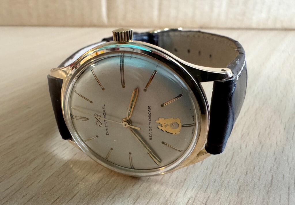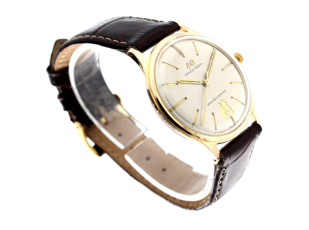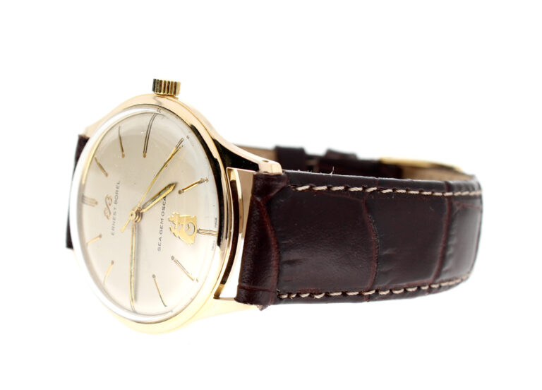 ERNEST BAREL Sea Gem Oscar Herrenuhr mit Plaquegehäuse, Stahlboden und ETA-Handaufzugswerk.