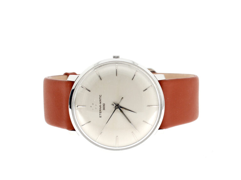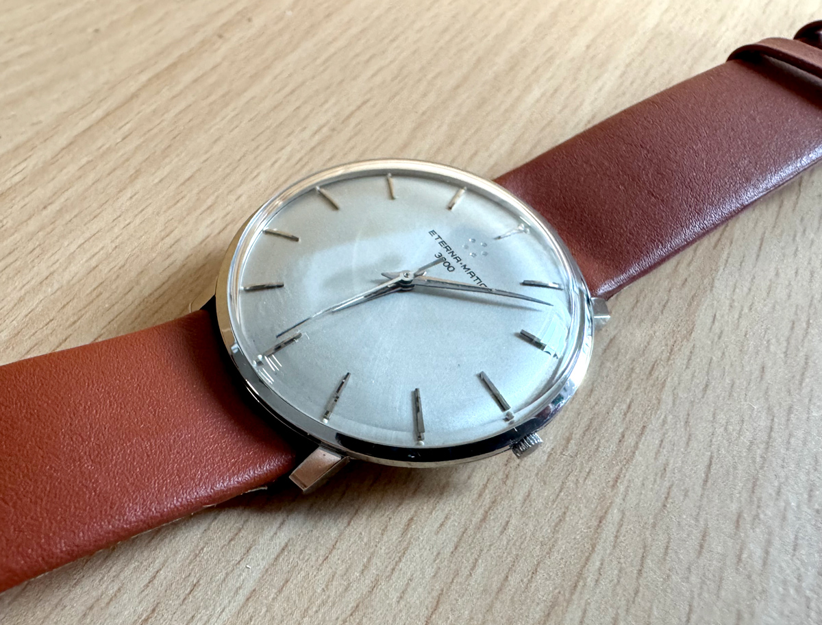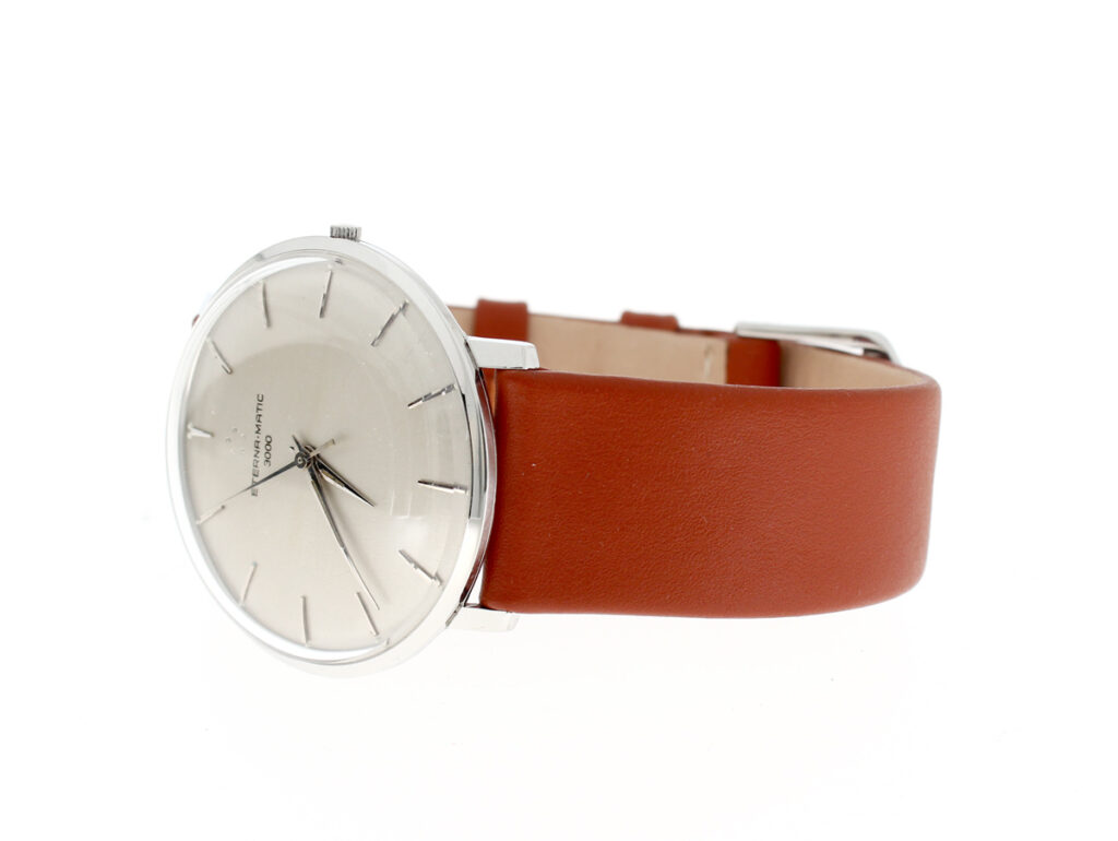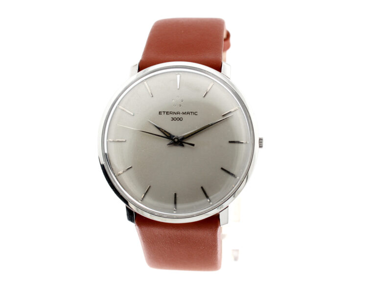 ETERNA MATIC 3000 Herrenuhr mit Edelstahlgehäuse, Eterna-Automatikwerk, Lederband, Zentralsekunde und Originalbox.