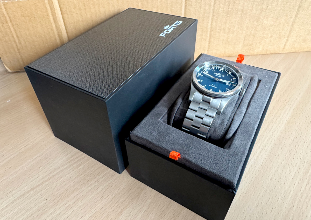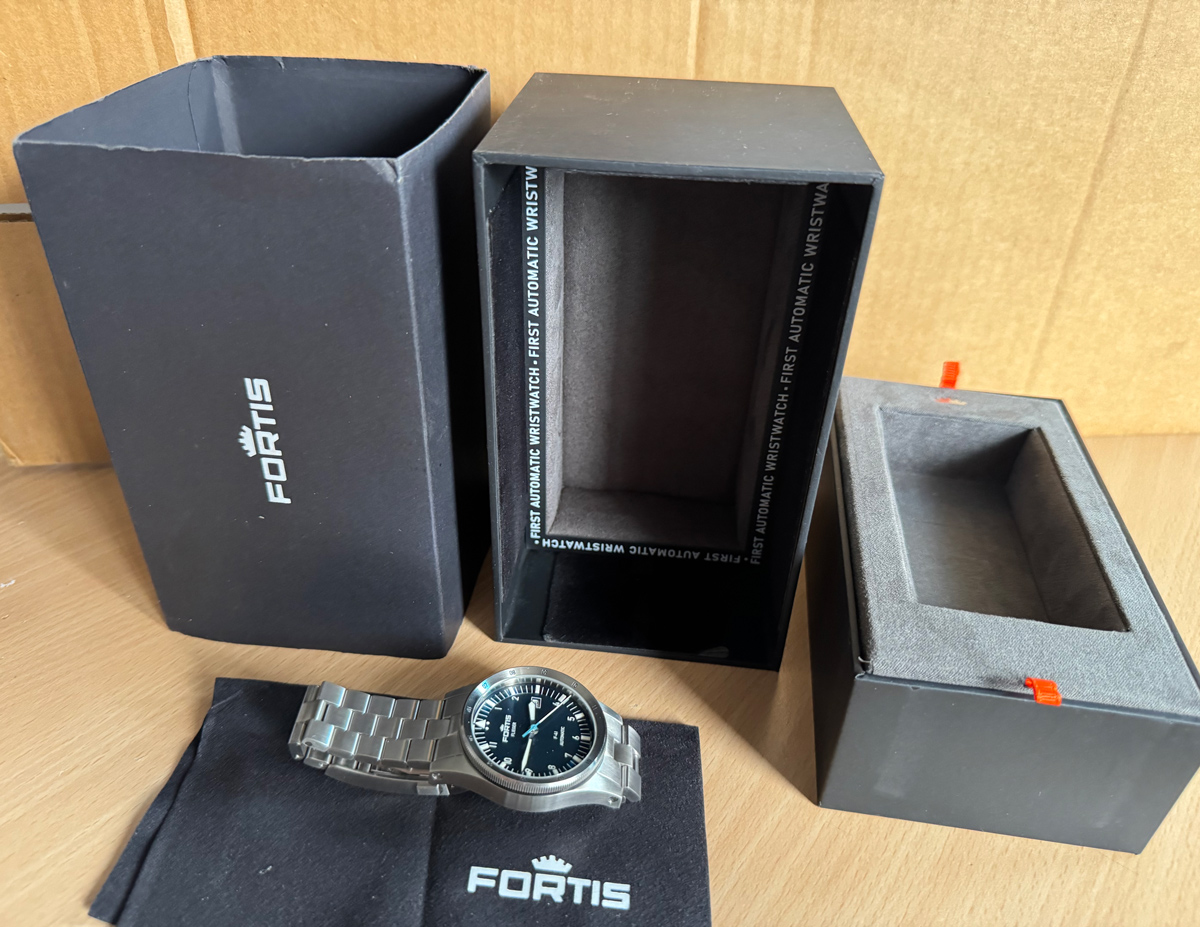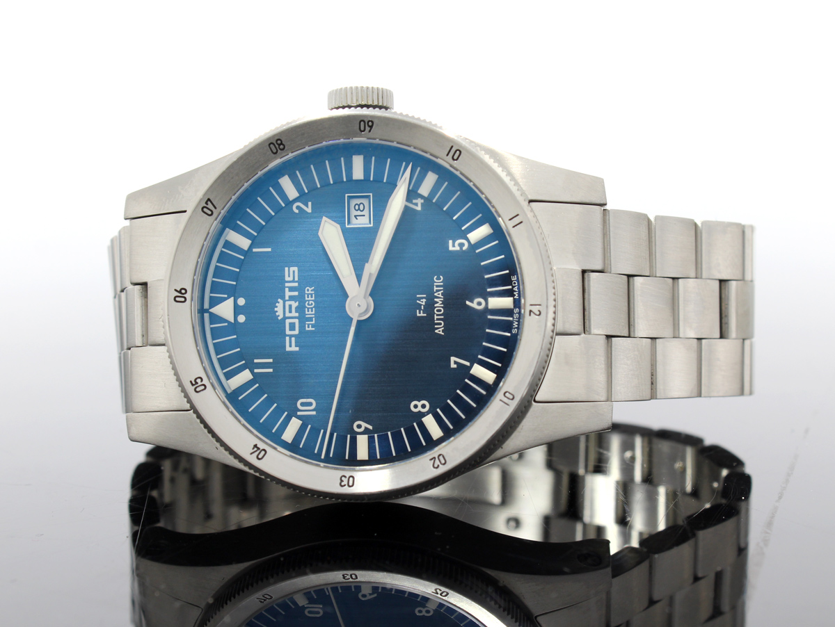 FORTIS Flieger F-41 Herrenuhr mit Edelstahlgehäuse, Datum, Schraubkrone im Full-Set.