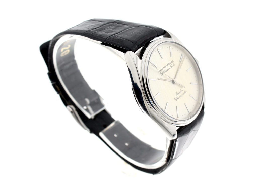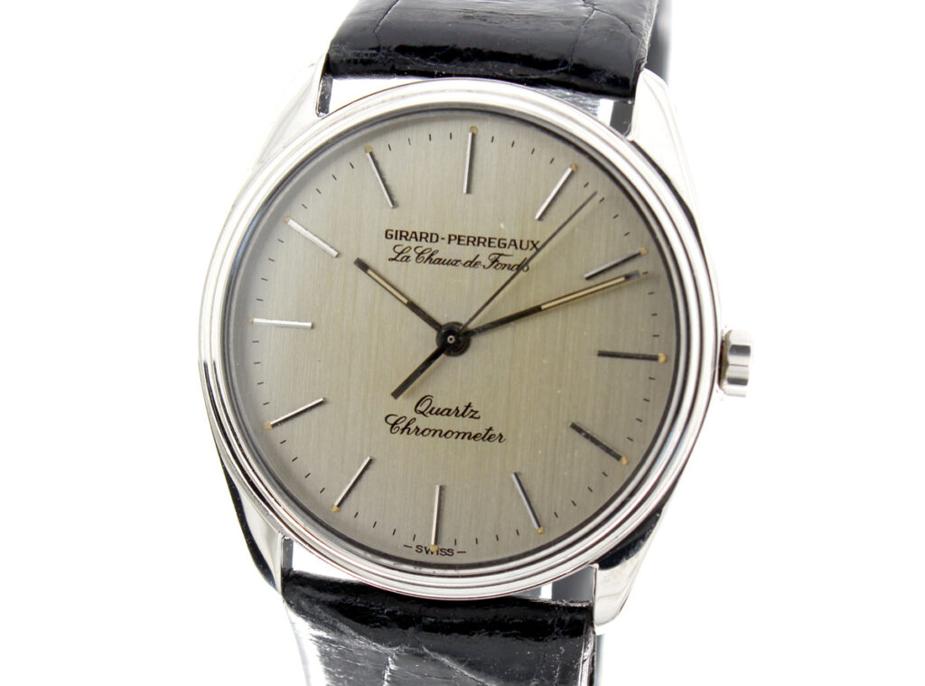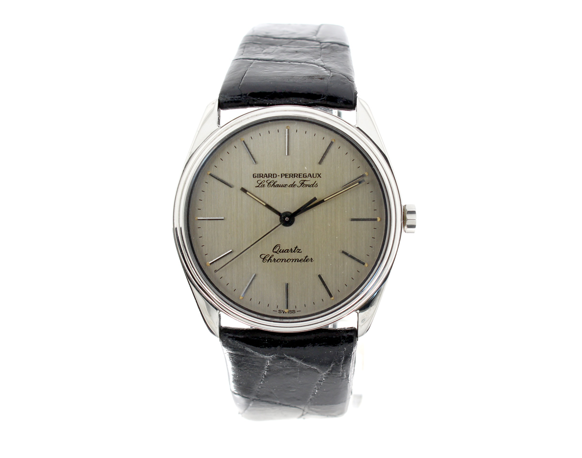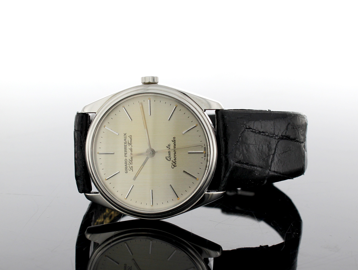 GIRARD PERREGAUX Le Chaux de fonds Herrenuhr mit Edelstahlgehäuse, Quartzwerk, verschraubter Boden und Lederband.