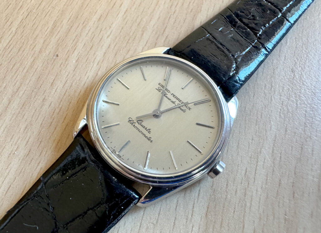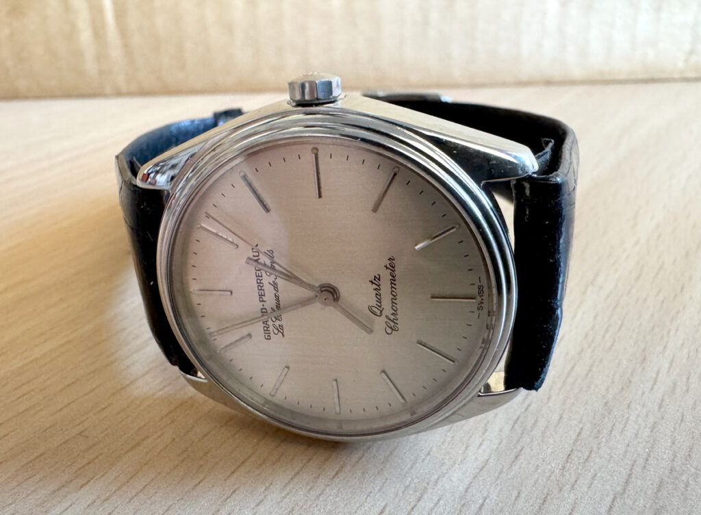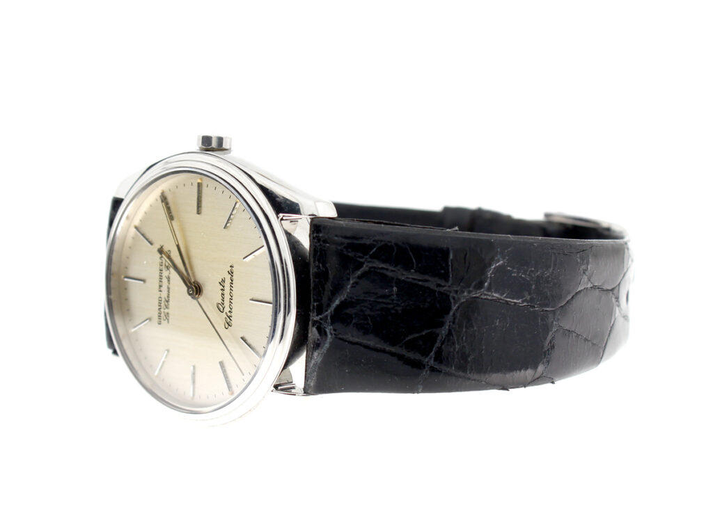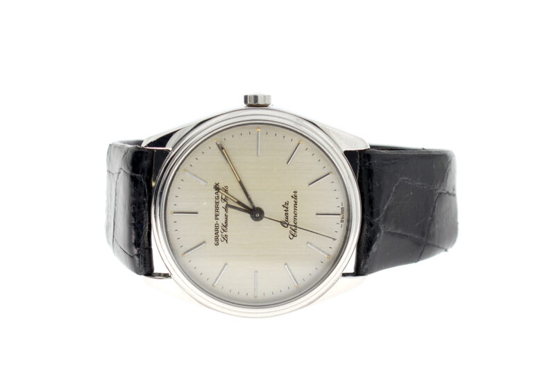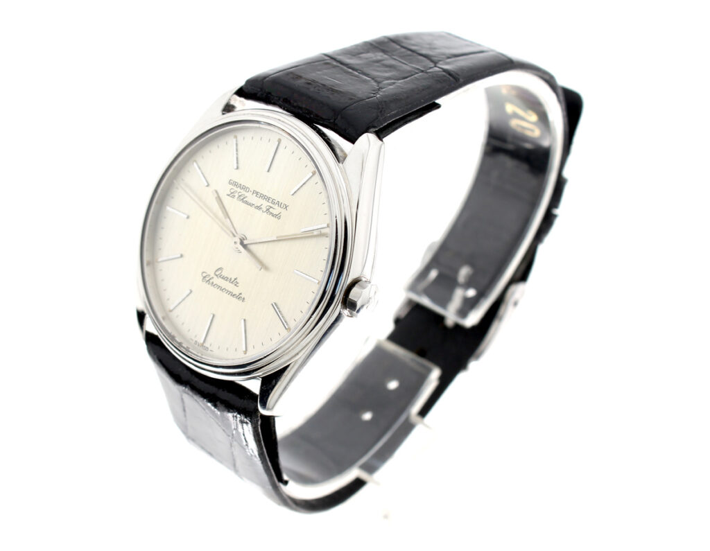 GIRARD PERREGAUX Le Chaux de fonds Herrenuhr mit Edelstahlgehäuse, Quartzwerk, verschraubter Boden und Lederband.