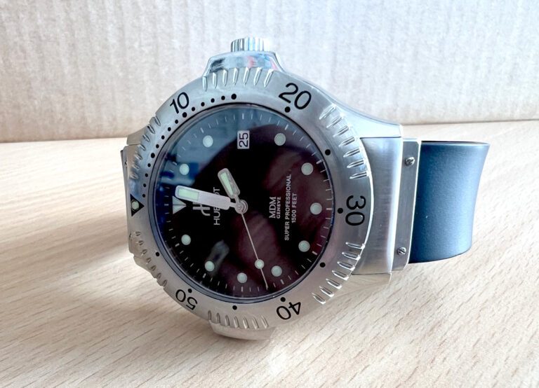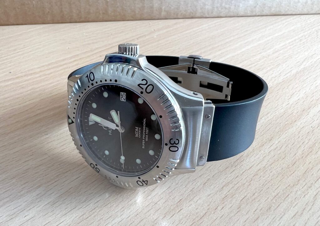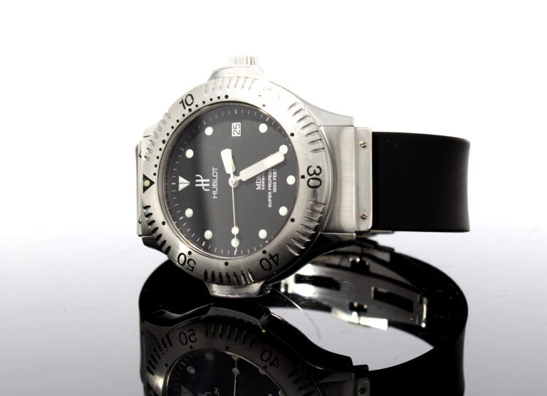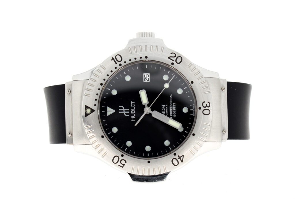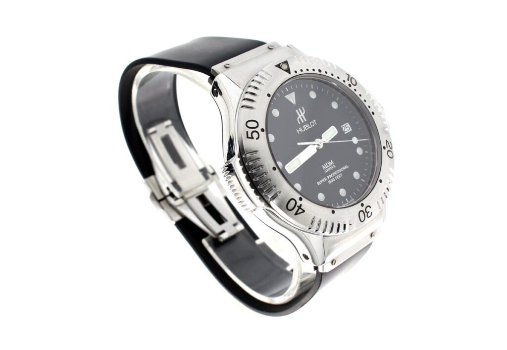 HUBLOT Super Professional MDM Geneve Herrenuhr mit Stahlgehäuse und Automatikwerk im Full-Set.