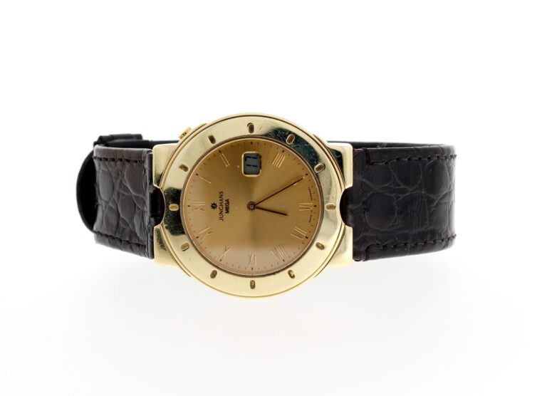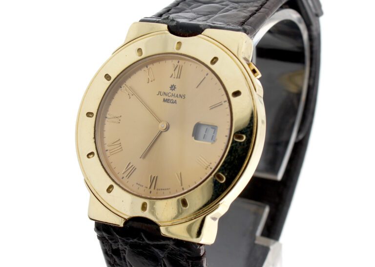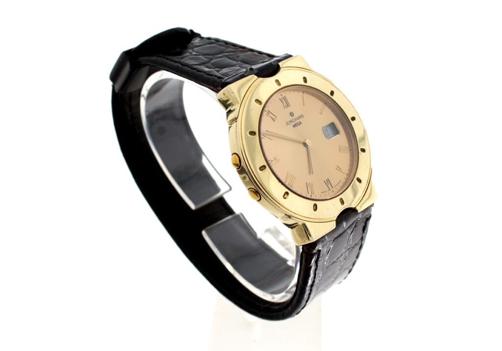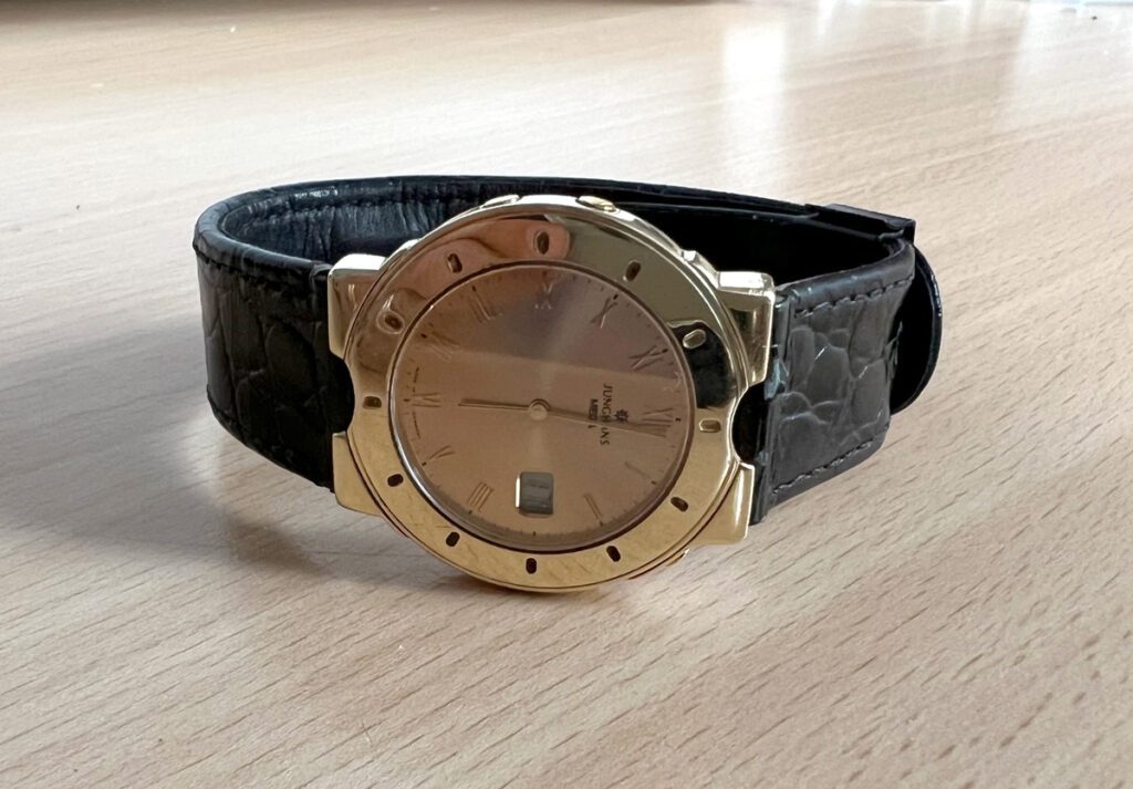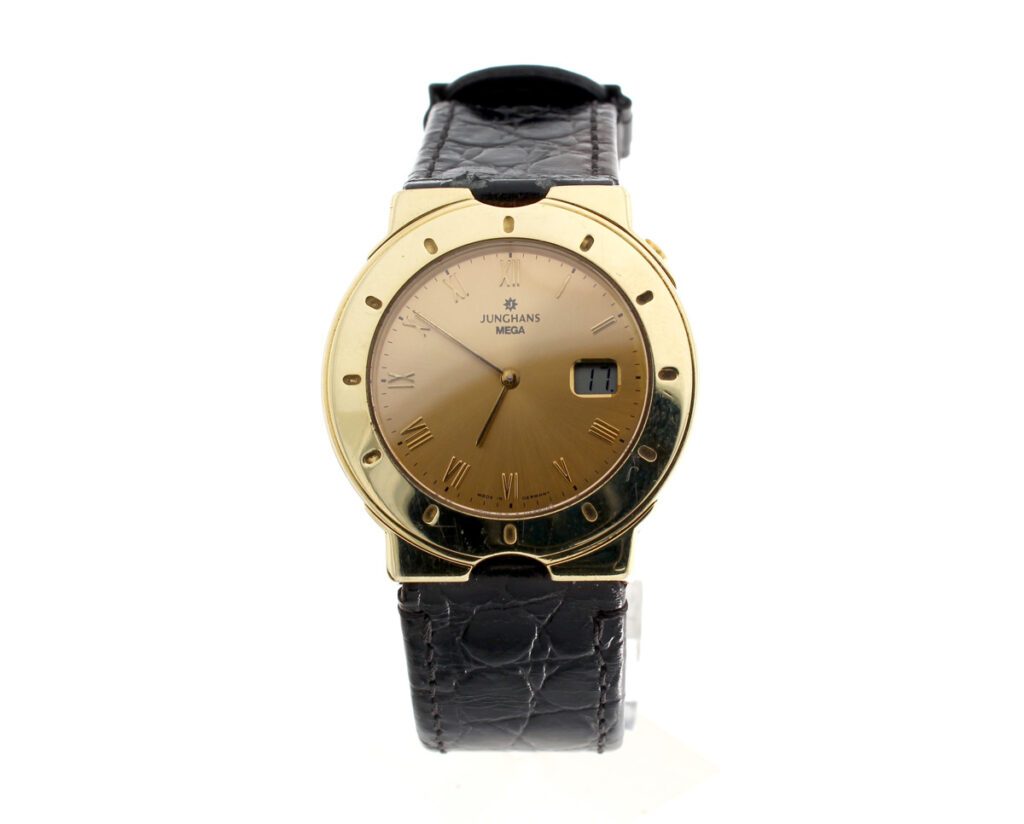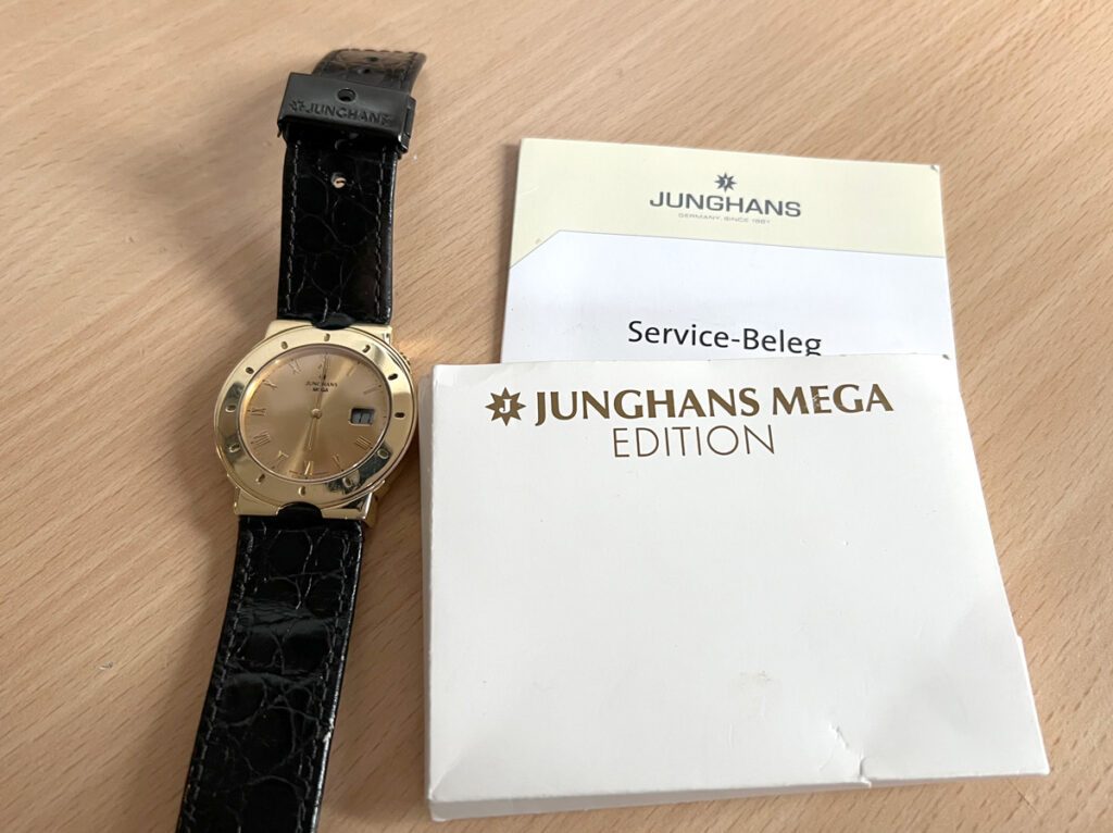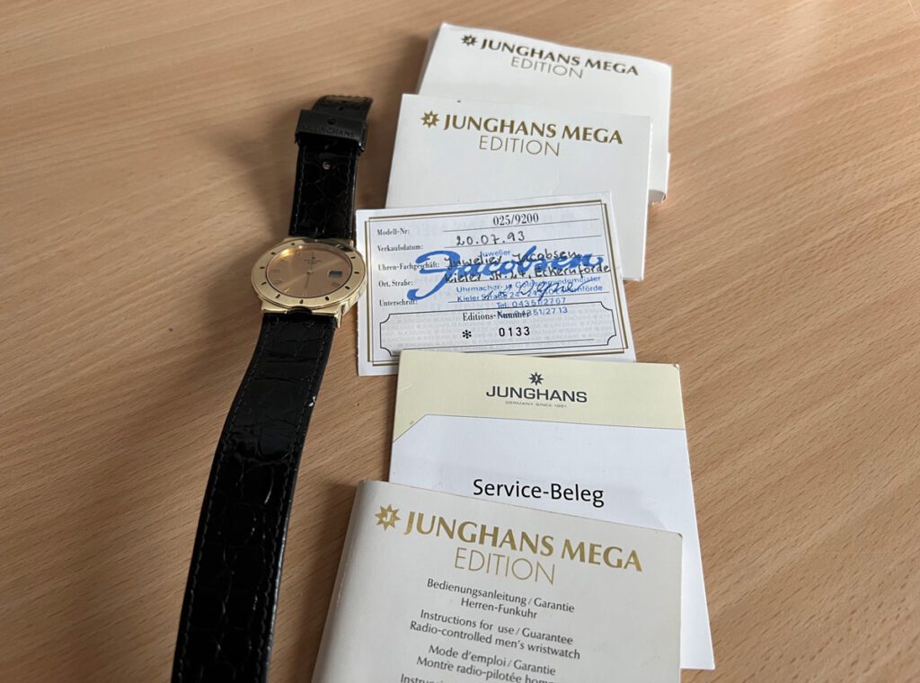 JUNGHANS Herrenfunkuhr mit .585 Goldgehäuse, Quartzwerk und Original-Papieren