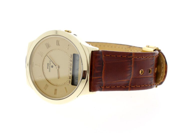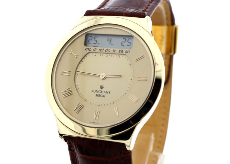JUNGHANS Mega Herrenuhr mit Funkwerk und 14-Karat-Goldgehäuse.