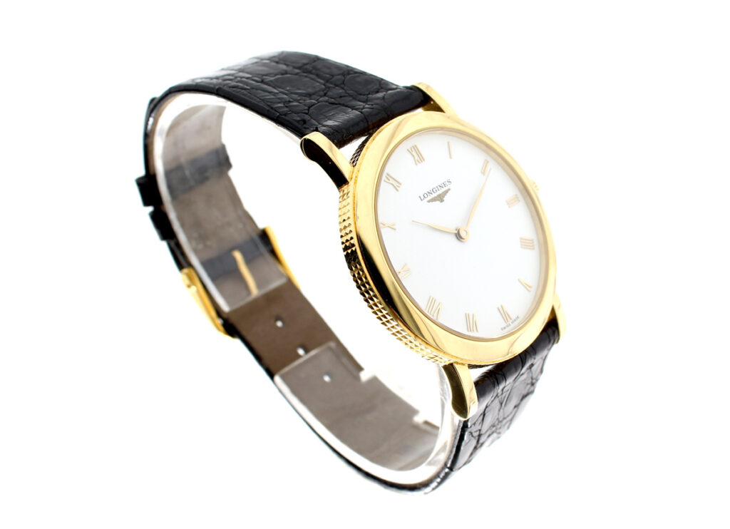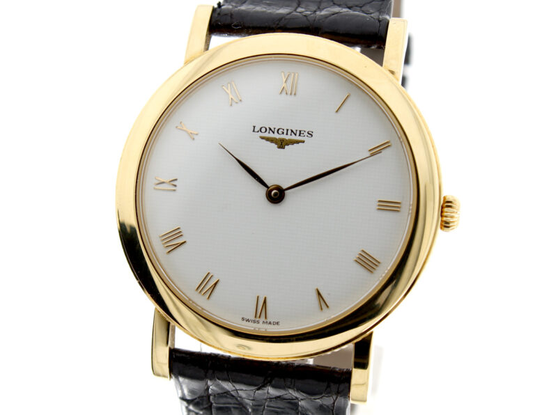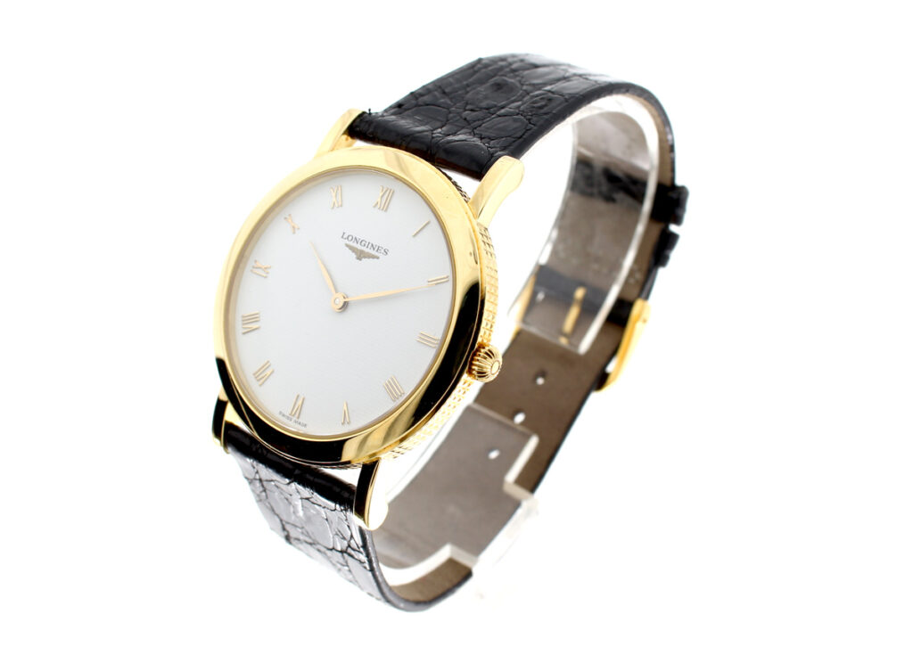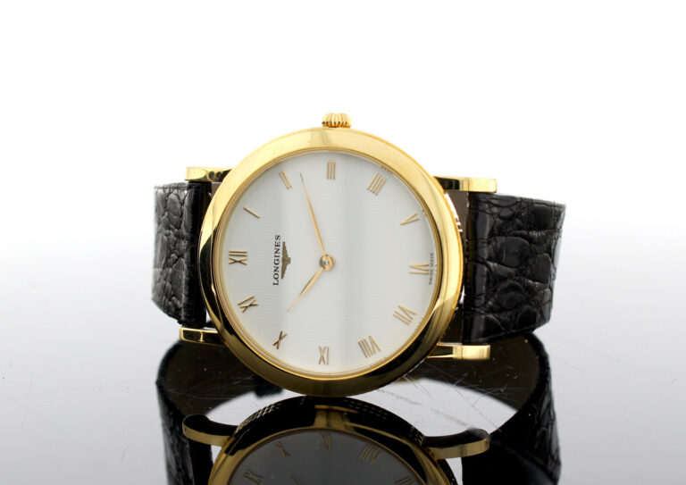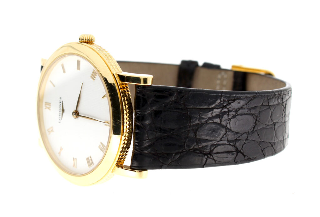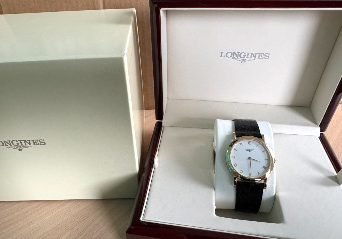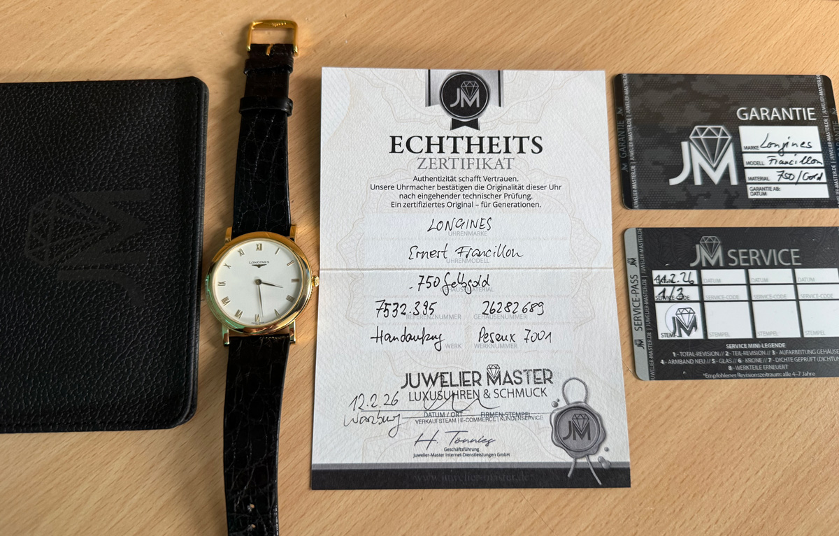 LONGINES Ernest Francillon Herrenuhr mit 18-Karat-Goldgehäuse, Handaufzugswerk und original Holzbox.