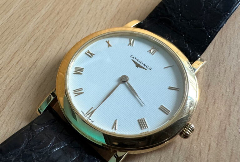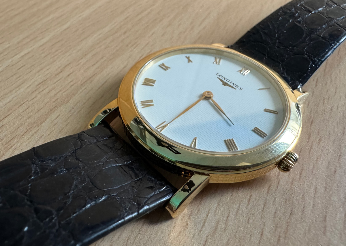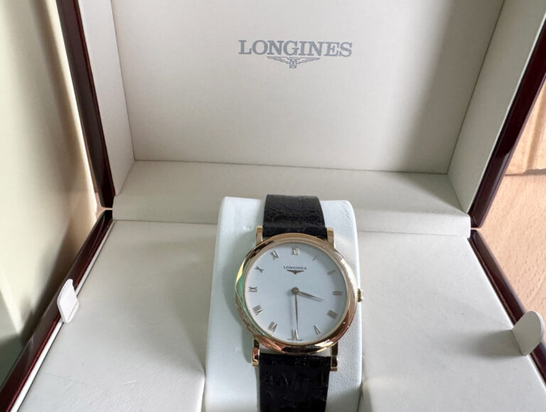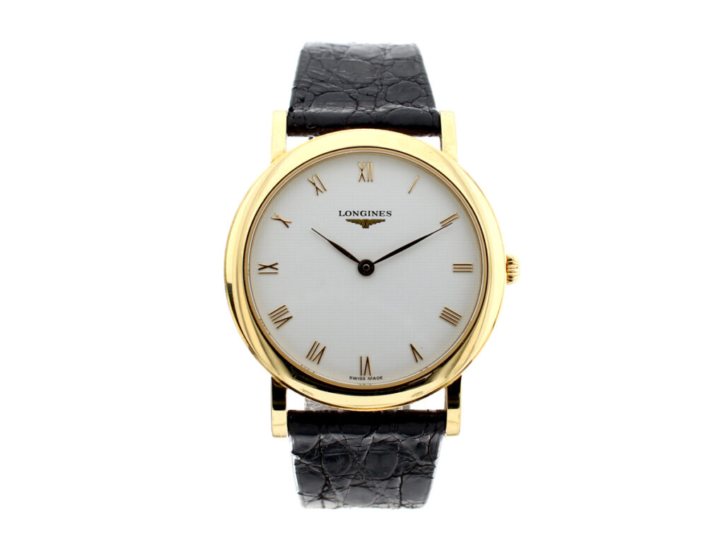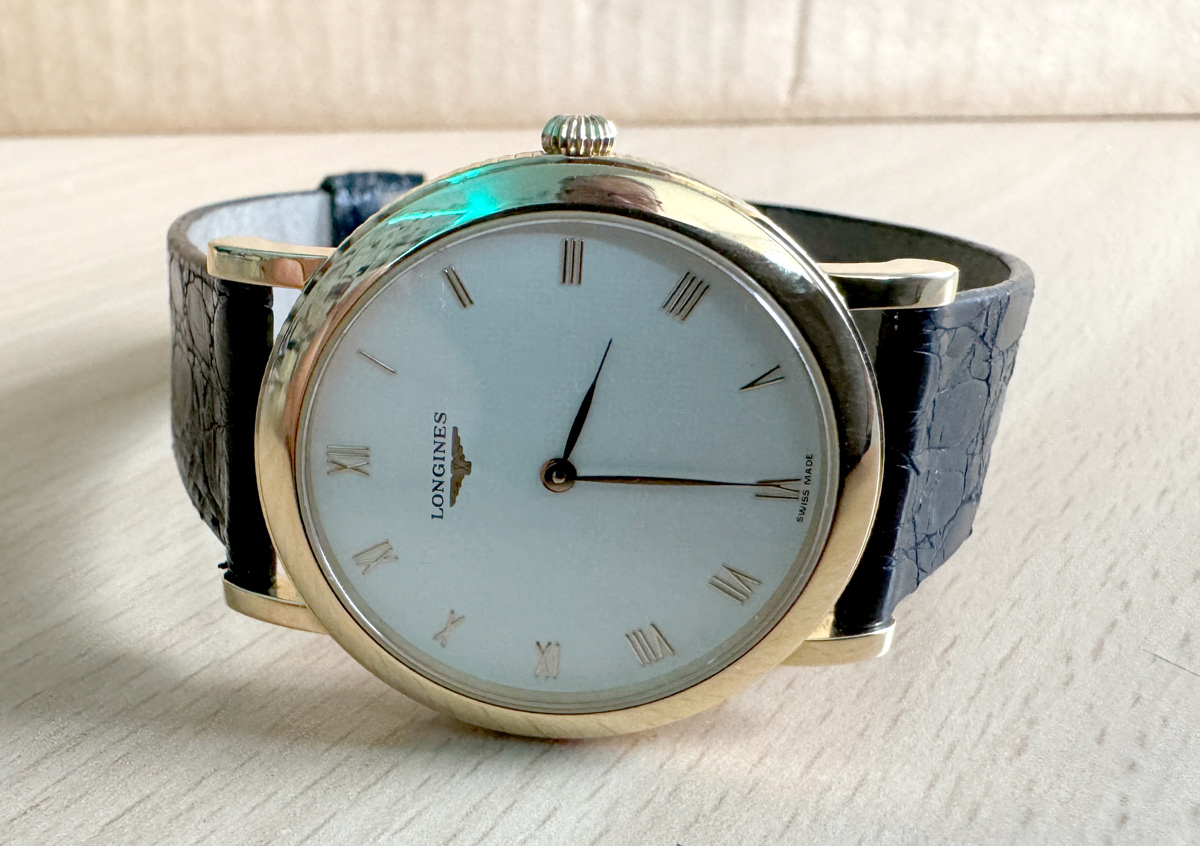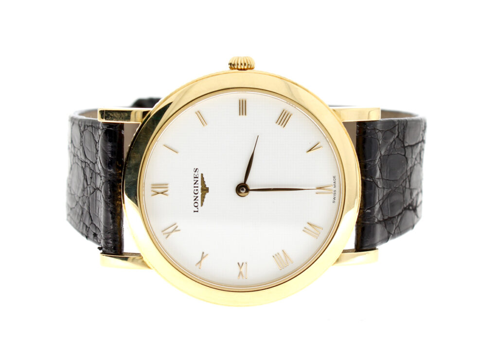 LONGINES Ernest Francillon Herrenuhr mit 18-Karat-Goldgehäuse, Handaufzugswerk und original Holzbox.