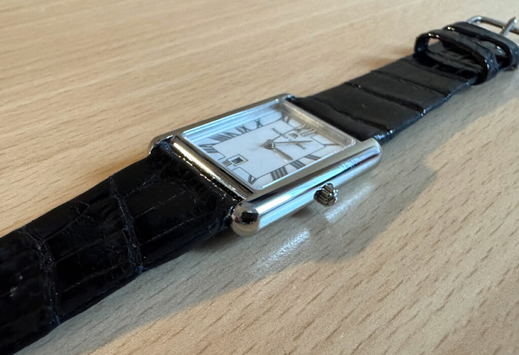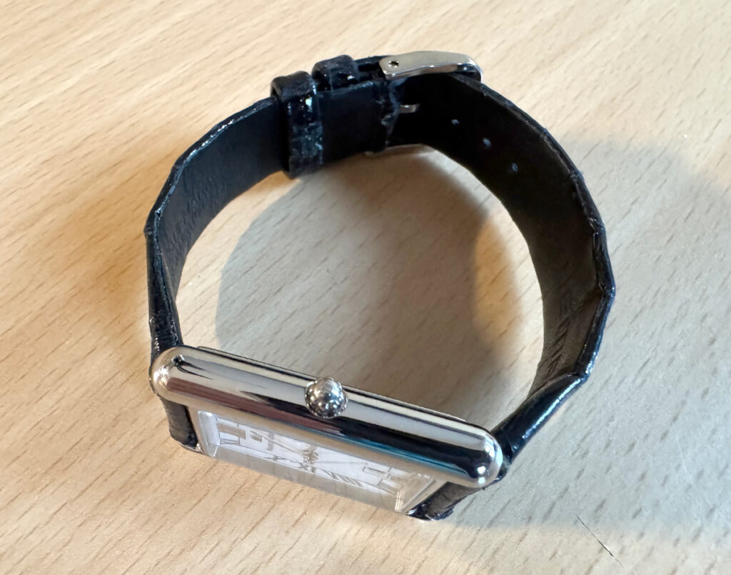 Ziffernblatt: weiß, analoge Anzeige, römische Zahlen
