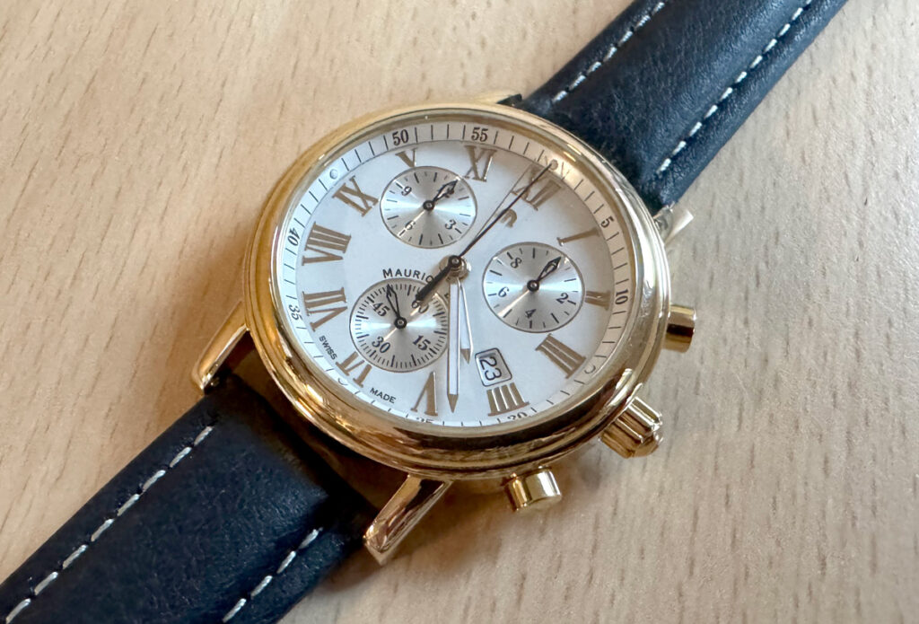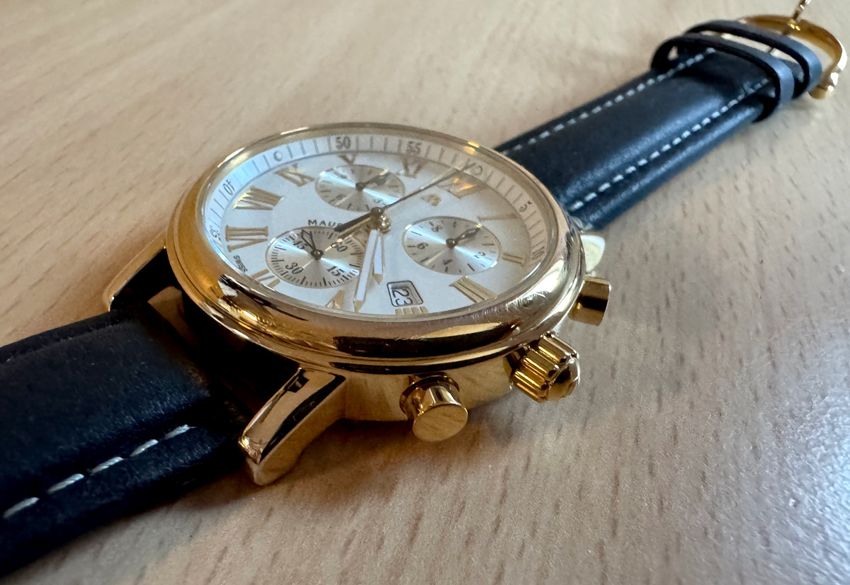 MAURICE LACROIX Herrenuhr mit Plaquegehäuse, ETA-Quartzwerk, Chronograph mit Saphirglas.