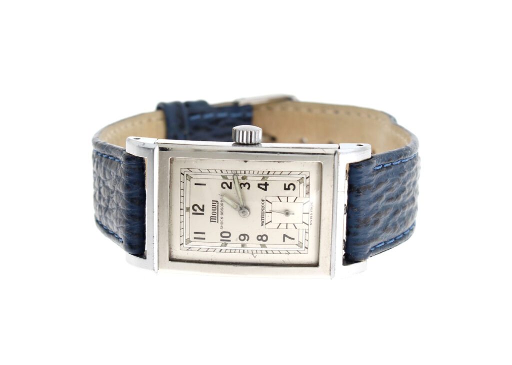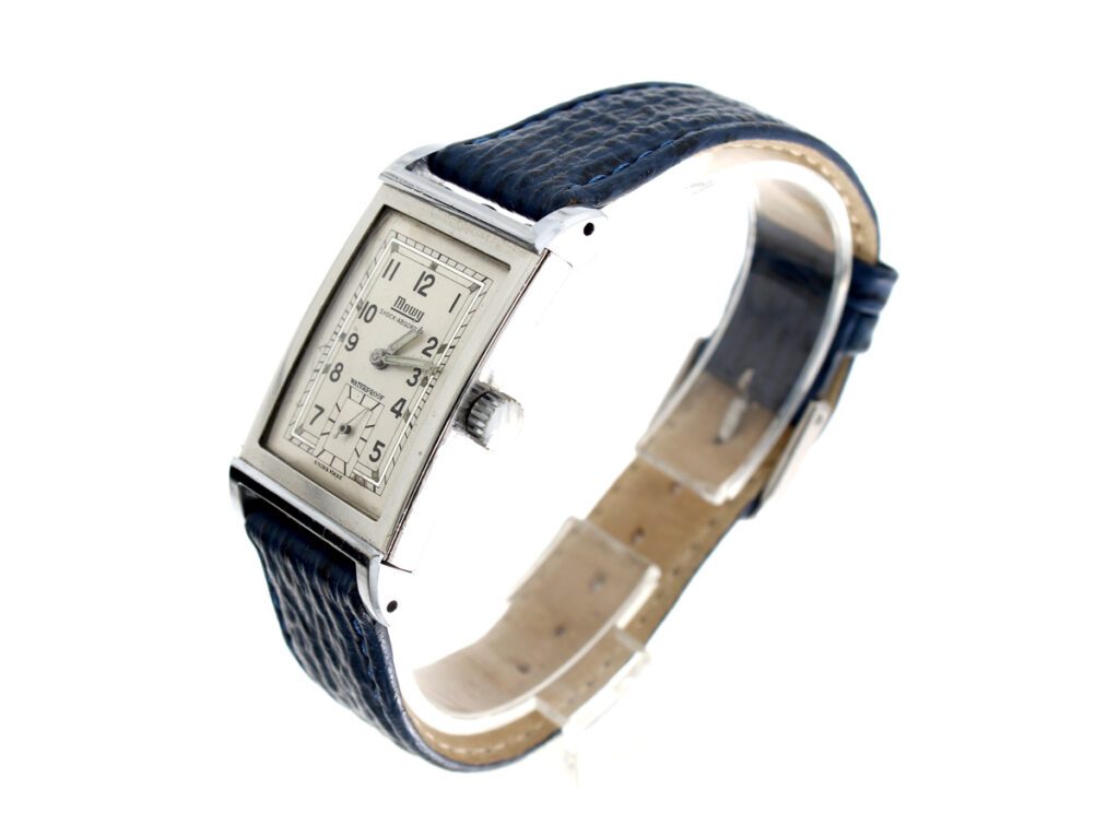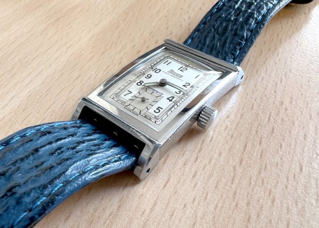 MOWY Vintage-Herrenuhr in Edelstahl, Lederband und Handaufzug