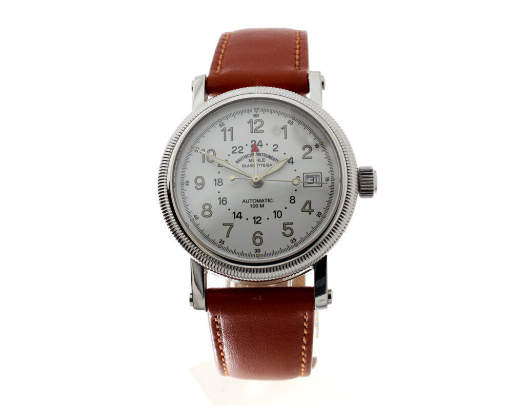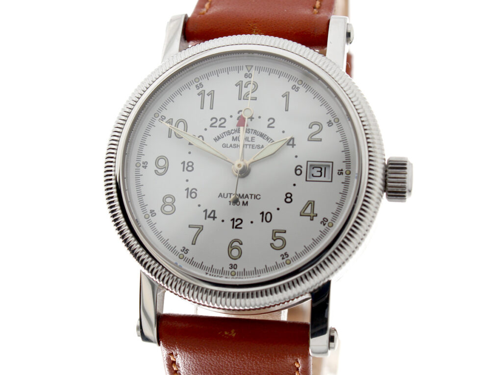 MÜHLE GLASHÜTTE Herrenuhr mit Edelstahlgehäuse, Automatikwerk, Duo-Time und Original-Faltschließe.
