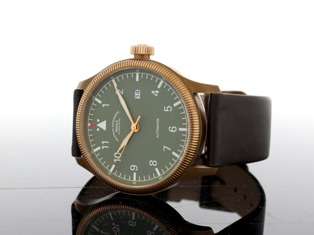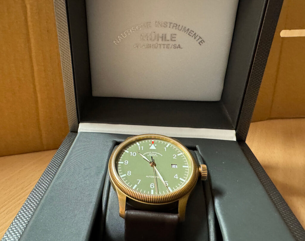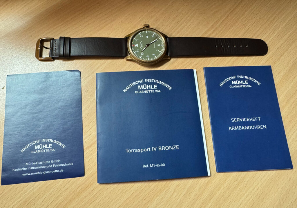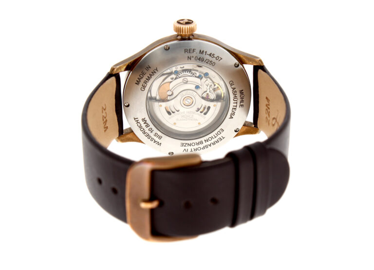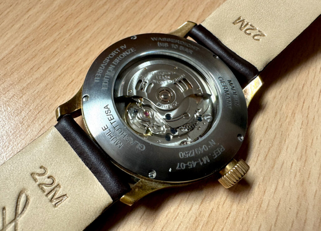 MÜHLE GLASHÜTTE Terrasport IV Herrenuhr mit Bronzegehäuse, Automatikwerk, Lederband, Glasboden im Full-Set. Limität 049/250