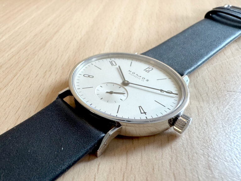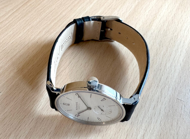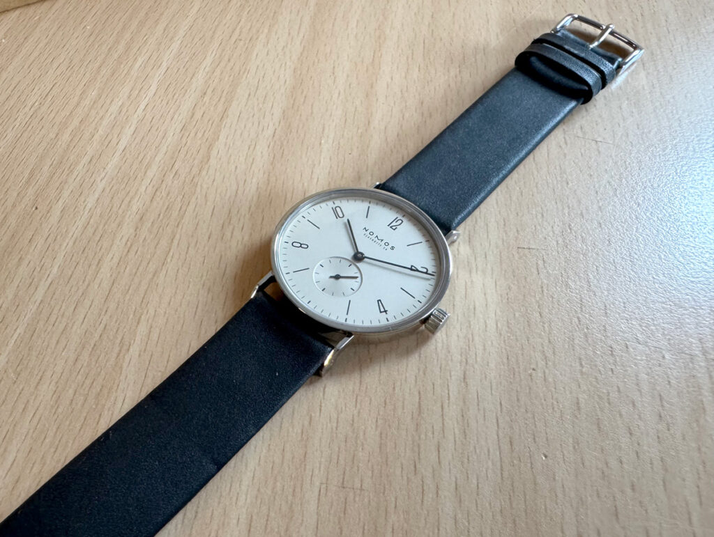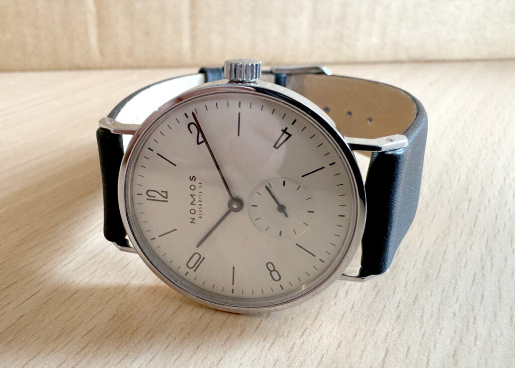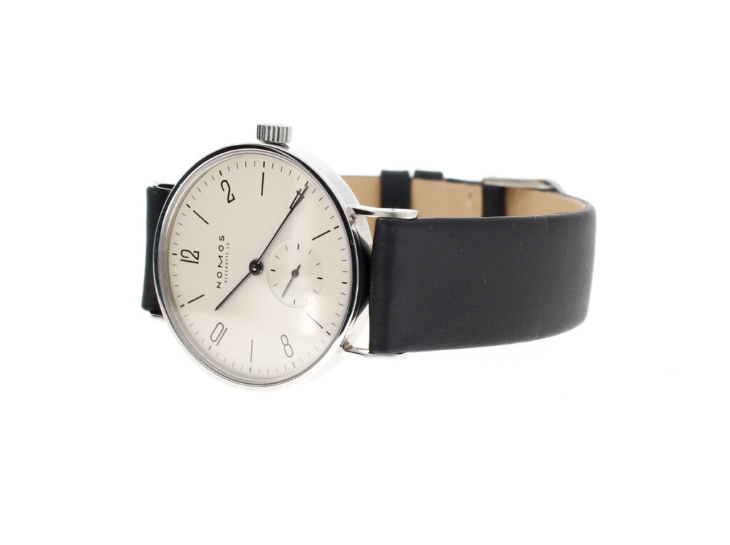 NOMOS Tangente Herrenuhr mit Edelstahlgehäuse, Handaufzugswerk, kleiner Sekunde, Original-Box + Papiere.