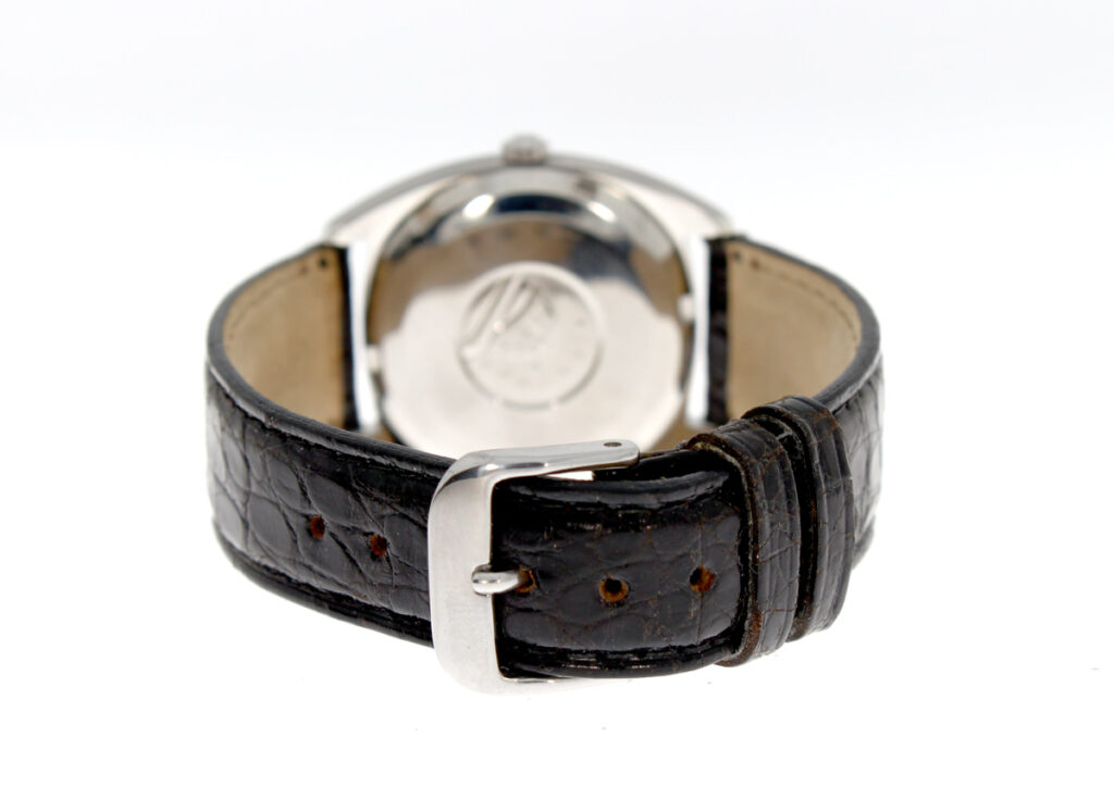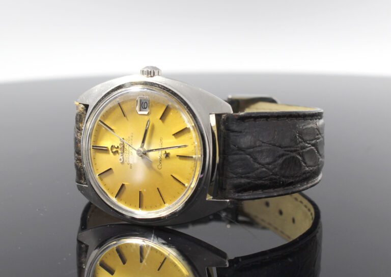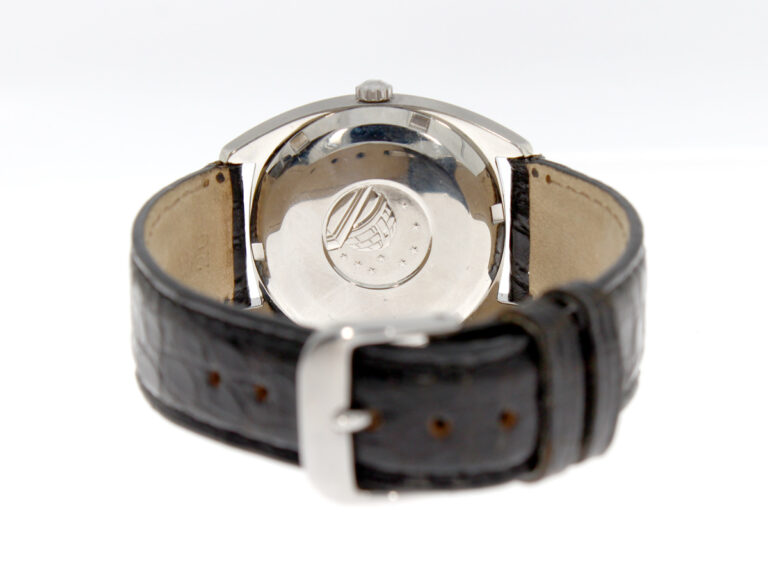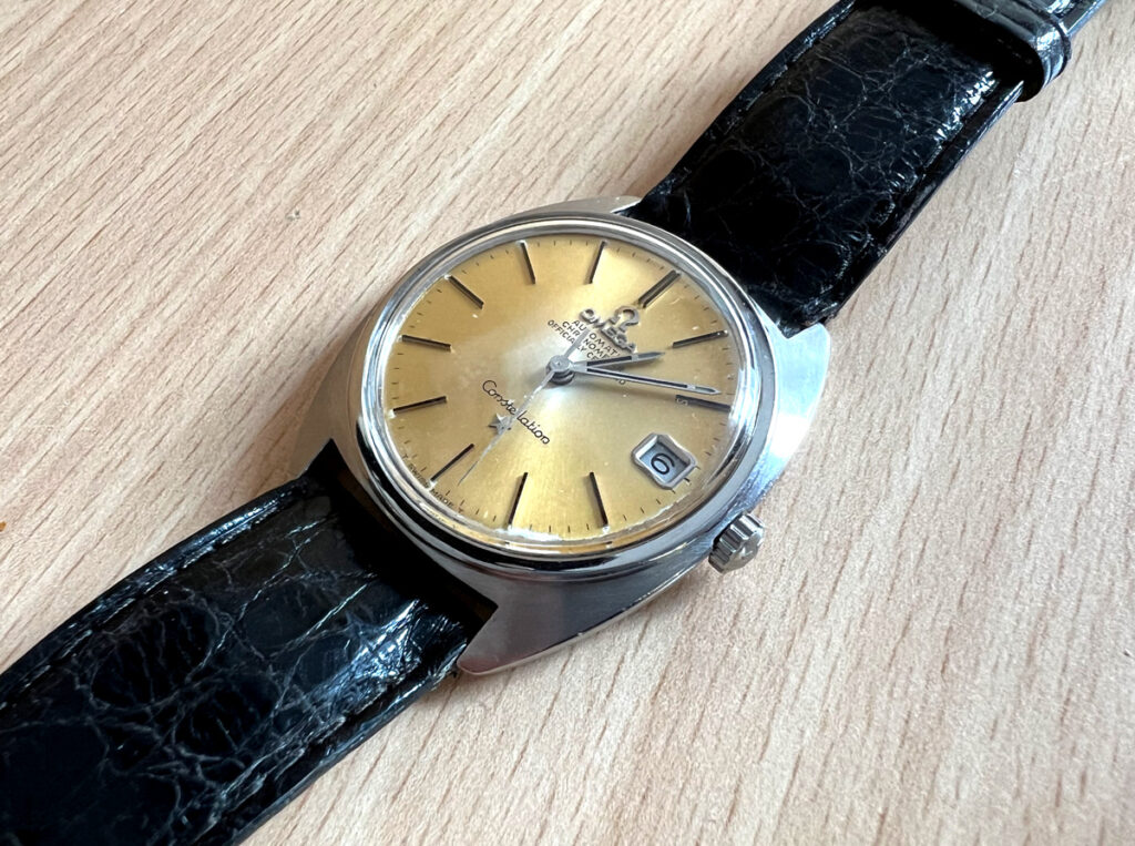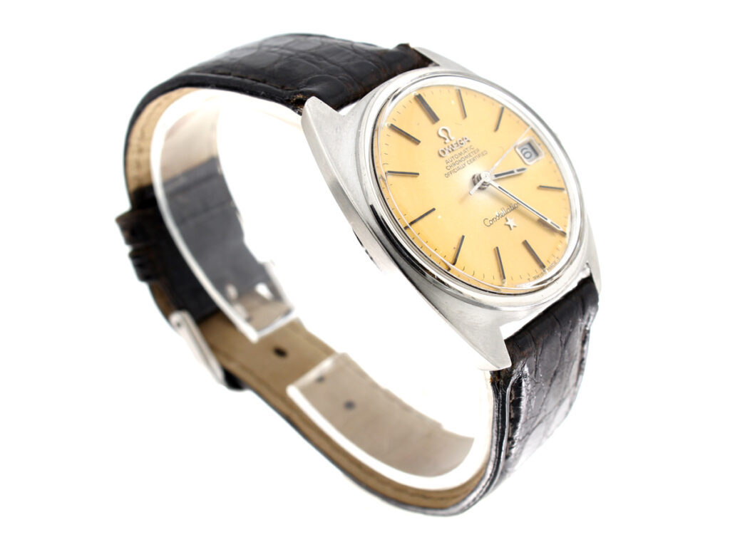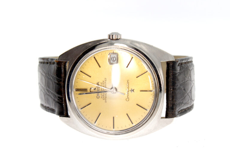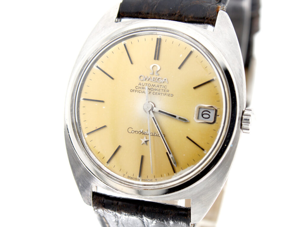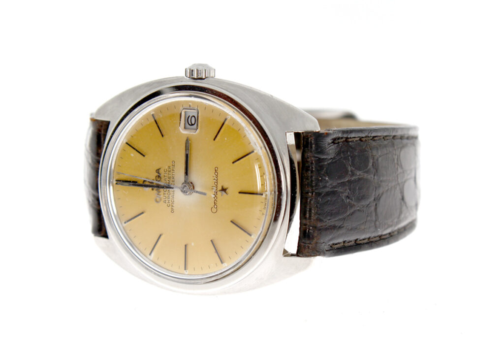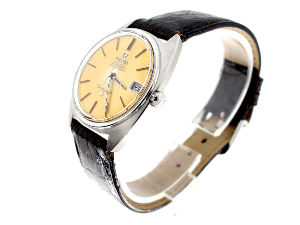 OMEGA Constellation Herren-Vintageuhr in Stahlgehäuse, Lederband, Datum und Sekunde.