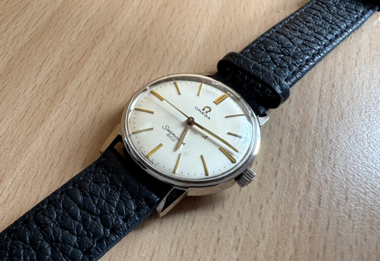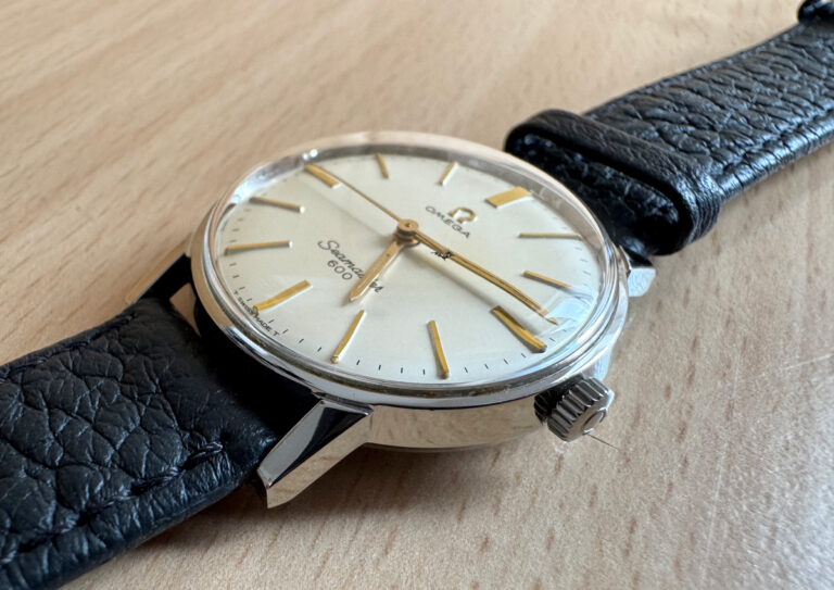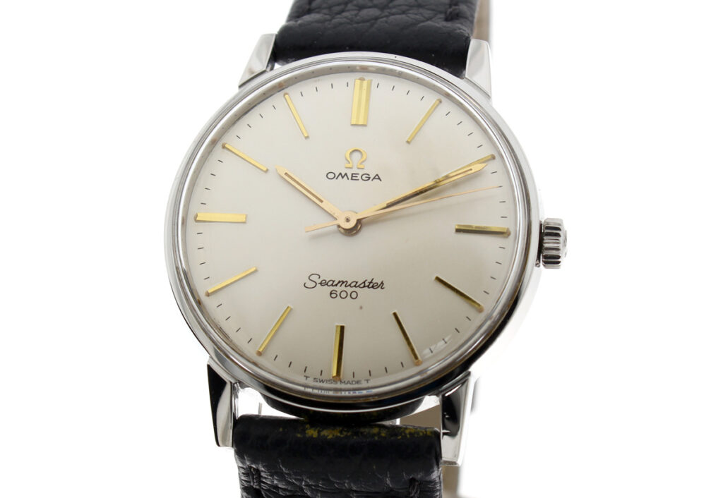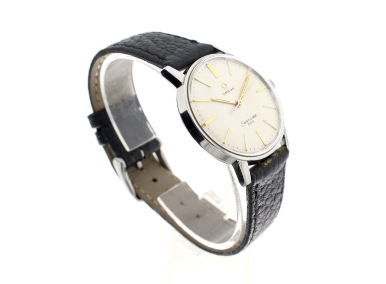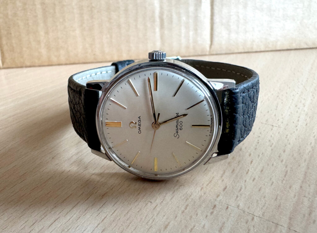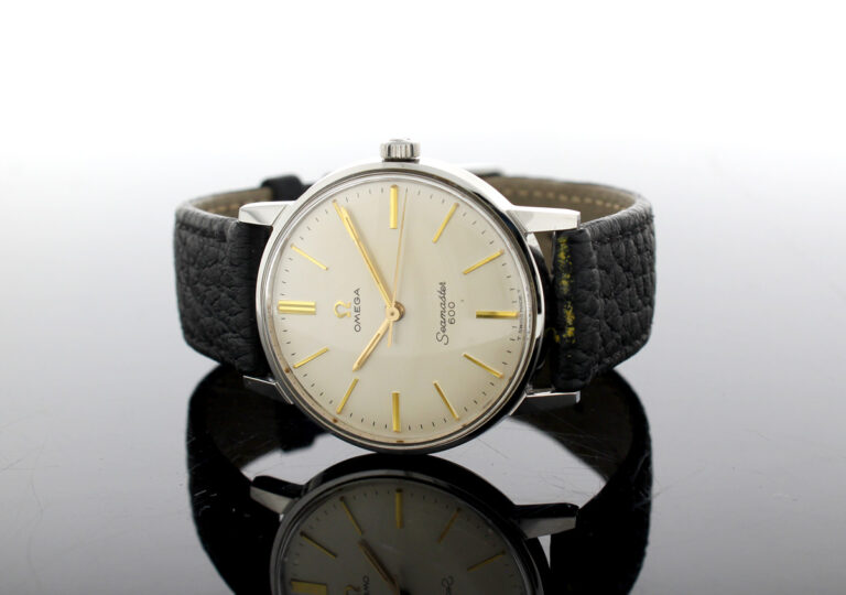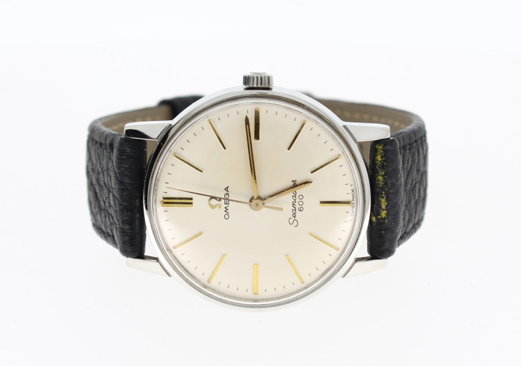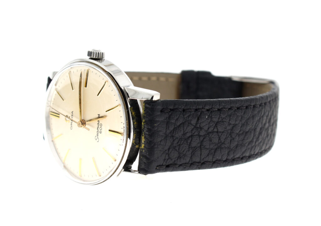 OMEGA Seamaster 600 Herrenuhr mit Edelstahlgehäuse, Handaufzugswerk, Lederband mit Dornschließe.