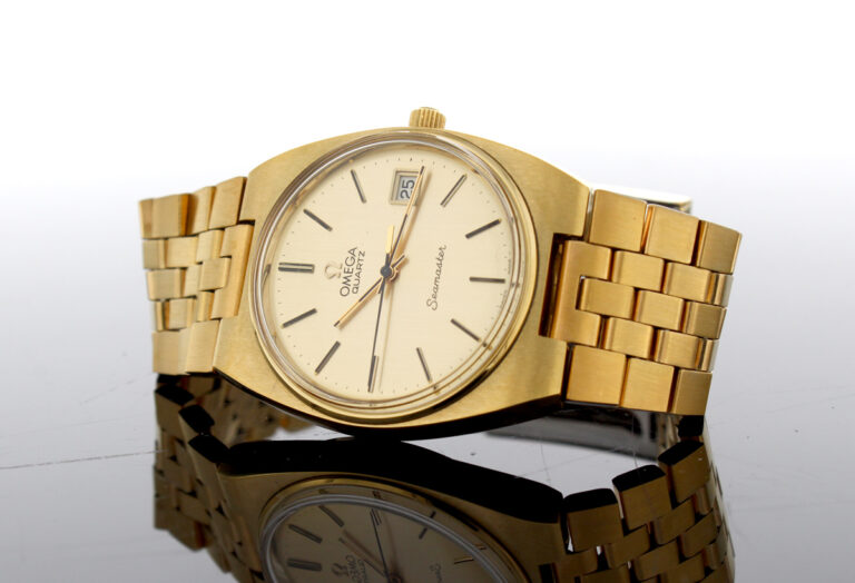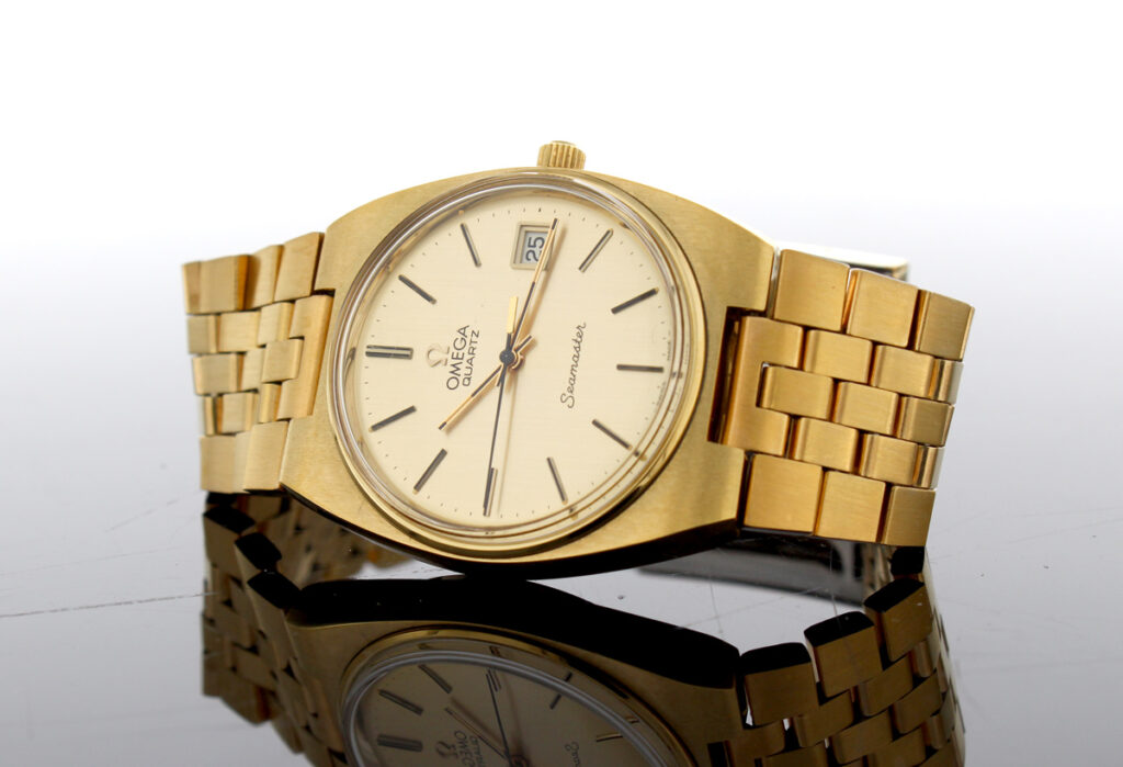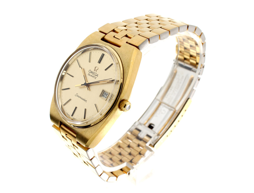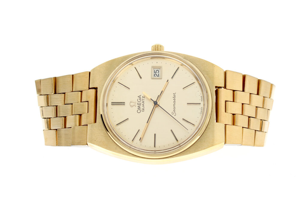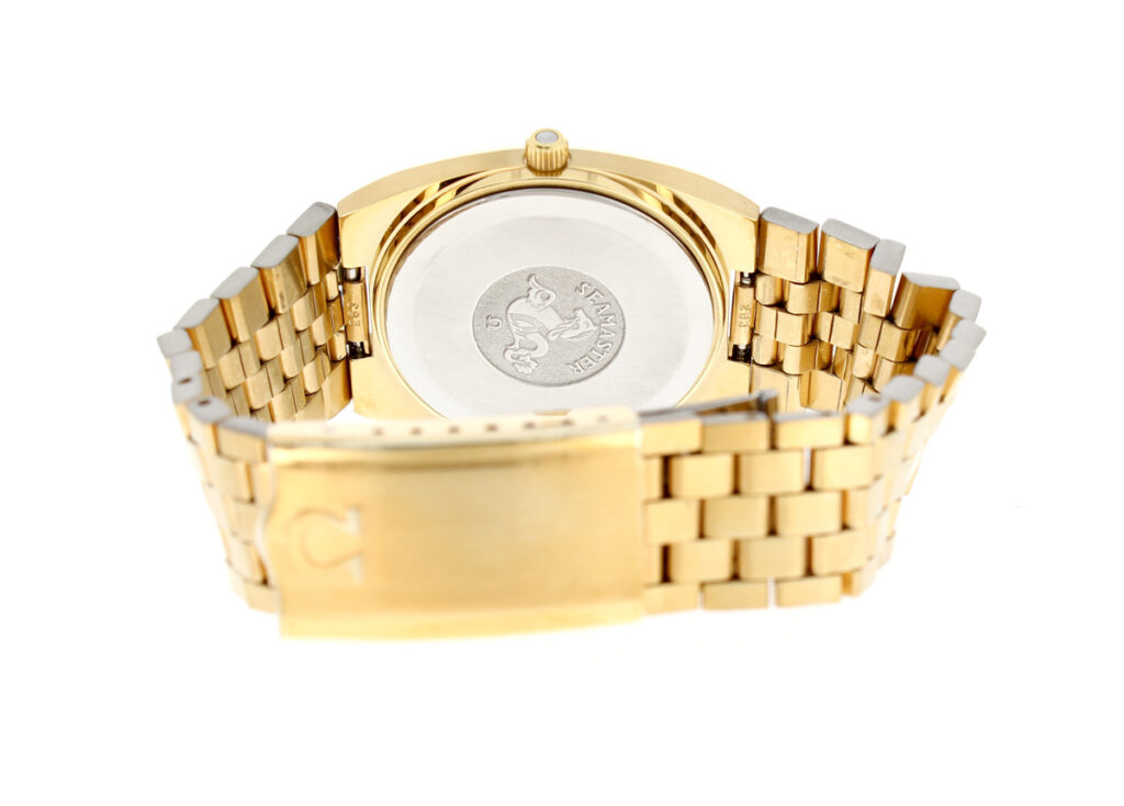 OMEGA Seamaster Herren-Armbanduhr mit Plaque-Gehäuse, Cal. 1342, Zentralsekunde und Stahlboden.