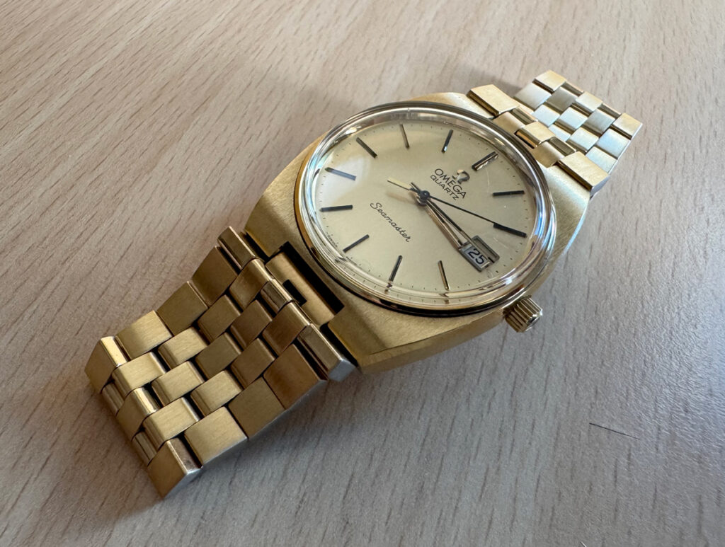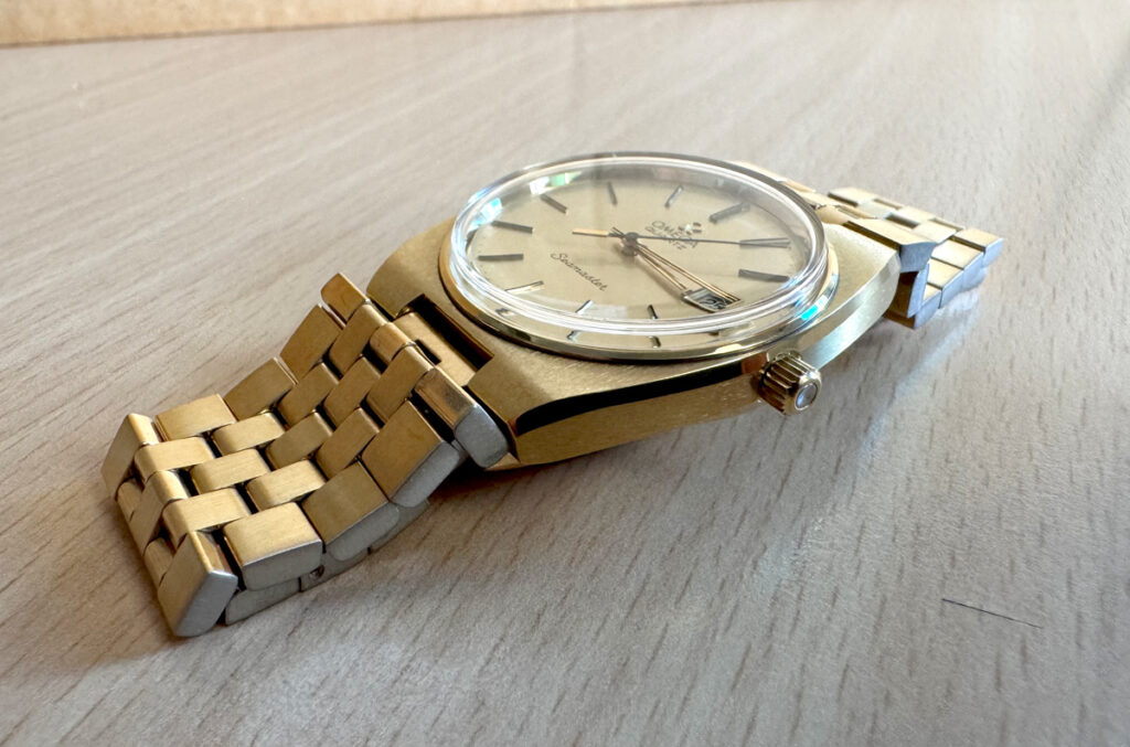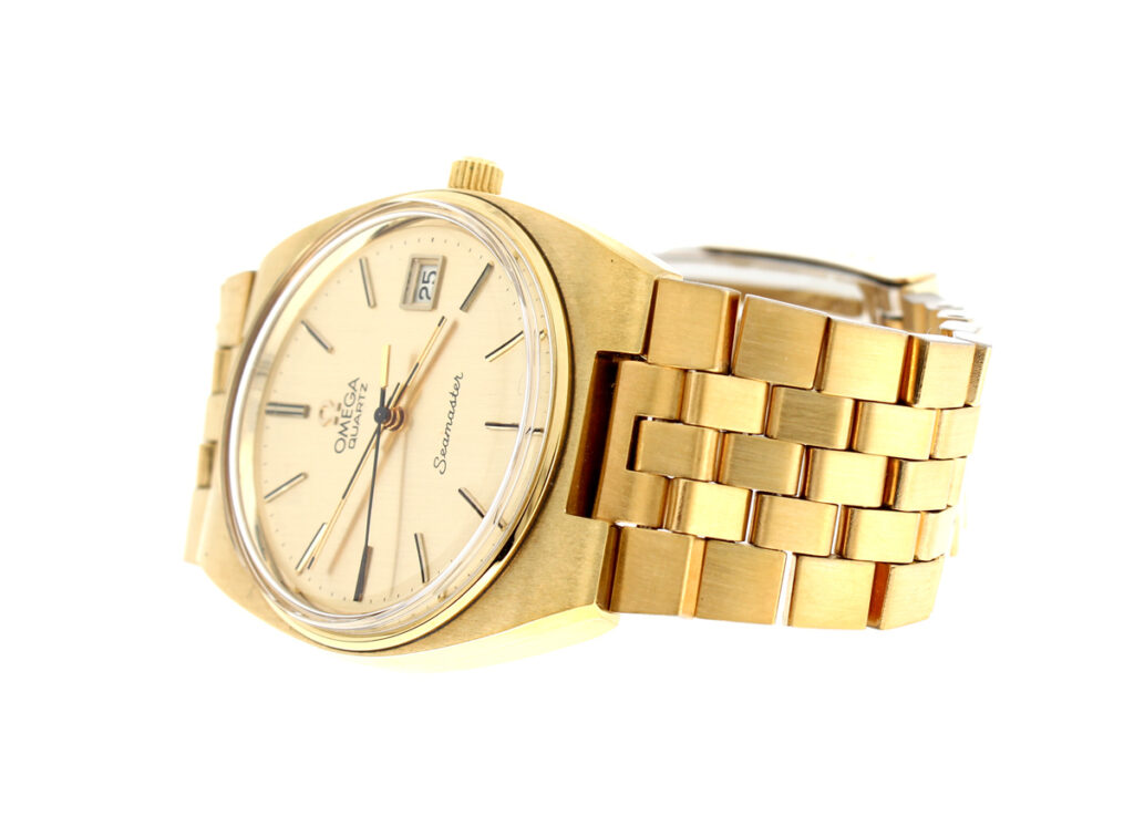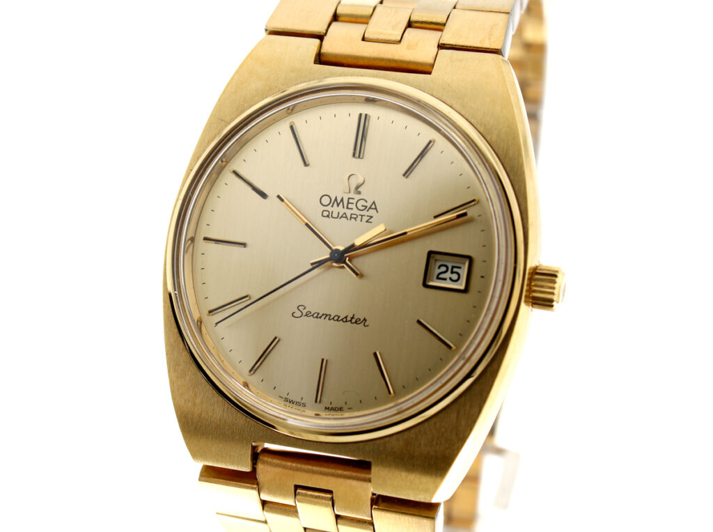 OMEGA Seamaster Herren-Armbanduhr mit Plaque-Gehäuse, Cal. 1342, Zentralsekunde und Stahlboden.