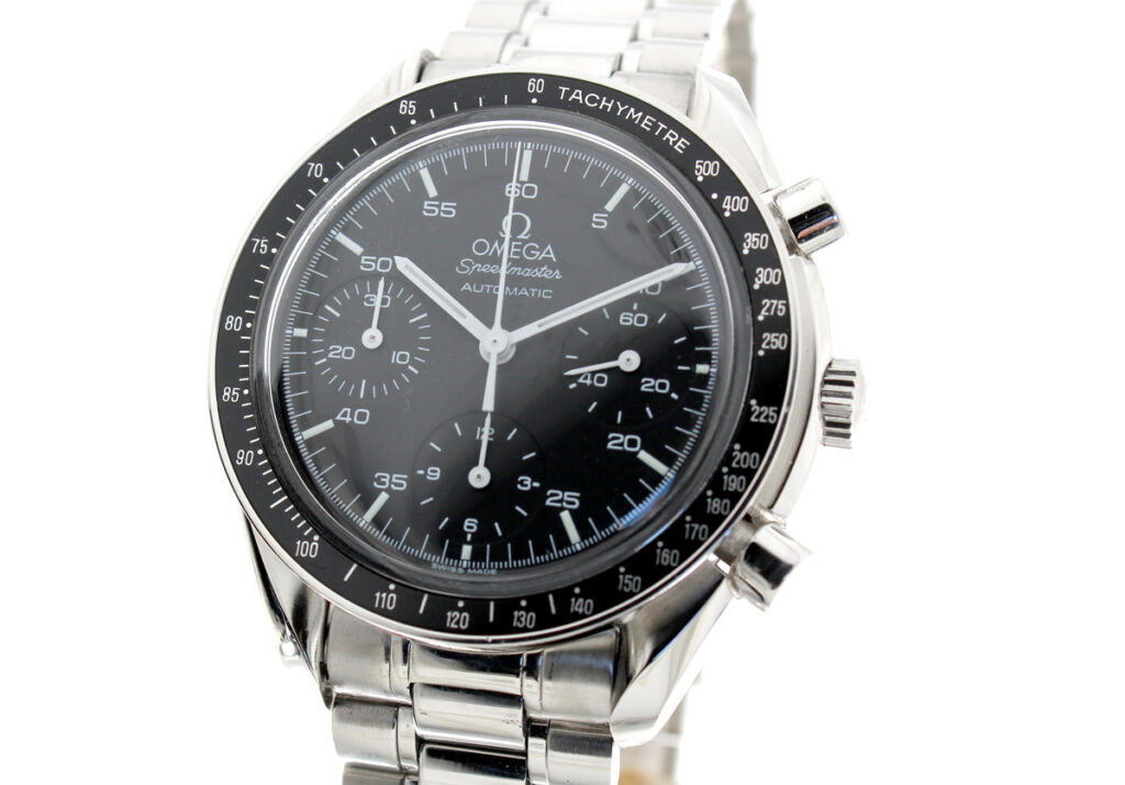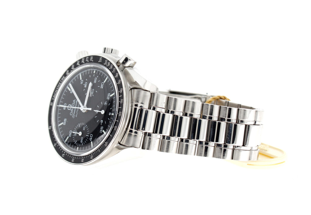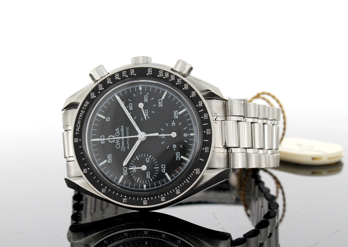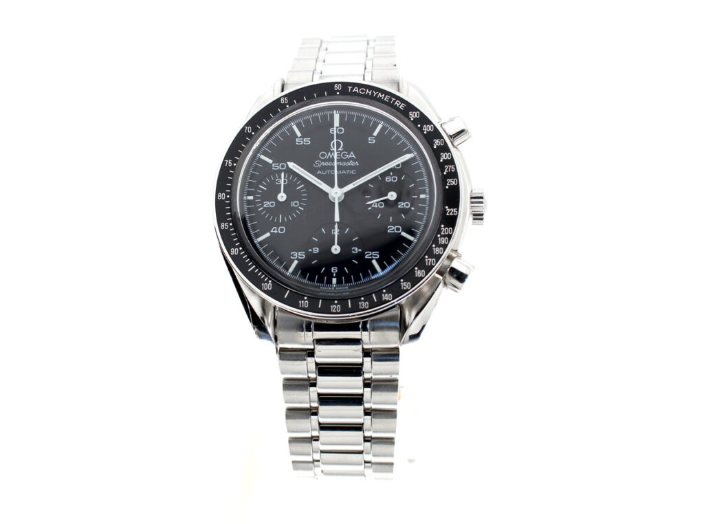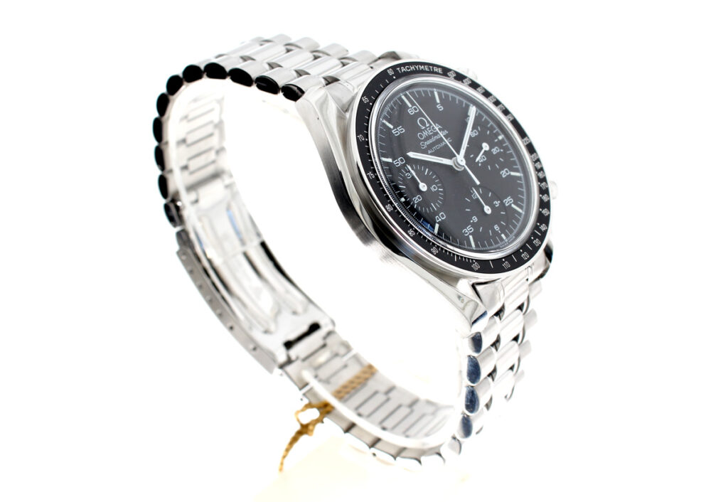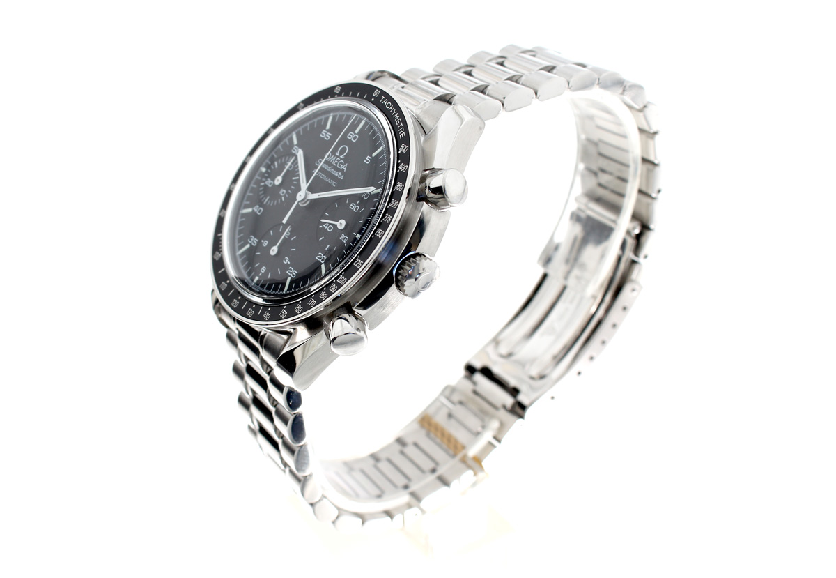 OMEGA Speedmaster (Reduced) Herren-Armbanduhr mit Edelstahlgehäuse, Automatikwerk, Stahlband mit Original Box.