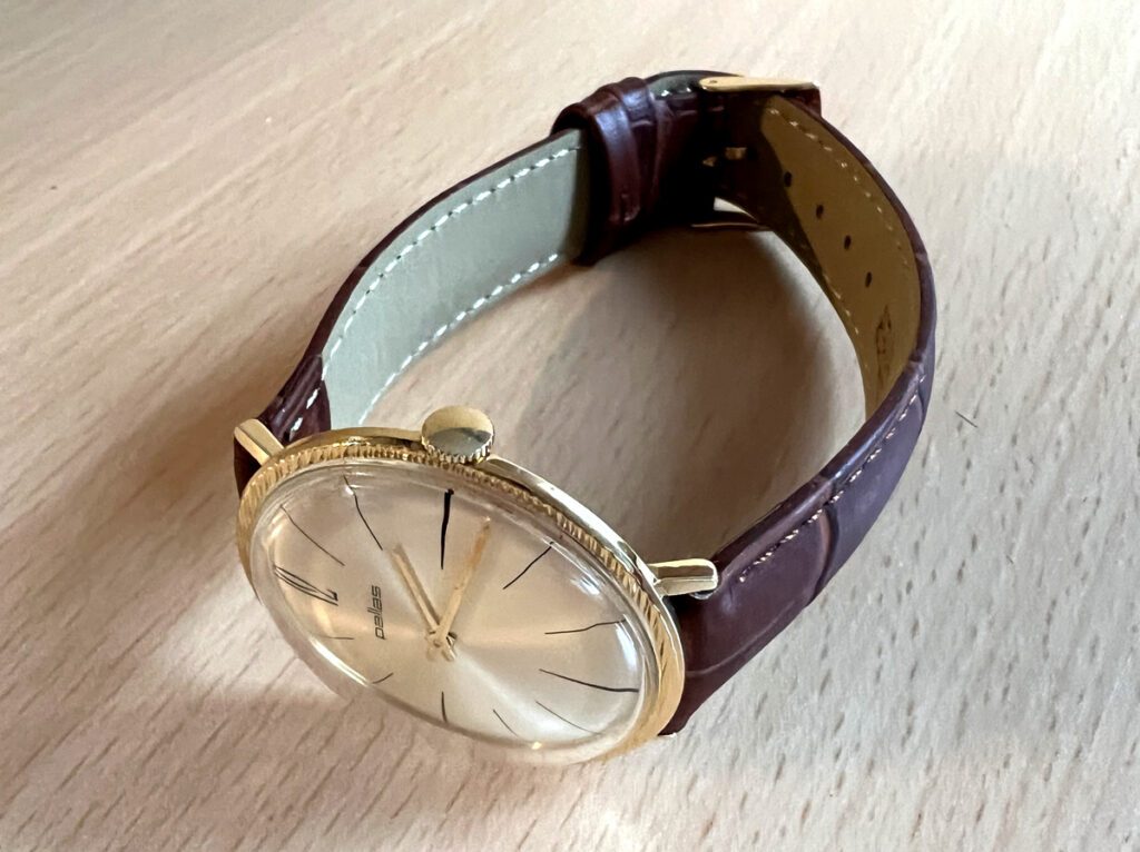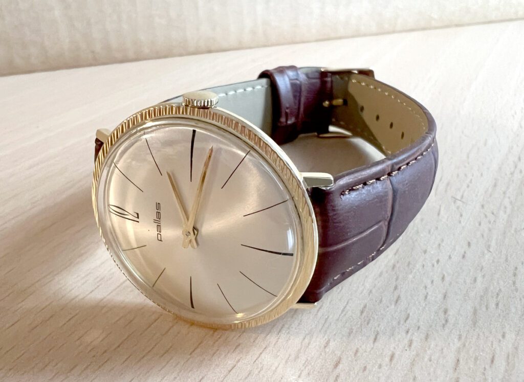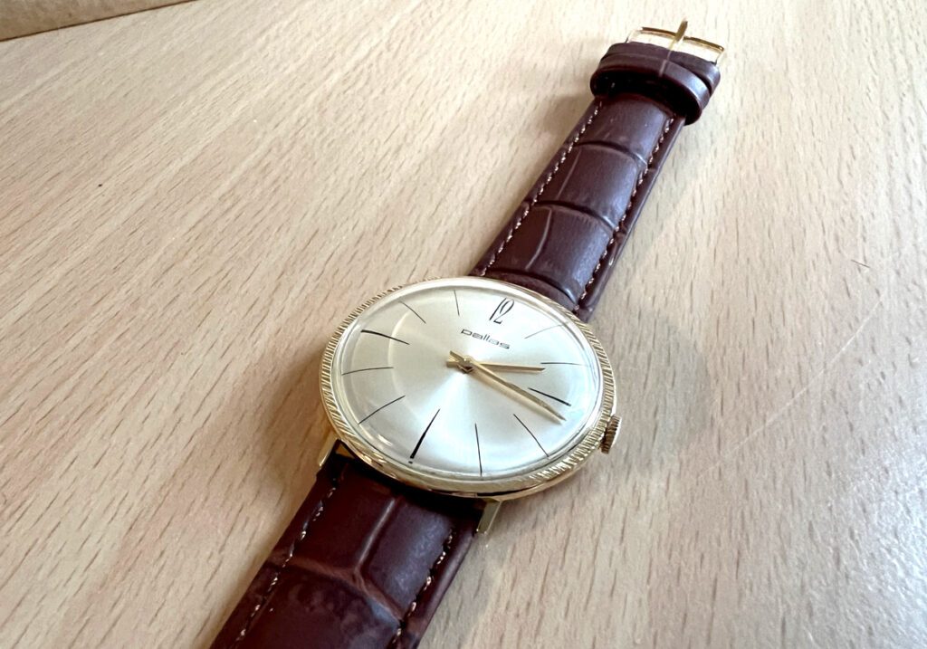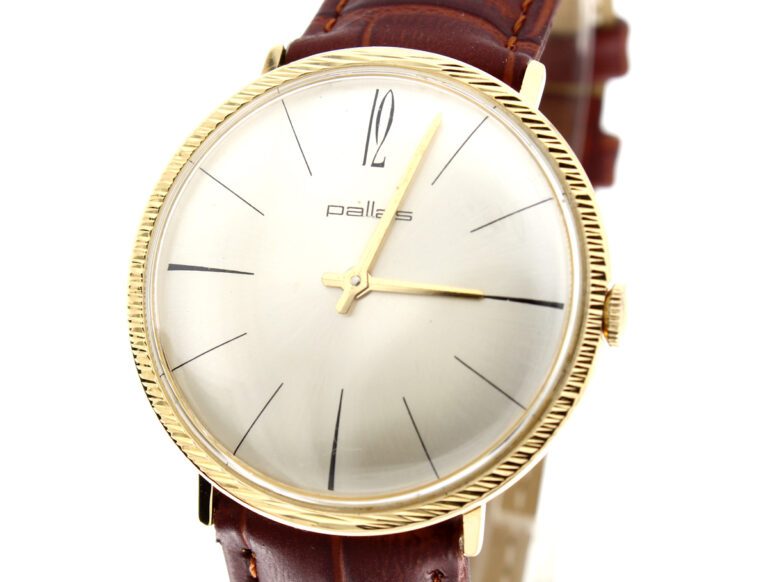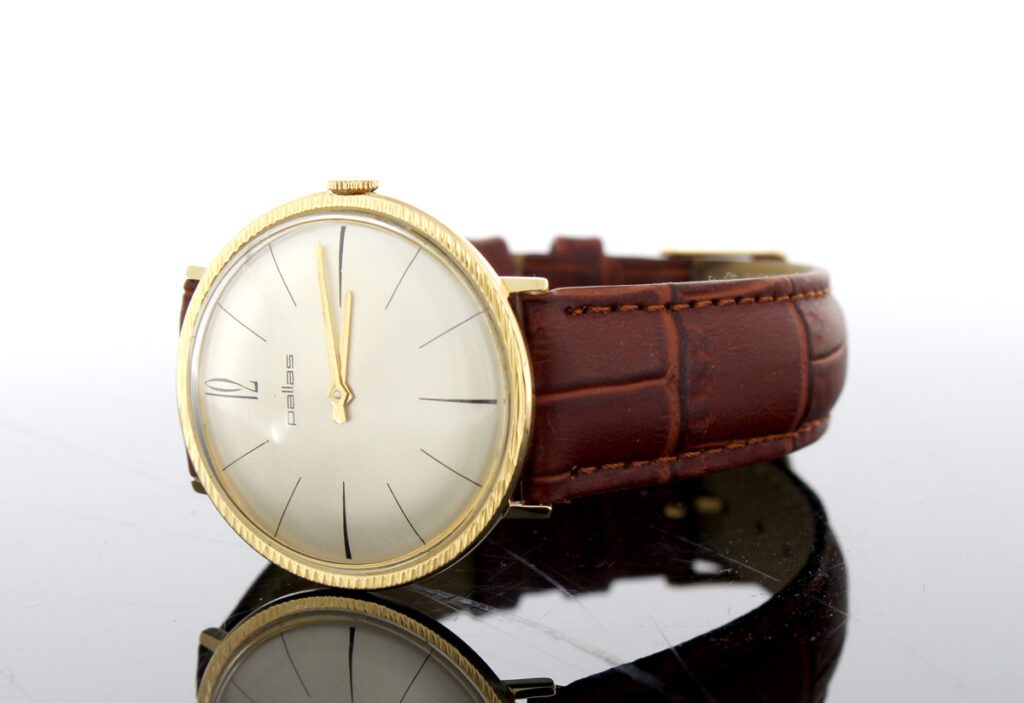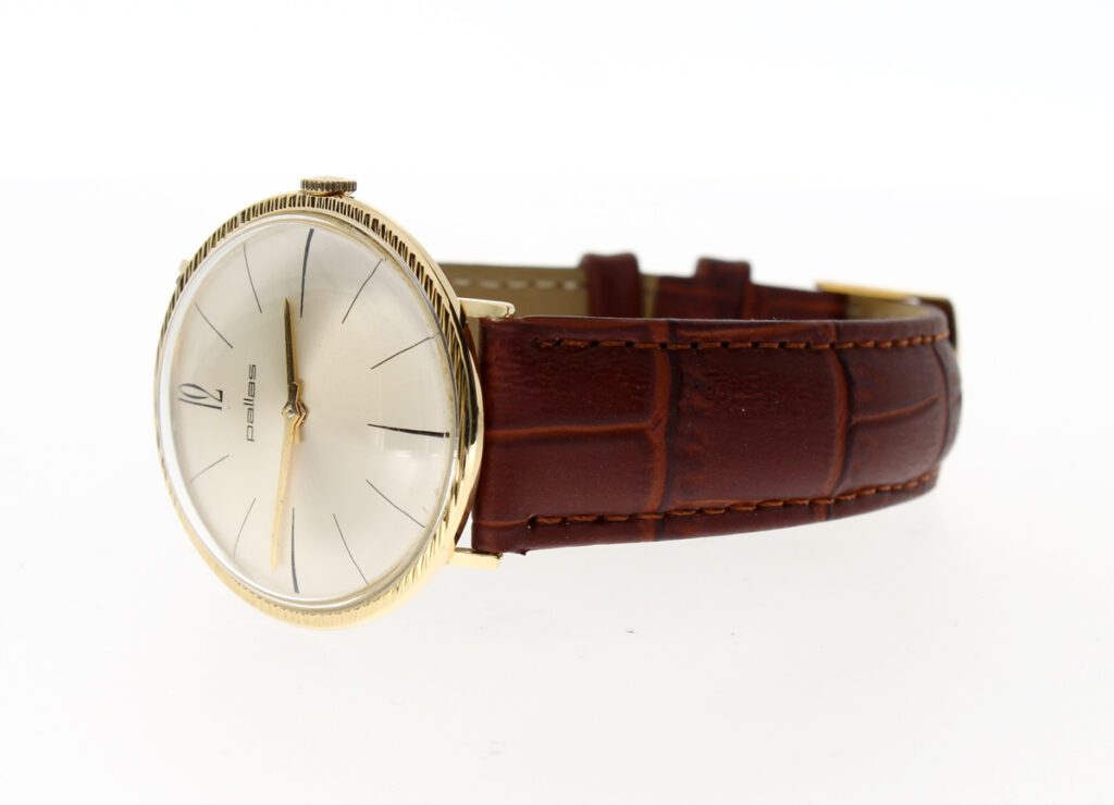 PALLAS Vintage-Herrenuhr mit 18 Karat Gelbgoldgehäuse und Handaufzug.