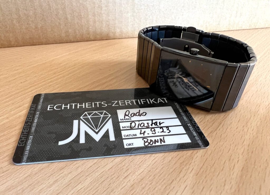 RADO Diastar Armbanduhr in Ceramic mit Stahlboden, Quartzwerk und Faltschließe.