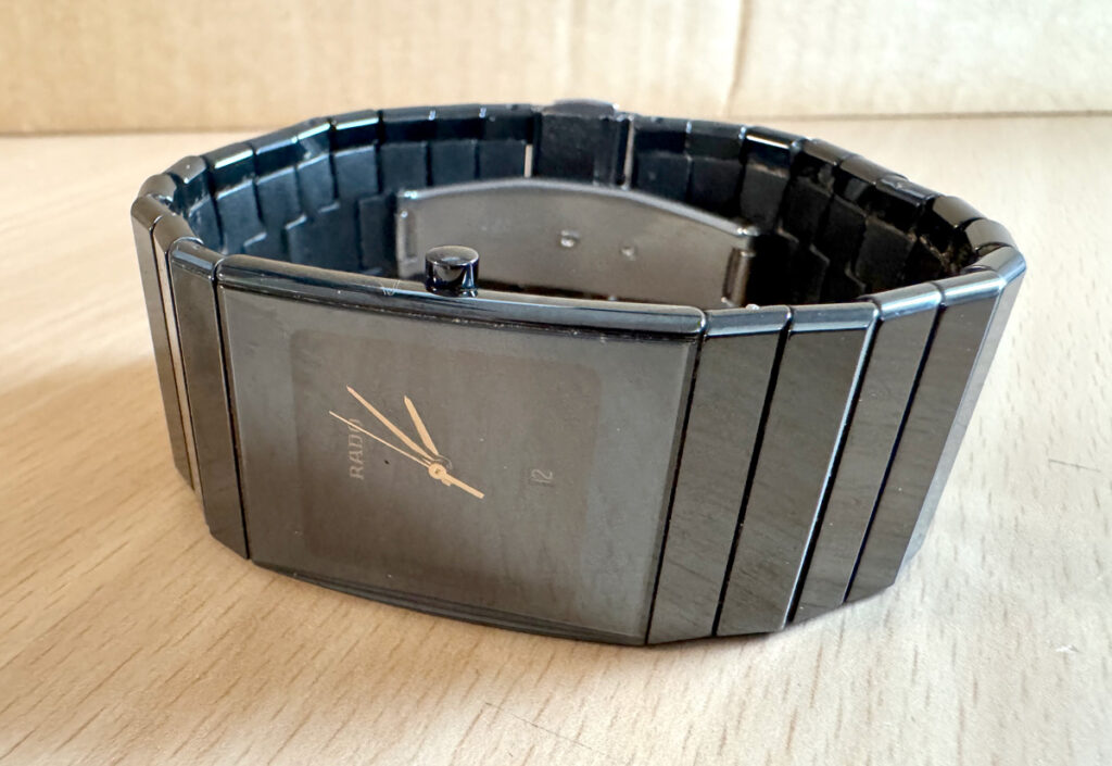 RADO Diastar Armbanduhr mit Keramikgehäuse, Quartzwerk, Keramikband und Faltschließe.