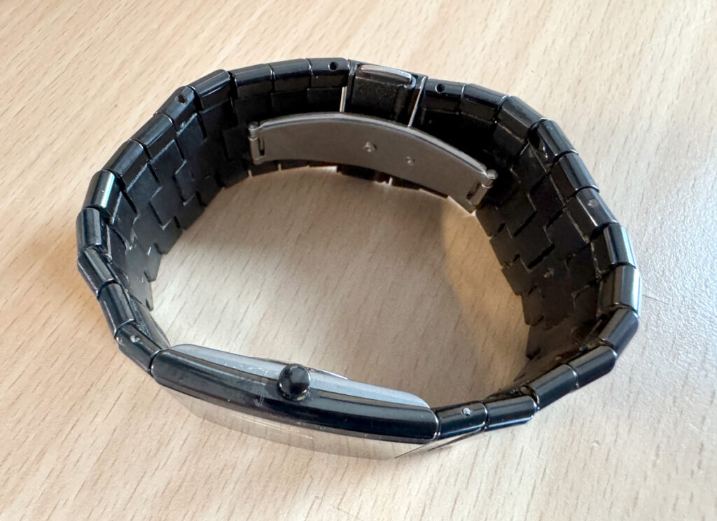 schwarz, analoge Anzeige, keine Ziffern