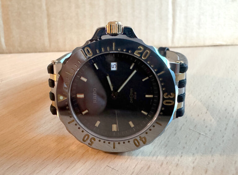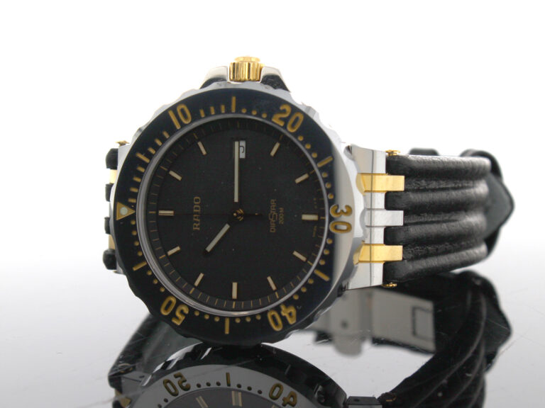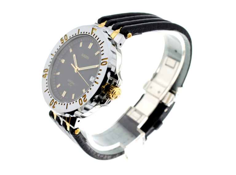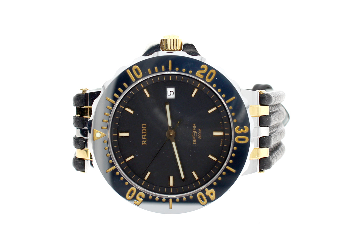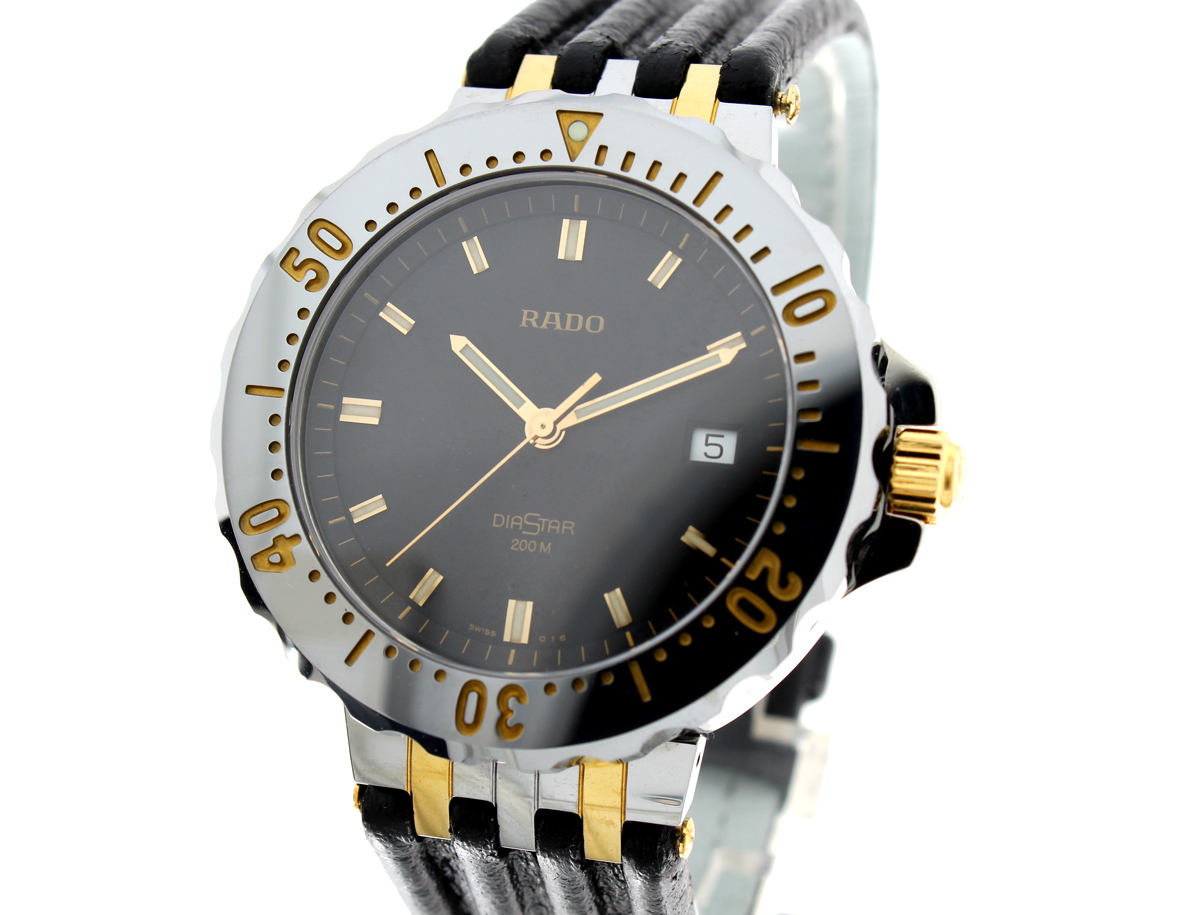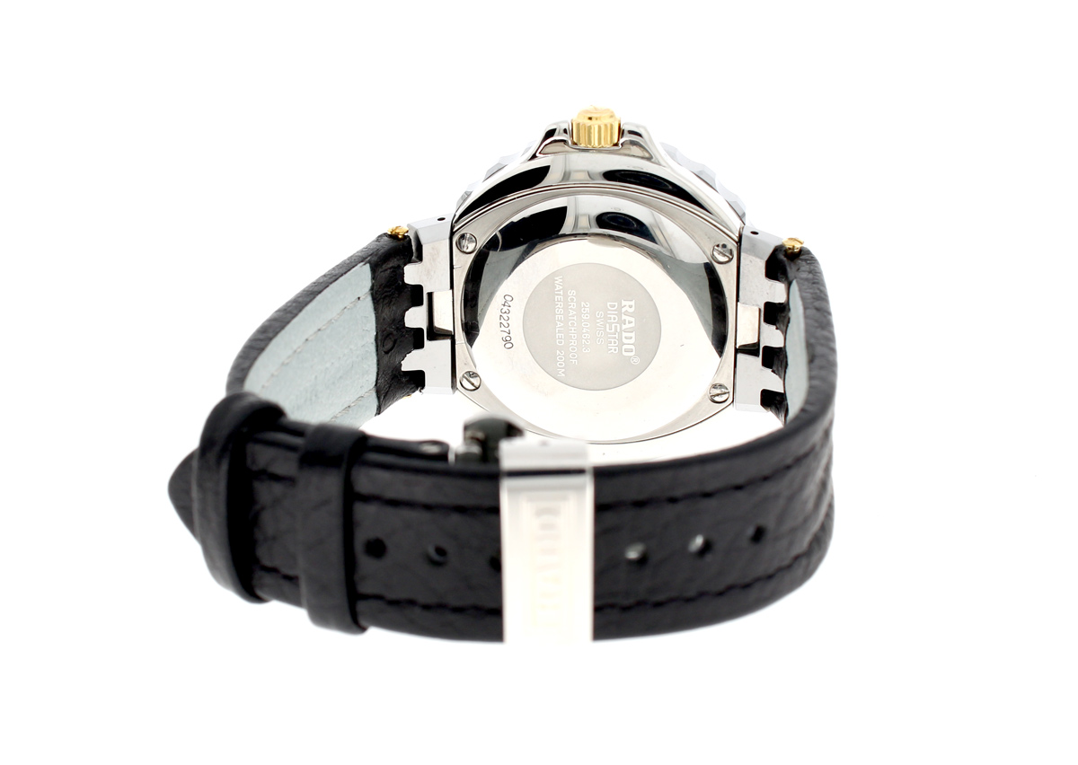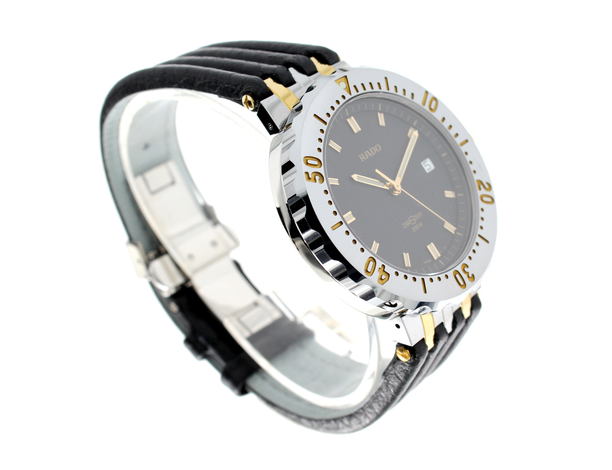 RADO Diastar Herrenuhr mit Stahl-/ Ceramicgehäuse, ETA-Quartzwerk, Drehlünette, Schraubkrone und Original-Lederband.