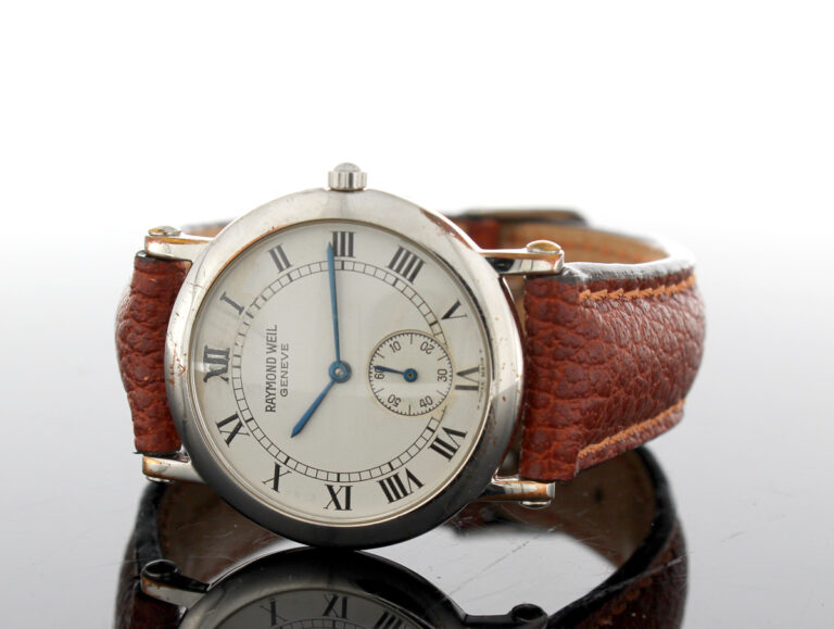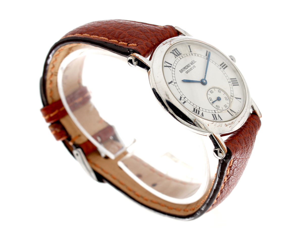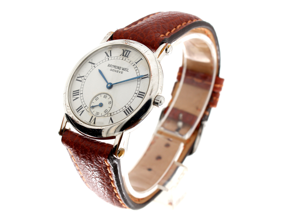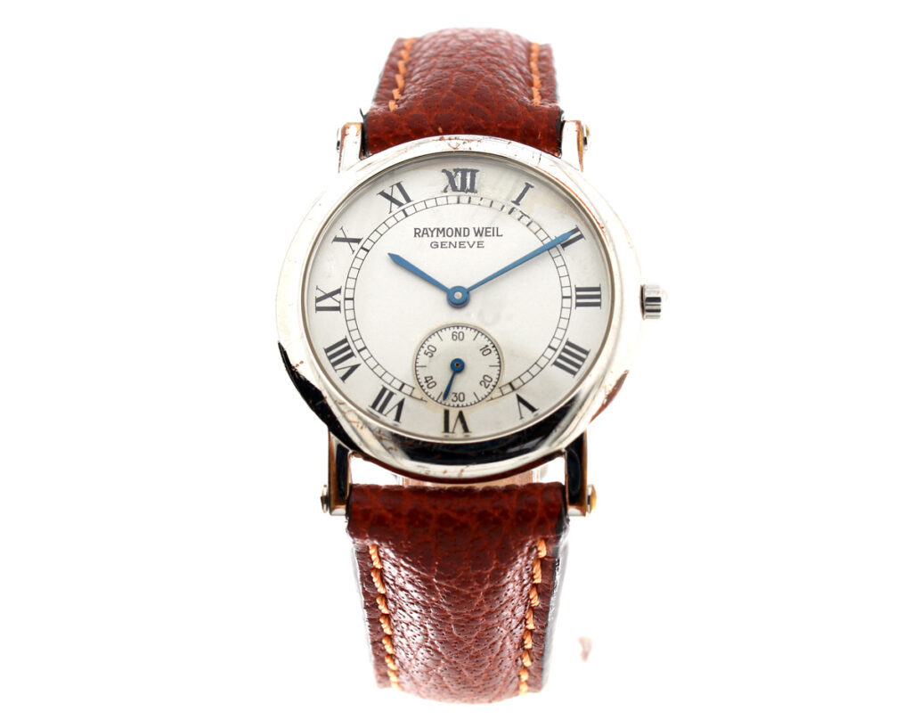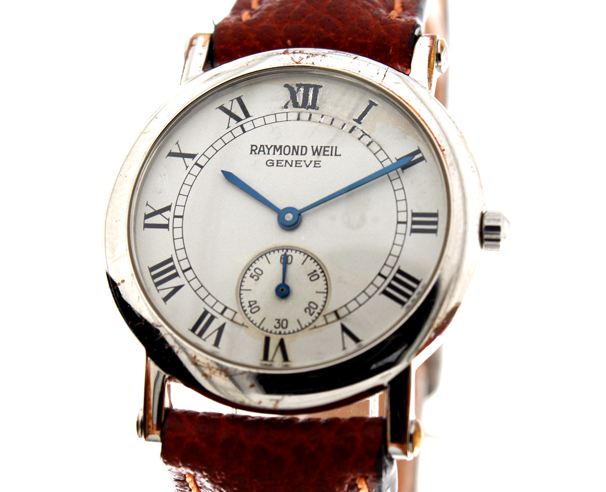 RAYMOND WEIL Geneve Herrenuhr mit Stahlgehäuse, ETA-Quartzwerk, Zentralsekunde. Preisreduzierung wegen Ziffernblattschaden.