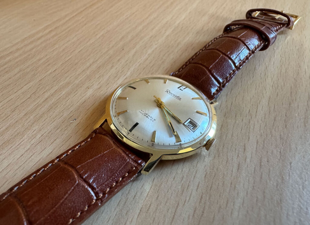 REVISTA Herrenuhr mit 14-Karat-Goldgehäuse, 17 Jewels Incabloc und Automatikwerk.