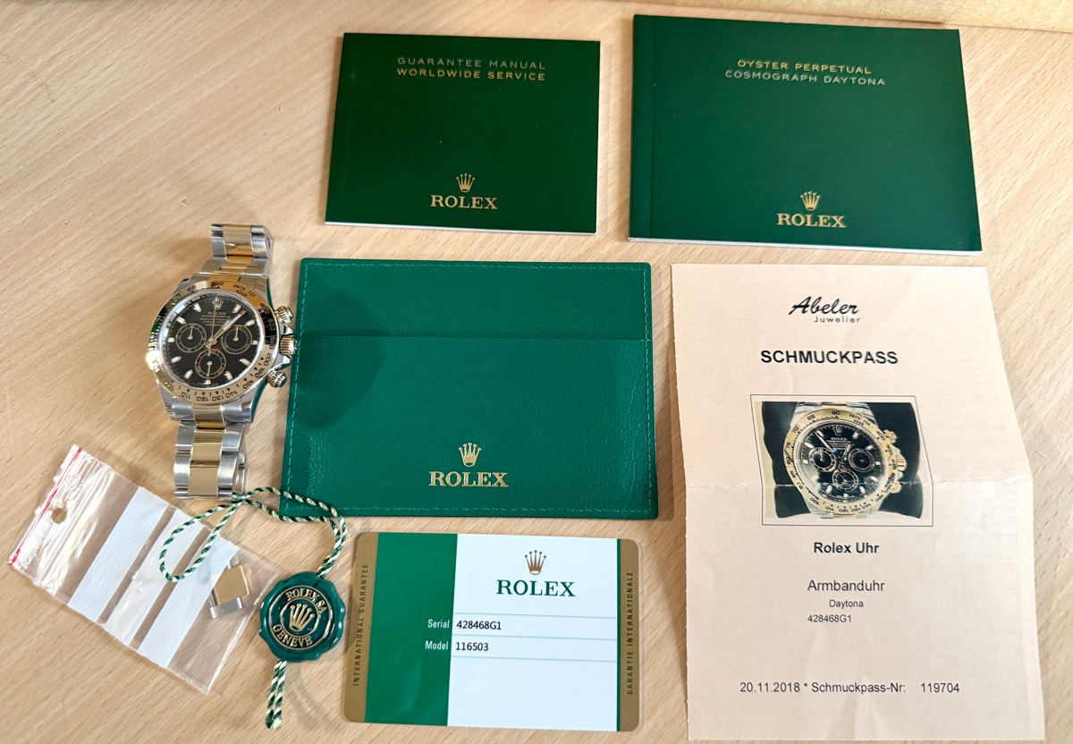 ROLEX Oyster Perpetual Daytona Herrenuhr mit Stahl/ Goldgehäuse (Bicolor), Automatikwerk, Chronometer im Full-Set.