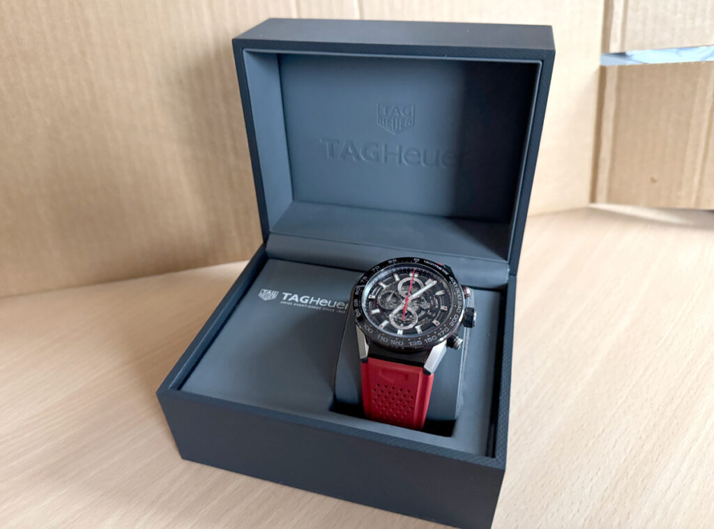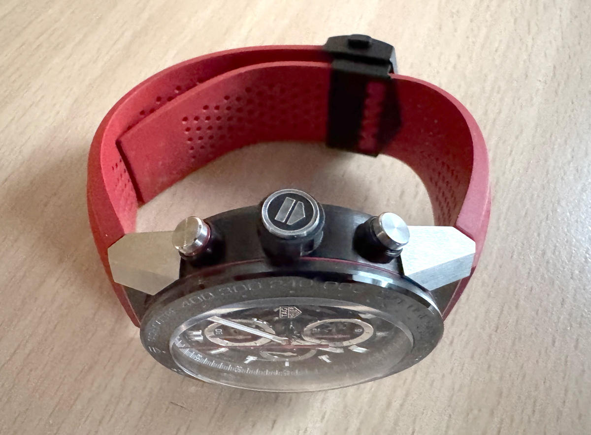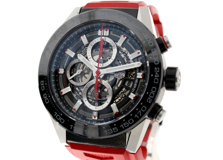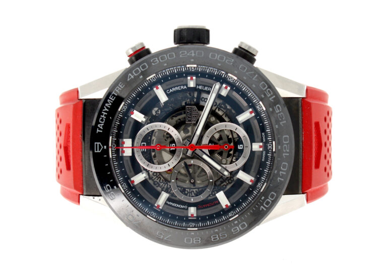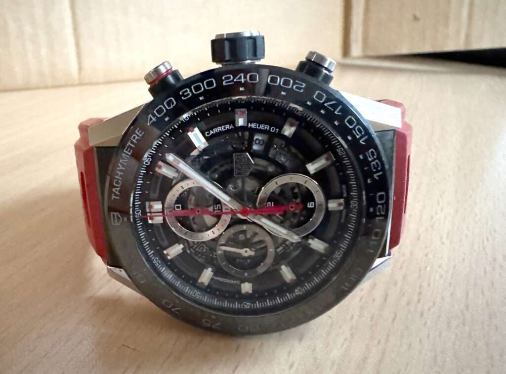 TAG HEUER Carrera 01 Herrenuhr mit Keramikgehäuse, Automatikwerk, Kautschukband und Glasboden.